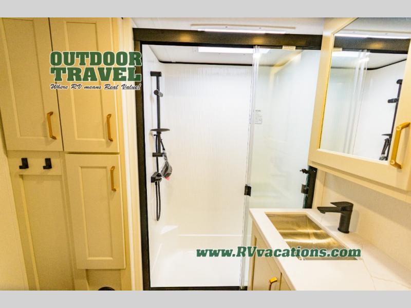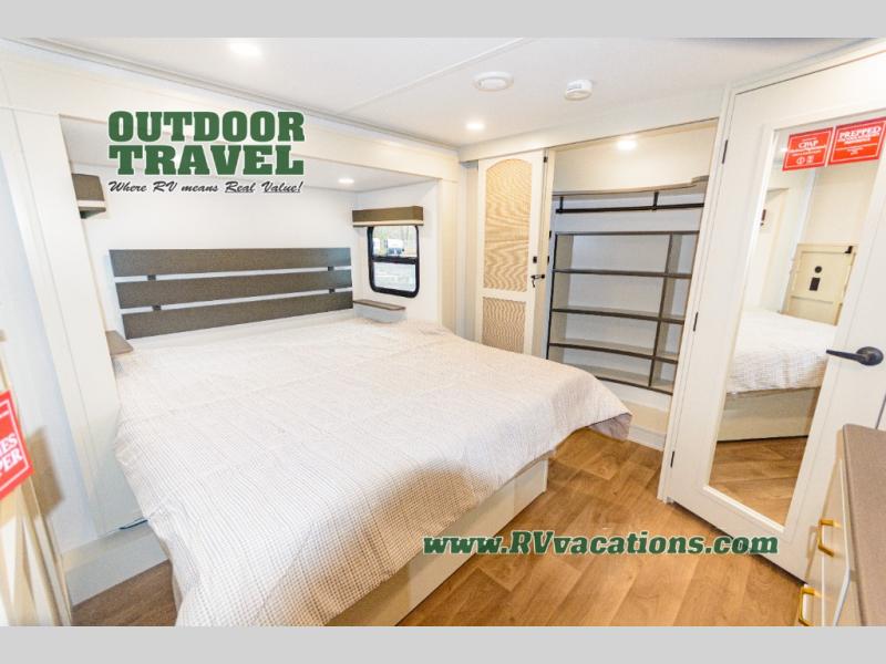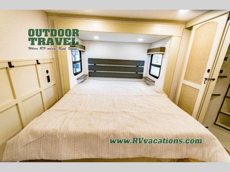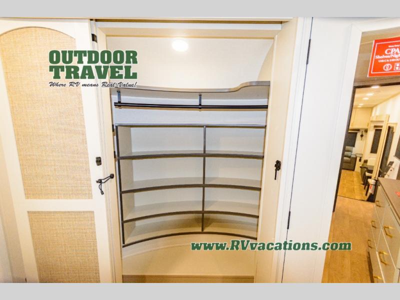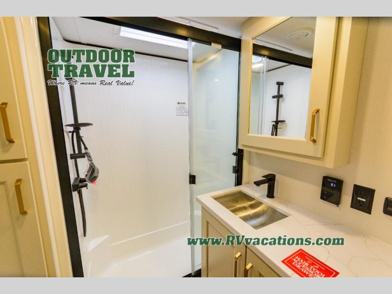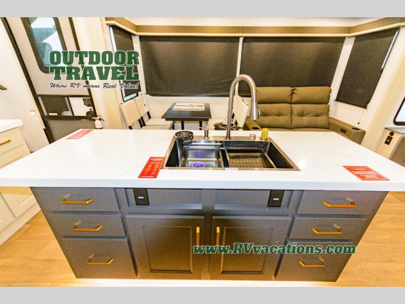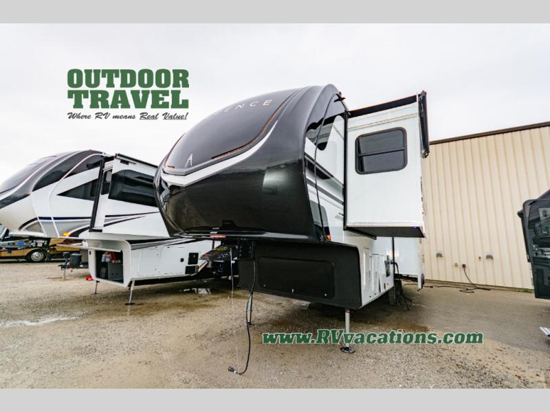 Any Grand Design Influence fifth wheel features five-sided aluminum cage construction with a walk-on roof and a fully enclosed underbelly with heated tanks and storage for all weather camping. For peace of mind, the MORryde CRE3000 Suspension system will provide safe and smooth towing, and the 101" widebody construction offers all the room you need and that is before multiple slides are fully engaged. You will appreciate the Keyed-Alike locks, slam-latch baggage doors with magnetic door catches, exterior security light, and SolidStep entry steps. On the inside, Congoleum flooring, premium roller shades for privacy, a hallway handrail for safety, and nightstands with USB ports to keep all of your electronics fully charged. You will also love the On Demand tankless water heater when showering, plus the added heat and ambiance from an electric fireplace, and so much more!