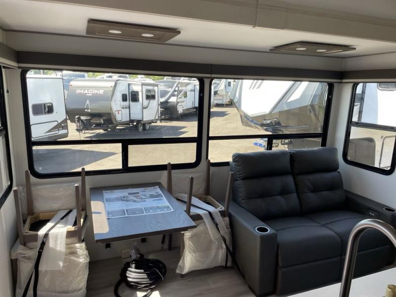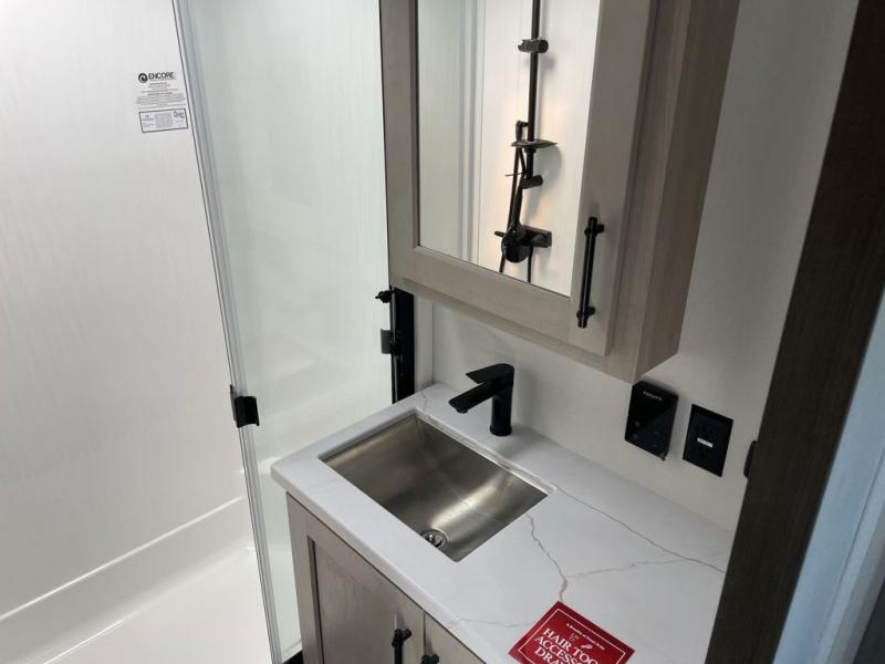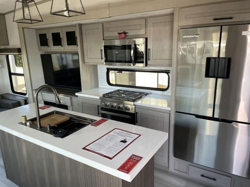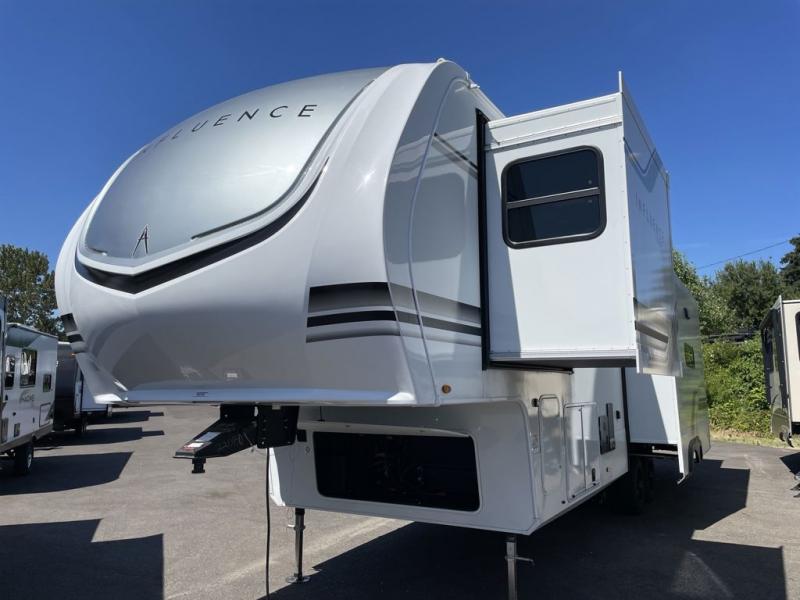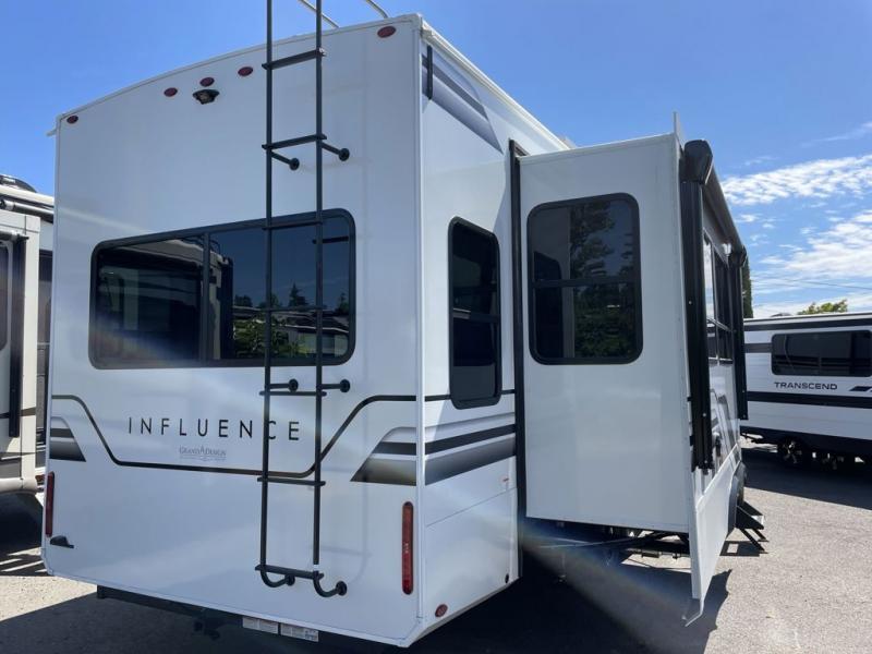 Any Grand Design Influence fifth wheel features five-sided aluminum cage construction with a walk-on roof and a fully enclosed underbelly with heated tanks and storage for all weather camping. For peace of mind, the MORryde CRE3000 Suspension system will provide safe and smooth towing, and the 101" widebody construction offers all the room you need and that is before multiple slides are fully engaged. You will appreciate the Keyed-Alike locks, slam-latch baggage doors with magnetic door catches, exterior security light, and SolidStep entry steps. On the inside, Congoleum flooring, premium roller shades for privacy, a hallway handrail for safety, and nightstands with USB ports to keep all of your electronics fully charged. You will also love the On Demand tankless water heater when showering, plus the added heat and ambiance from an electric fireplace, and so much more!