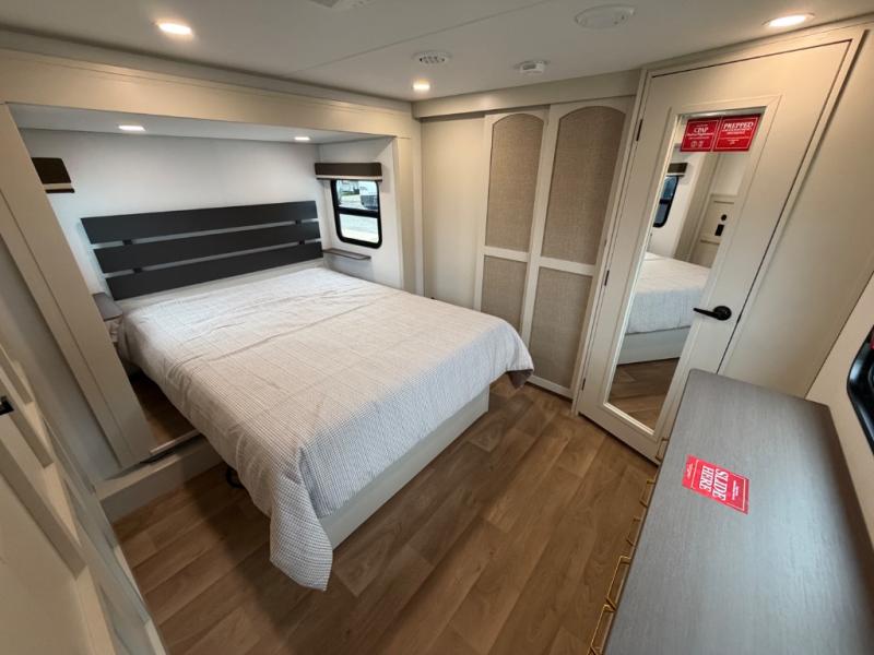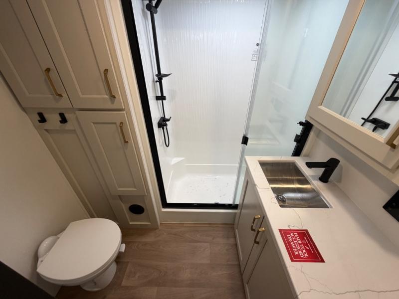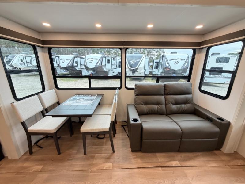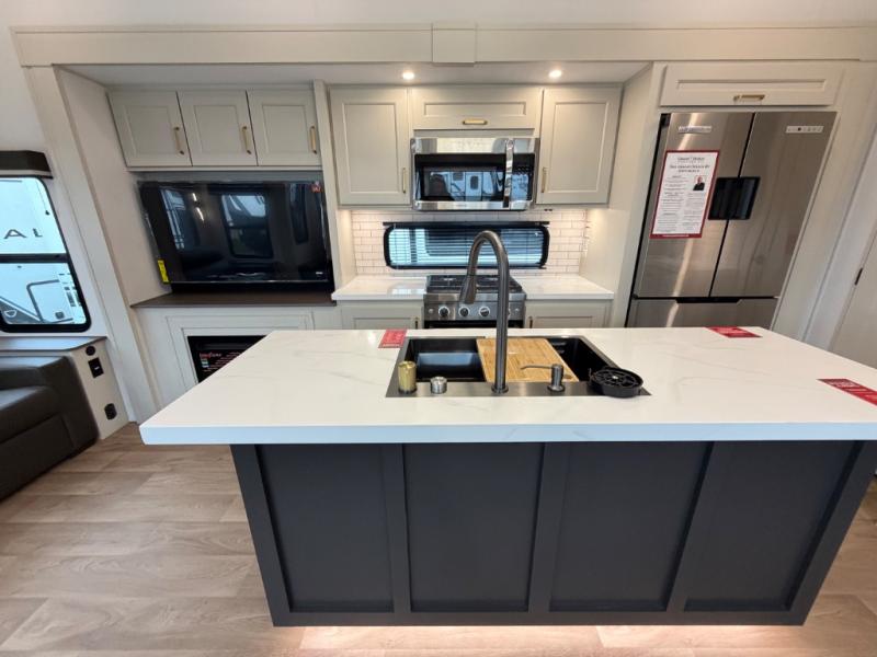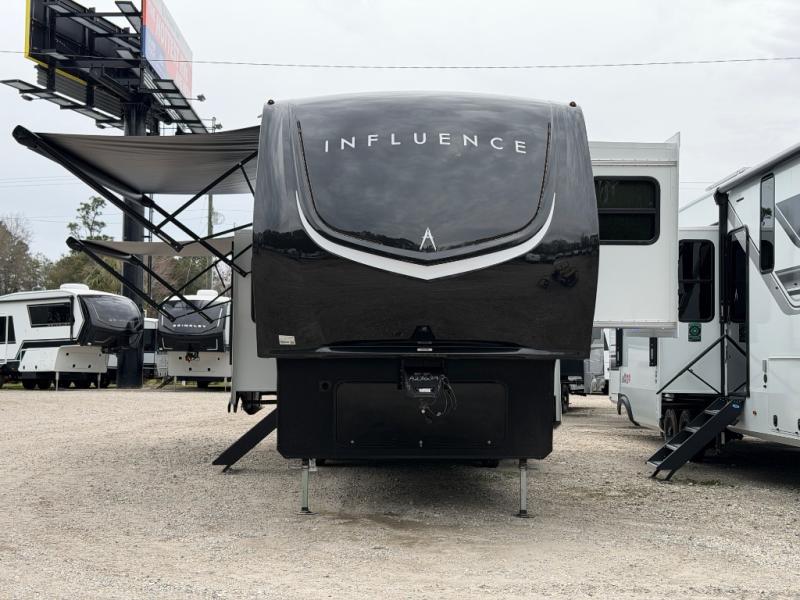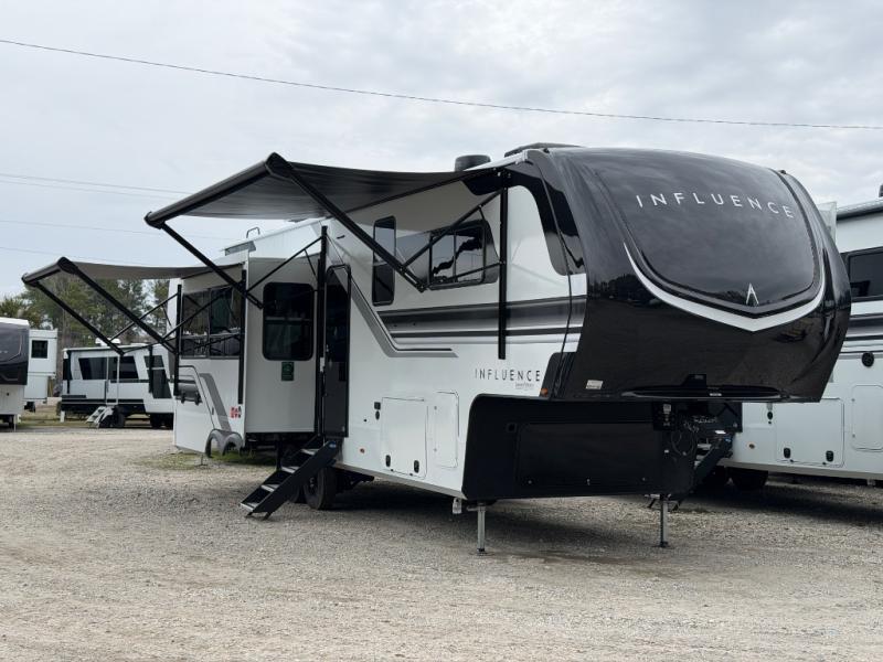 Any Grand Design Influence fifth wheel features five-sided aluminum cage construction with a walk-on roof and a fully enclosed underbelly with heated tanks and storage for all weather camping. For peace of mind, the MORryde CRE3000 Suspension system will provide safe and smooth towing, and the 101" widebody construction offers all the room you need and that is before multiple slides are fully engaged. You will appreciate the Keyed-Alike locks, slam-latch baggage doors with magnetic door catches, exterior security light, and SolidStep entry steps. On the inside, Congoleum flooring, premium roller shades for privacy, a hallway handrail for safety, and nightstands with USB ports to keep all of your electronics fully charged. You will also love the On Demand tankless water heater when showering, plus the added heat and ambiance from an electric fireplace, and so much more!