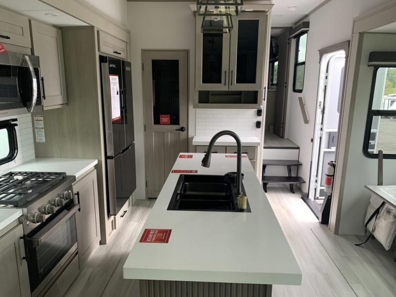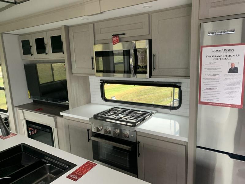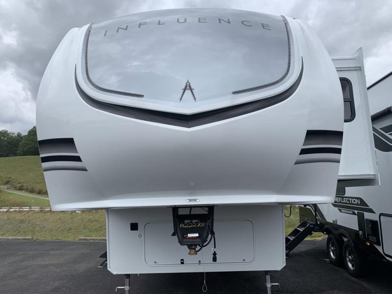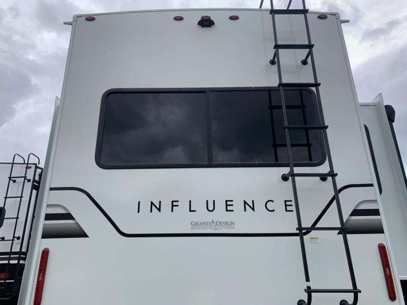 Any Grand Design Influence fifth wheel features five-sided aluminum cage construction with a walk-on roof and a fully enclosed underbelly with heated tanks and storage for all weather camping. For peace of mind, the MORryde CRE3000 Suspension system will provide safe and smooth towing, and the 101" widebody construction offers all the room you need and that is before multiple slides are fully engaged. You will appreciate the Keyed-Alike locks, slam-latch baggage doors with magnetic door catches, exterior security light, and SolidStep entry steps. On the inside, Congoleum flooring, premium roller shades for privacy, a hallway handrail for safety, and nightstands with USB ports to keep all of your electronics fully charged. You will also love the On Demand tankless water heater when showering, plus the added heat and ambiance from an electric fireplace, and so much more!