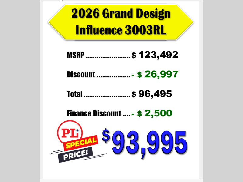New 2026 Grand Design Influence 3003RL Fifth Wheel