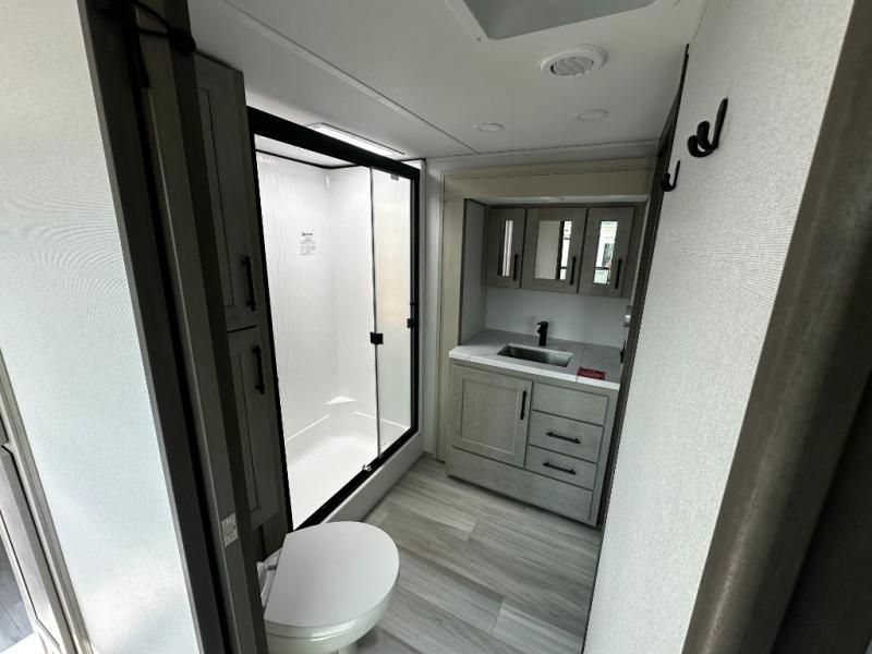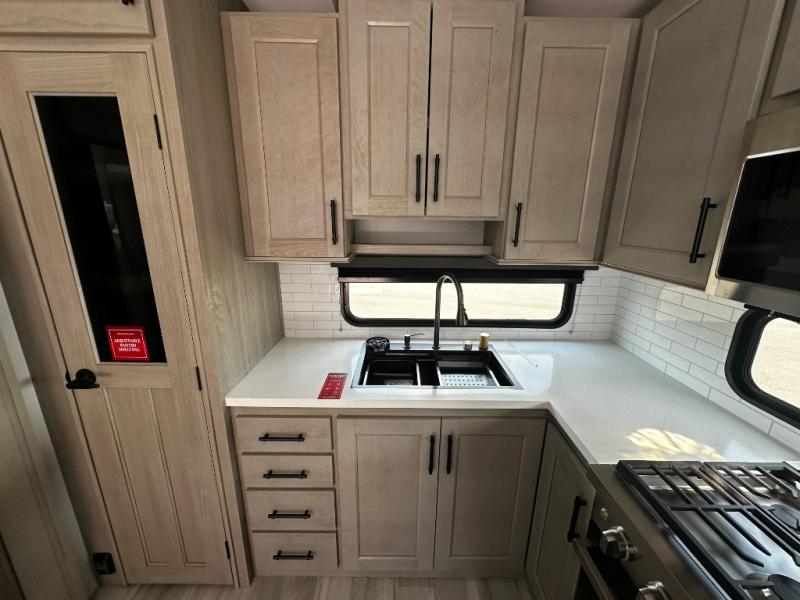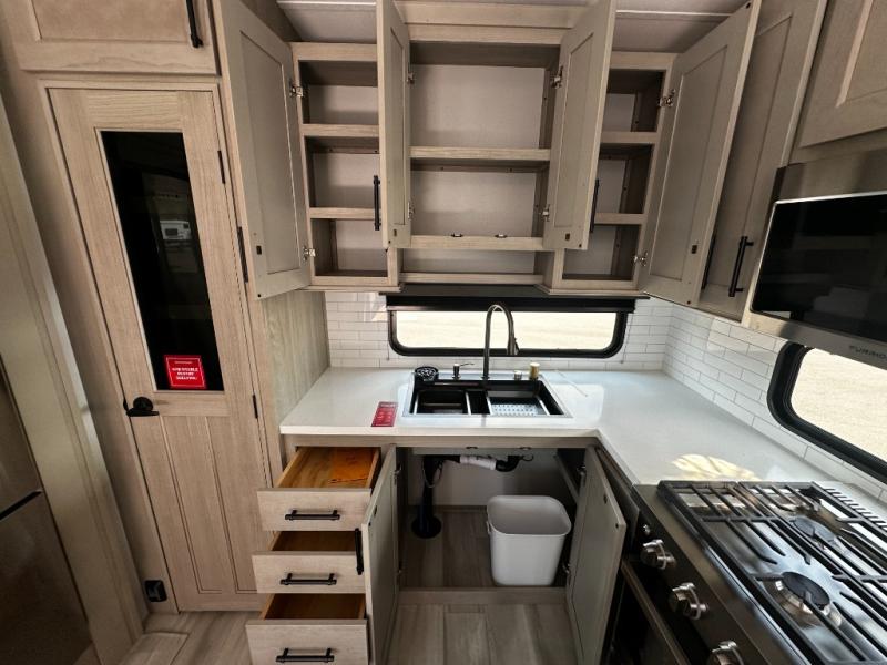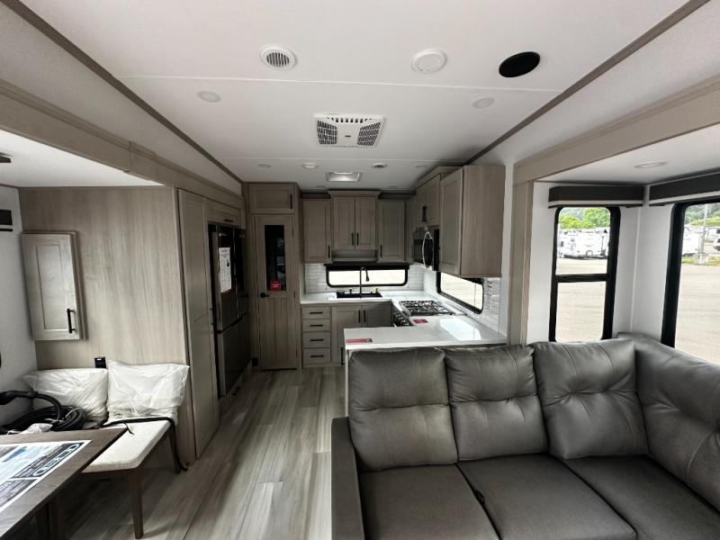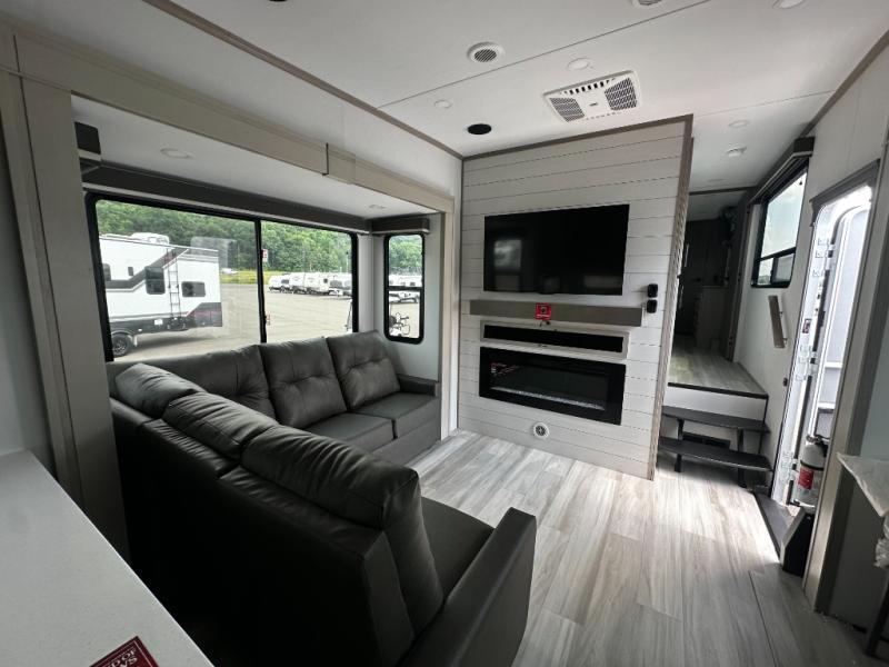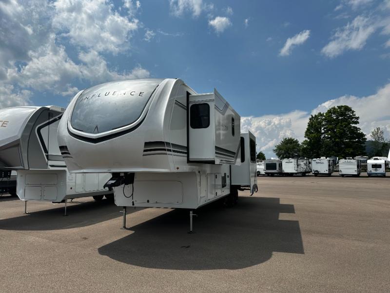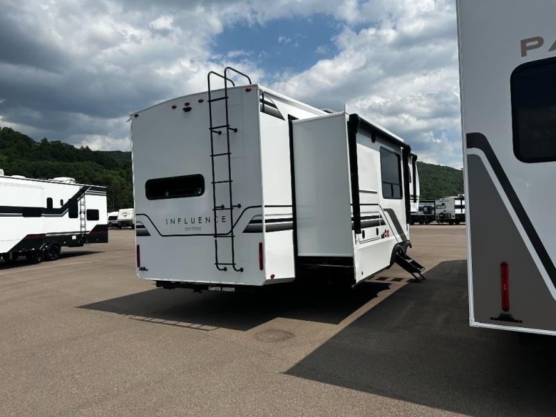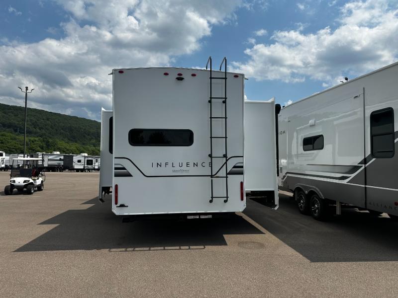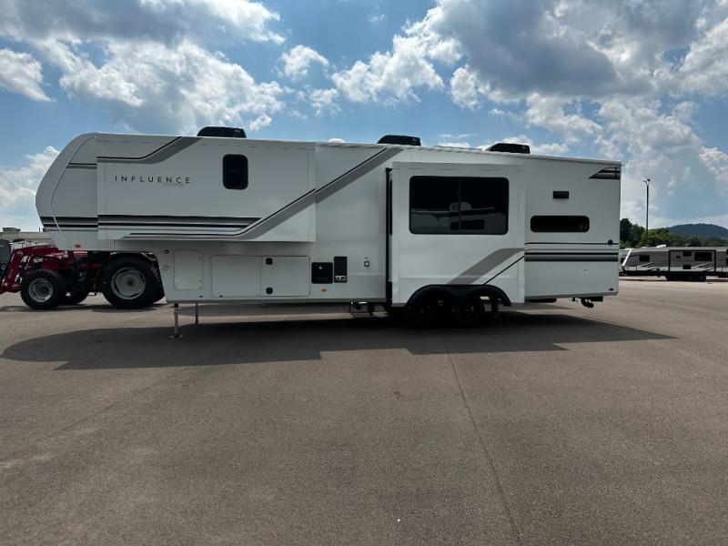 Any Grand Design Influence fifth wheel features five-sided aluminum cage construction with a walk-on roof and a fully enclosed underbelly with heated tanks and storage for all weather camping. For peace of mind, the MORryde CRE3000 Suspension system will provide safe and smooth towing, and the 101" widebody construction offers all the room you need and that is before multiple slides are fully engaged. You will appreciate the Keyed-Alike locks, slam-latch baggage doors with magnetic door catches, exterior security light, and SolidStep entry steps. On the inside, Congoleum flooring, premium roller shades for privacy, a hallway handrail for safety, and nightstands with USB ports to keep all of your electronics fully charged. You will also love the On Demand tankless water heater when showering, plus the added heat and ambiance from an electric fireplace, and so much more!