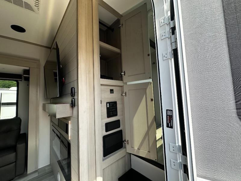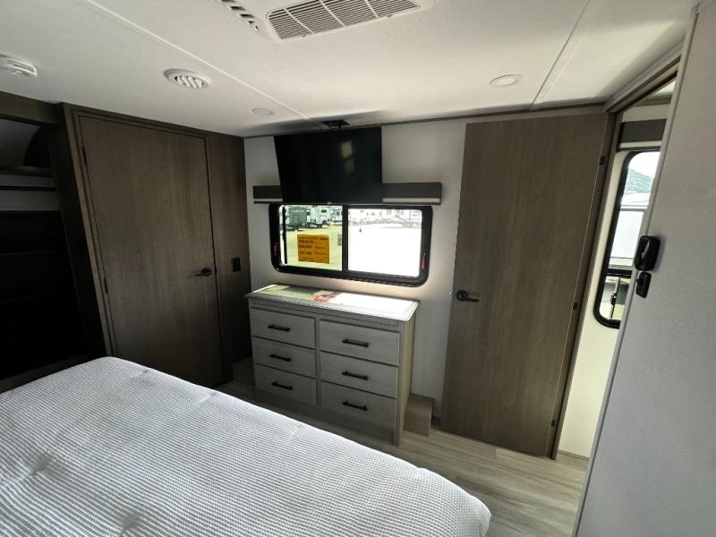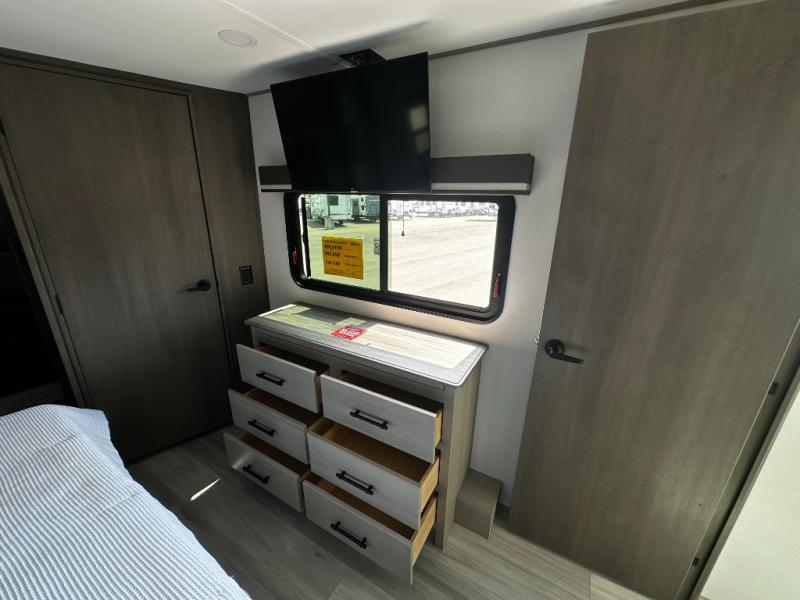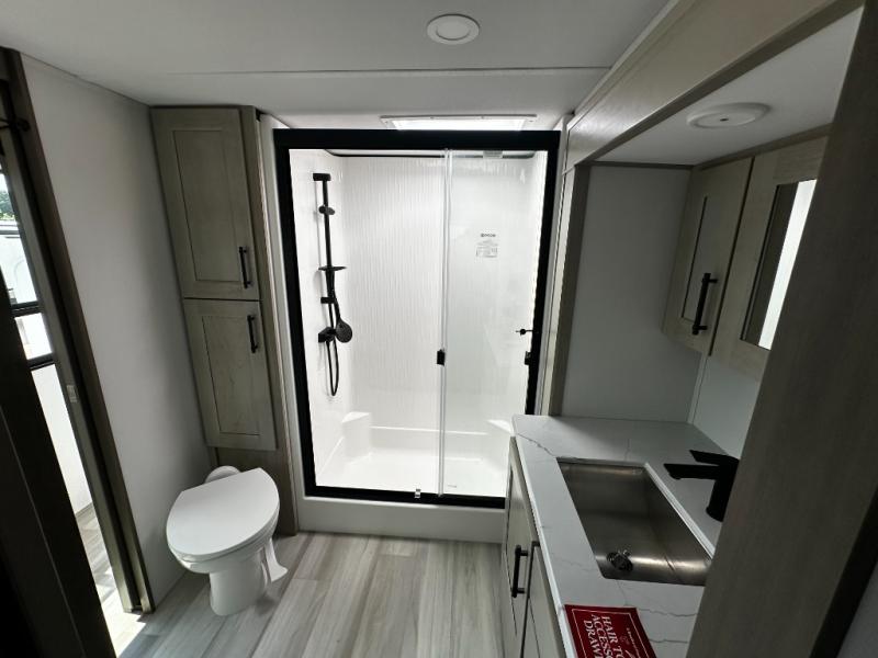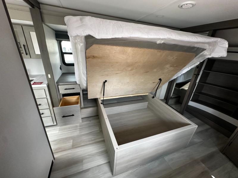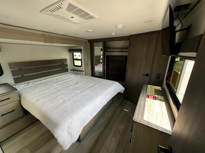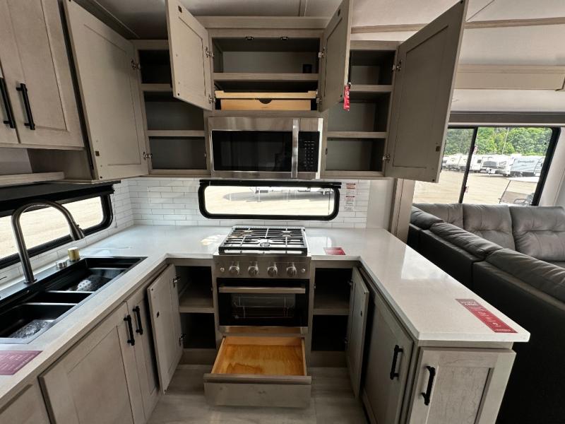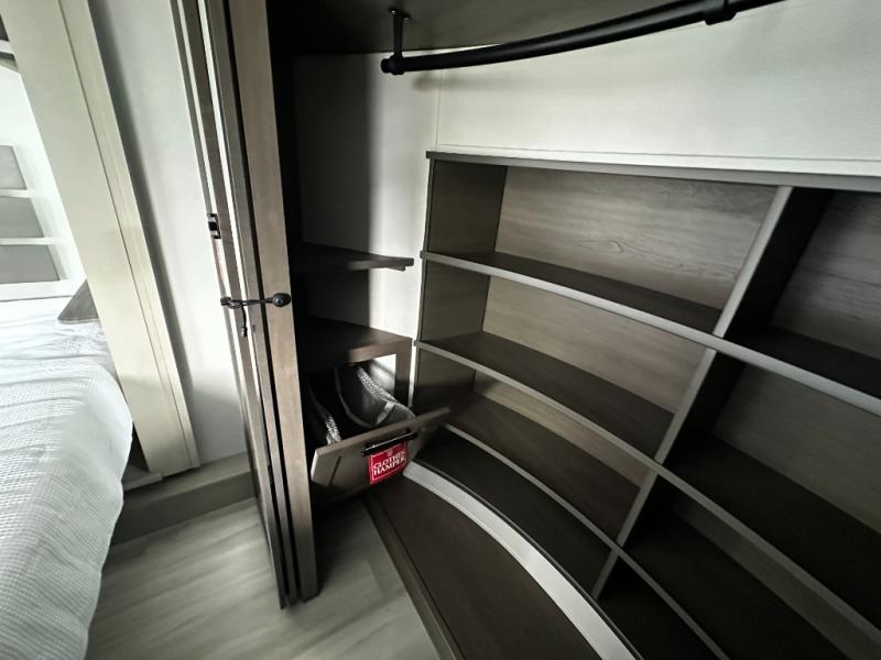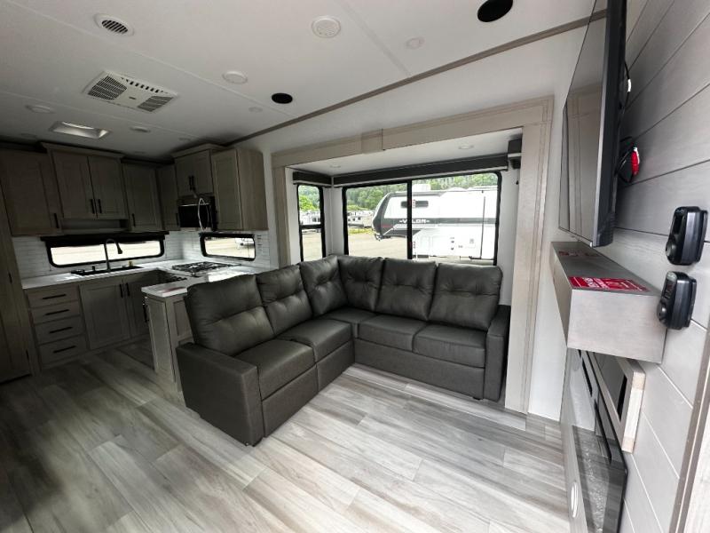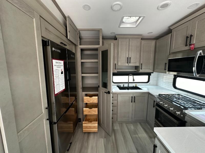 Any Grand Design Influence fifth wheel features five-sided aluminum cage construction with a walk-on roof and a fully enclosed underbelly with heated tanks and storage for all weather camping. For peace of mind, the MORryde CRE3000 Suspension system will provide safe and smooth towing, and the 101" widebody construction offers all the room you need and that is before multiple slides are fully engaged. You will appreciate the Keyed-Alike locks, slam-latch baggage doors with magnetic door catches, exterior security light, and SolidStep entry steps. On the inside, Congoleum flooring, premium roller shades for privacy, a hallway handrail for safety, and nightstands with USB ports to keep all of your electronics fully charged. You will also love the On Demand tankless water heater when showering, plus the added heat and ambiance from an electric fireplace, and so much more!