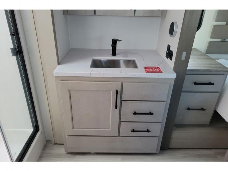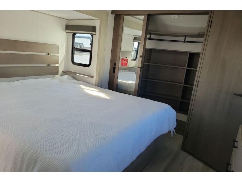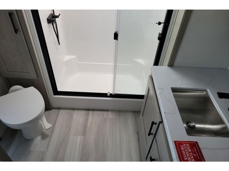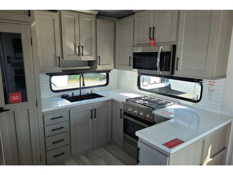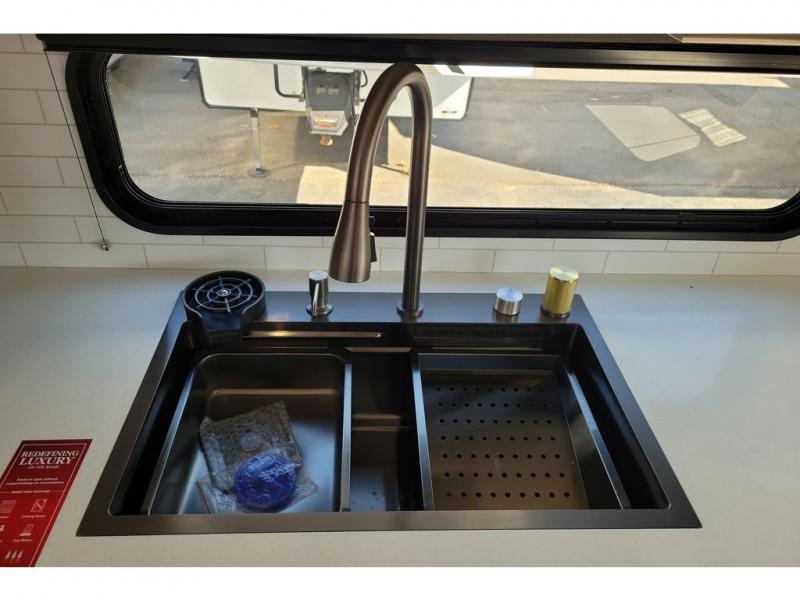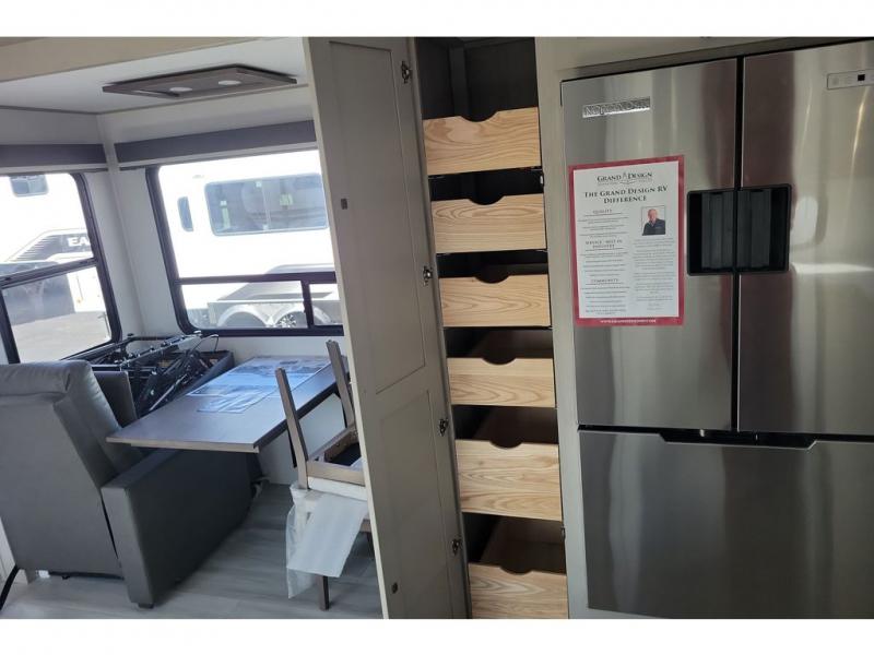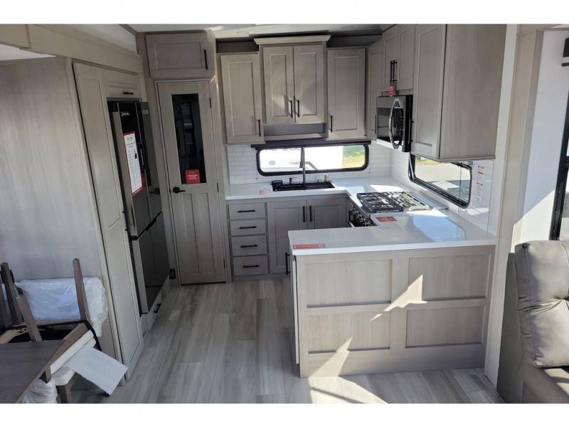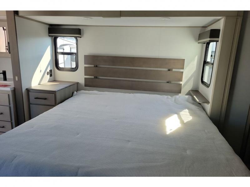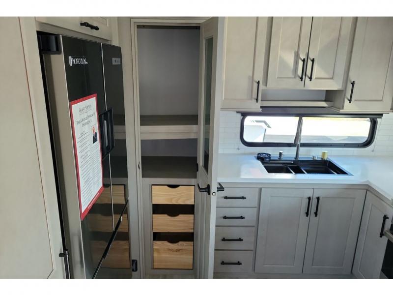 Any Grand Design Influence fifth wheel features five-sided aluminum cage construction with a walk-on roof and a fully enclosed underbelly with heated tanks and storage for all weather camping. For peace of mind, the MORryde CRE3000 Suspension system will provide safe and smooth towing, and the 101" widebody construction offers all the room you need and that is before multiple slides are fully engaged. You will appreciate the Keyed-Alike locks, slam-latch baggage doors with magnetic door catches, exterior security light, and SolidStep entry steps. On the inside, Congoleum flooring, premium roller shades for privacy, a hallway handrail for safety, and nightstands with USB ports to keep all of your electronics fully charged. You will also love the On Demand tankless water heater when showering, plus the added heat and ambiance from an electric fireplace, and so much more!