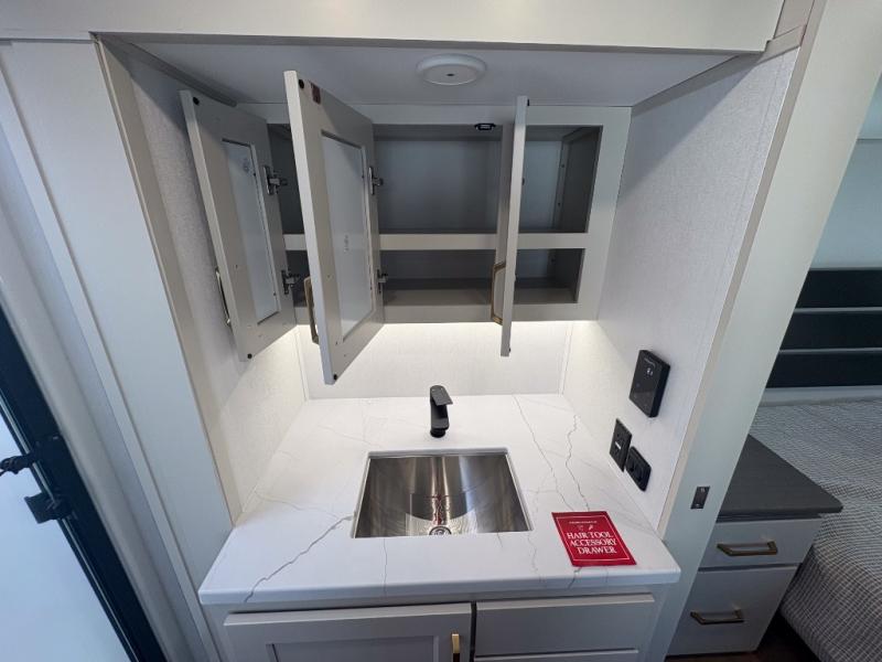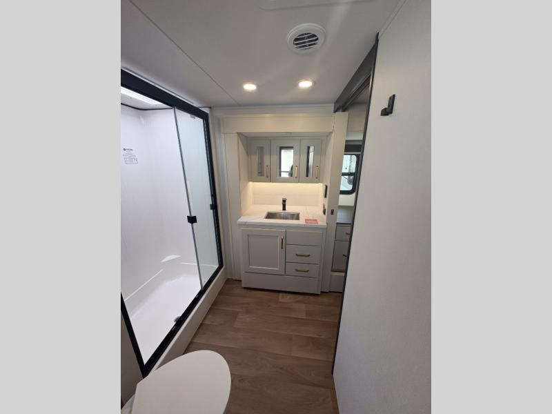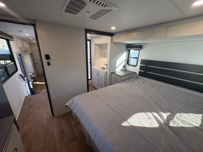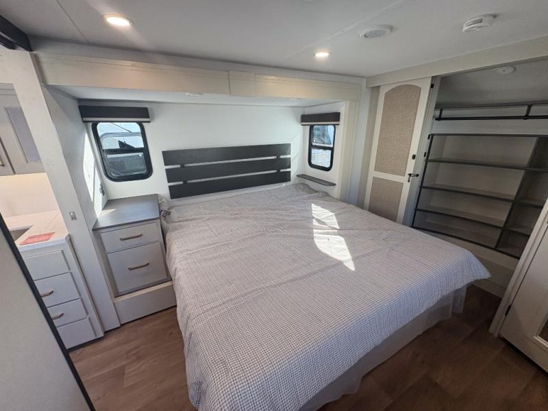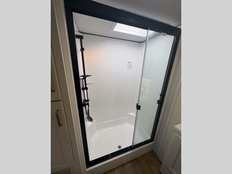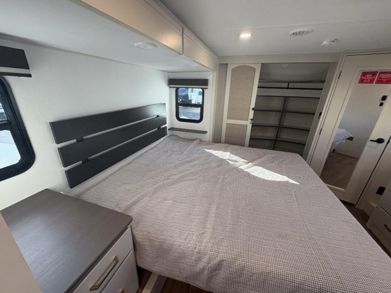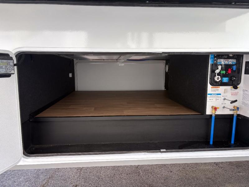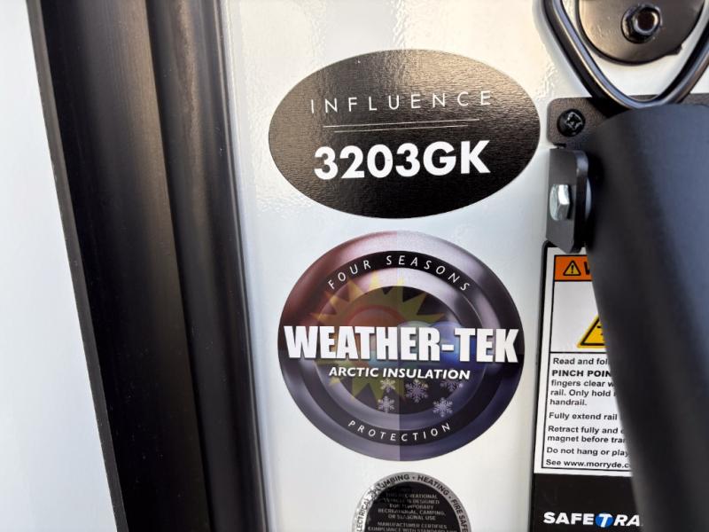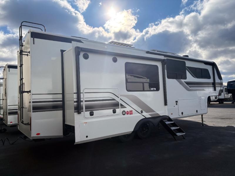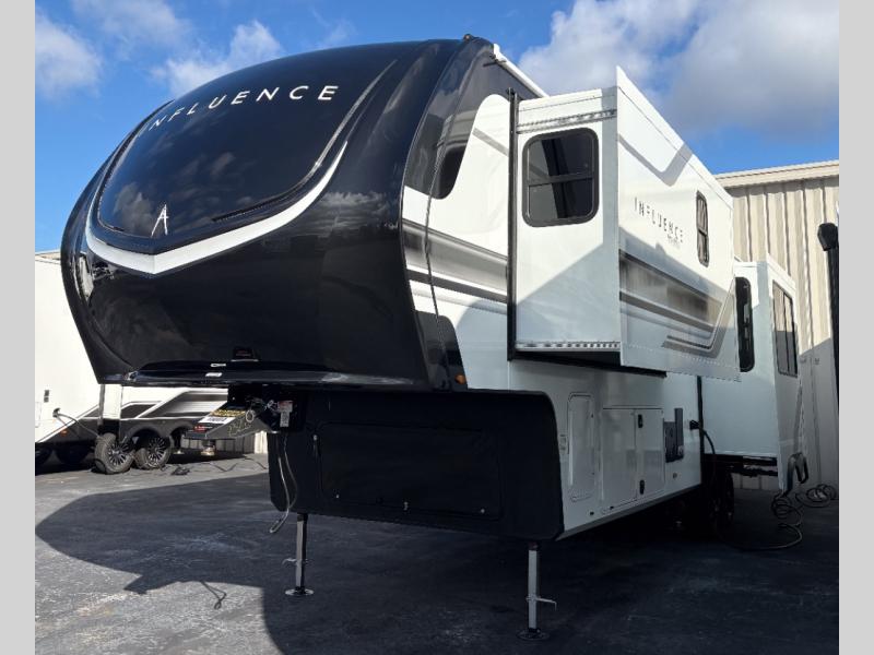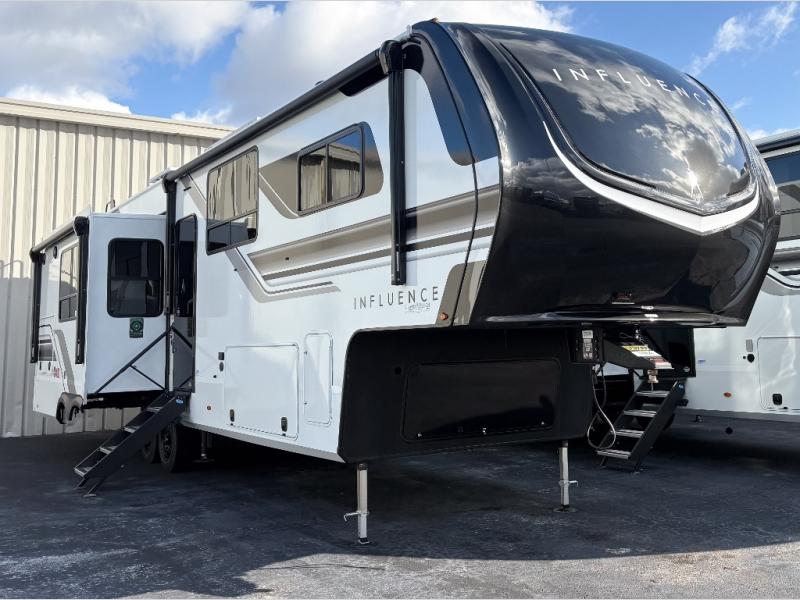 Any Grand Design Influence fifth wheel features five-sided aluminum cage construction with a walk-on roof and a fully enclosed underbelly with heated tanks and storage for all weather camping. For peace of mind, the MORryde CRE3000 Suspension system will provide safe and smooth towing, and the 101" widebody construction offers all the room you need and that is before multiple slides are fully engaged. You will appreciate the Keyed-Alike locks, slam-latch baggage doors with magnetic door catches, exterior security light, and SolidStep entry steps. On the inside, Congoleum flooring, premium roller shades for privacy, a hallway handrail for safety, and nightstands with USB ports to keep all of your electronics fully charged. You will also love the On Demand tankless water heater when showering, plus the added heat and ambiance from an electric fireplace, and so much more!