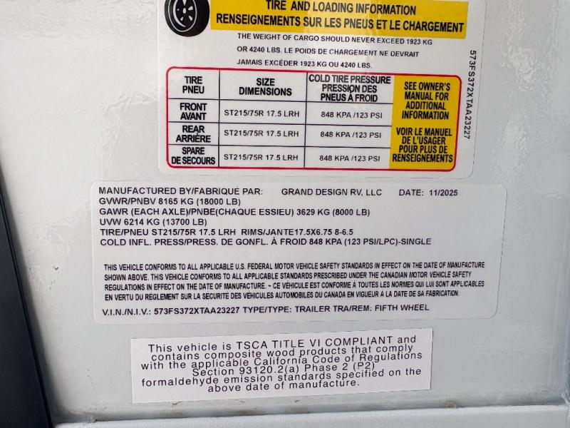 New 2026 Grand Design Influence 3203GK Fifth Wheel