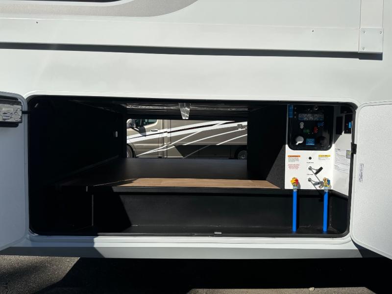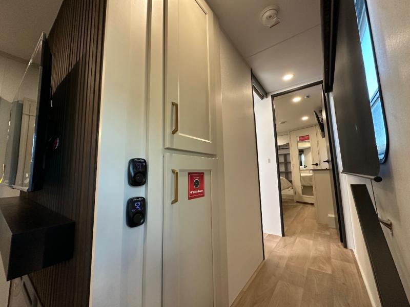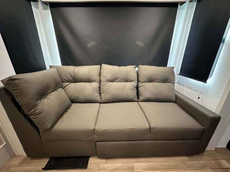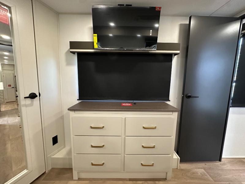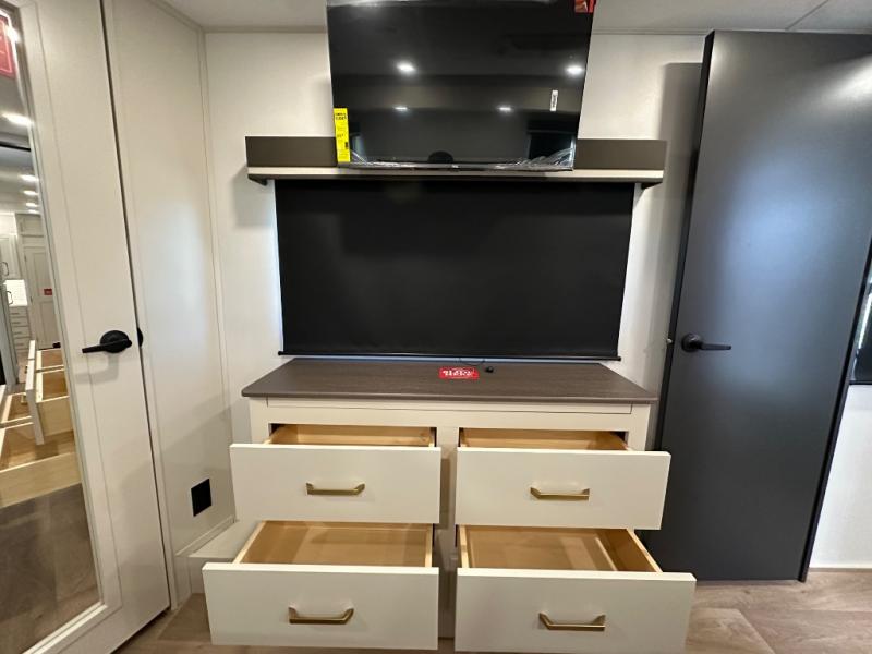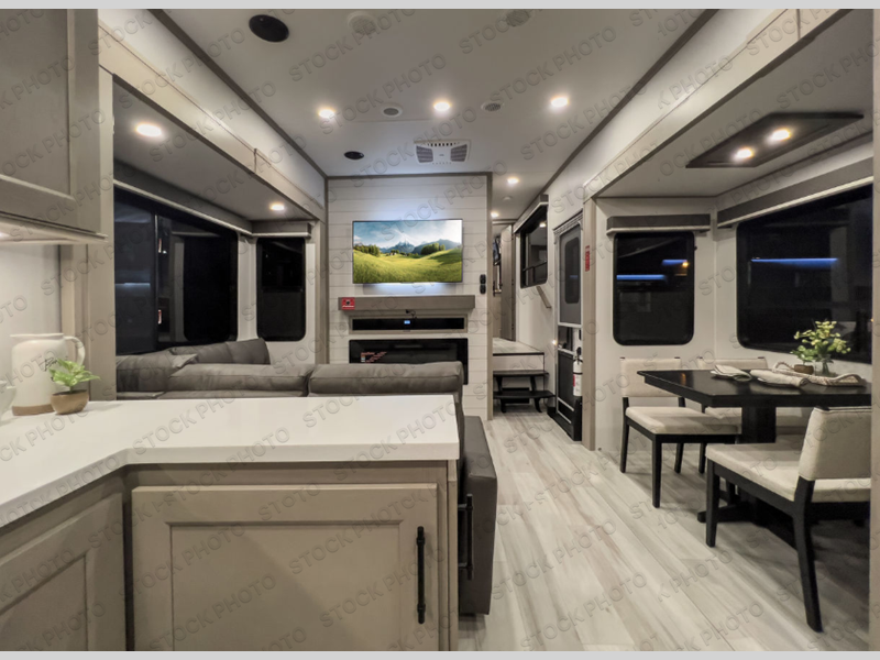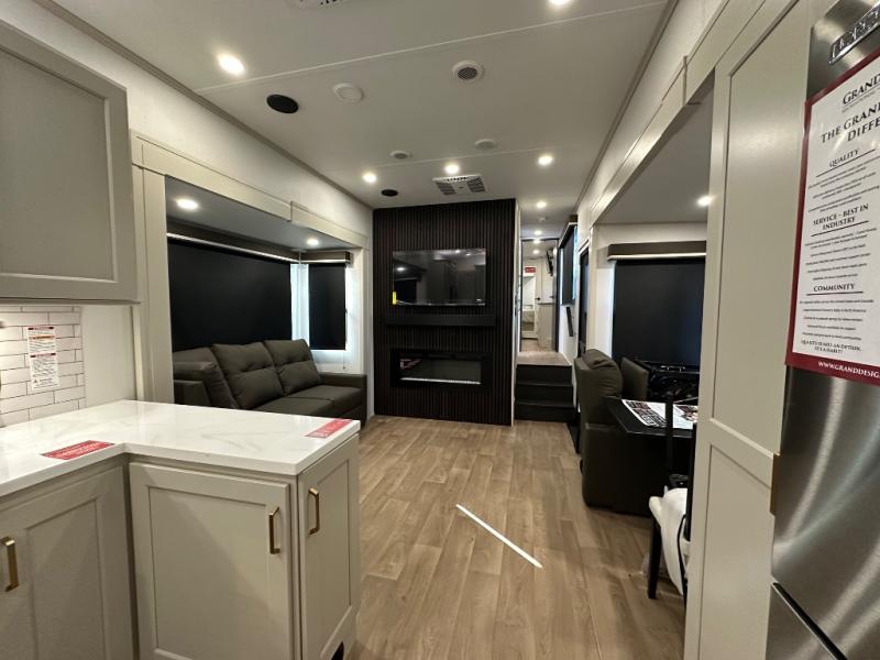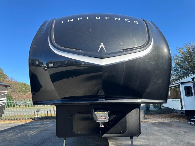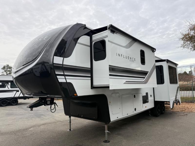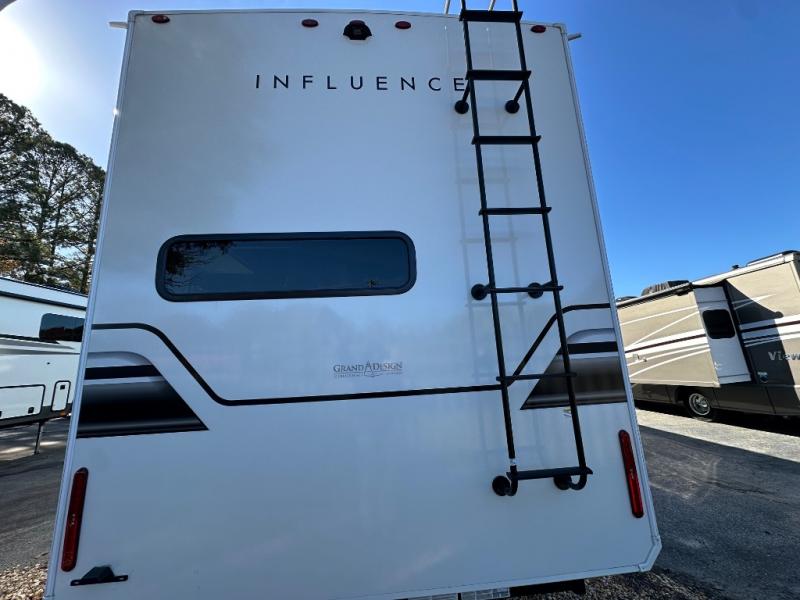 Any Grand Design Influence fifth wheel features five-sided aluminum cage construction with a walk-on roof and a fully enclosed underbelly with heated tanks and storage for all weather camping. For peace of mind, the MORryde CRE3000 Suspension system will provide safe and smooth towing, and the 101" widebody construction offers all the room you need and that is before multiple slides are fully engaged. You will appreciate the Keyed-Alike locks, slam-latch baggage doors with magnetic door catches, exterior security light, and SolidStep entry steps. On the inside, Congoleum flooring, premium roller shades for privacy, a hallway handrail for safety, and nightstands with USB ports to keep all of your electronics fully charged. You will also love the On Demand tankless water heater when showering, plus the added heat and ambiance from an electric fireplace, and so much more!