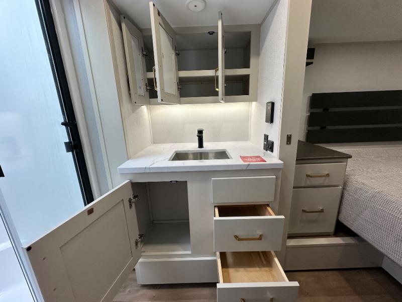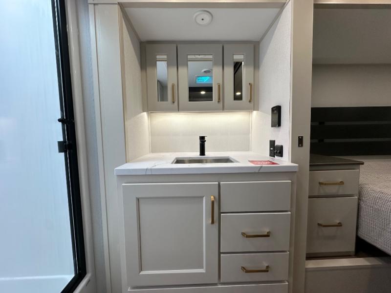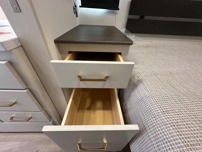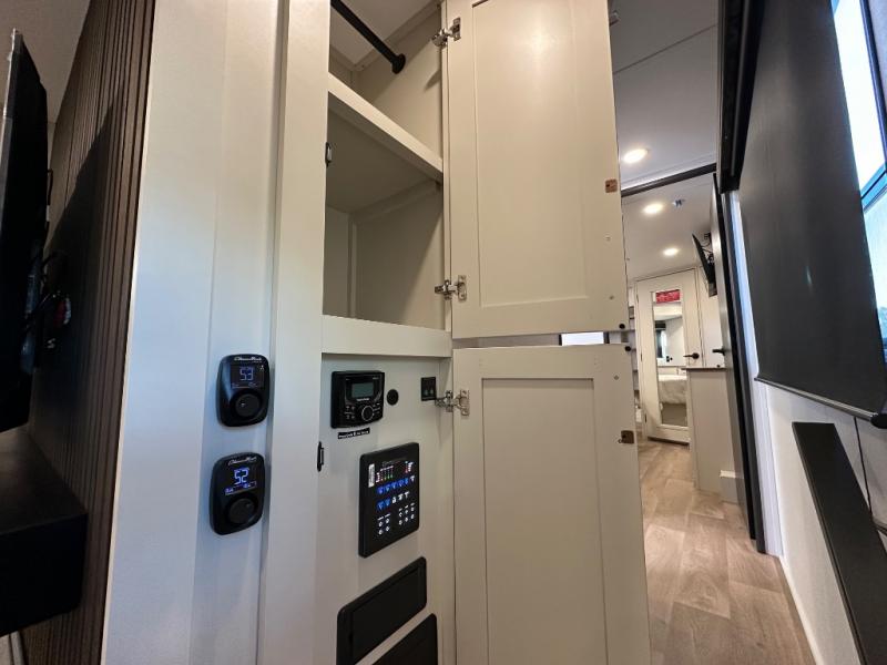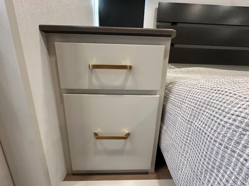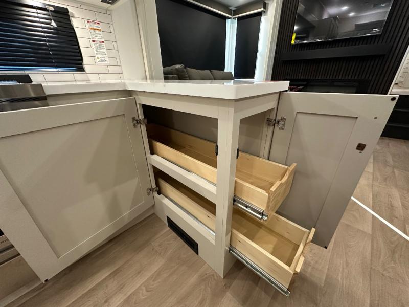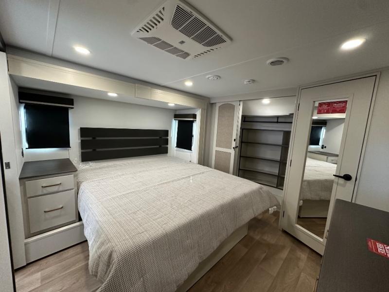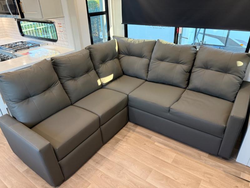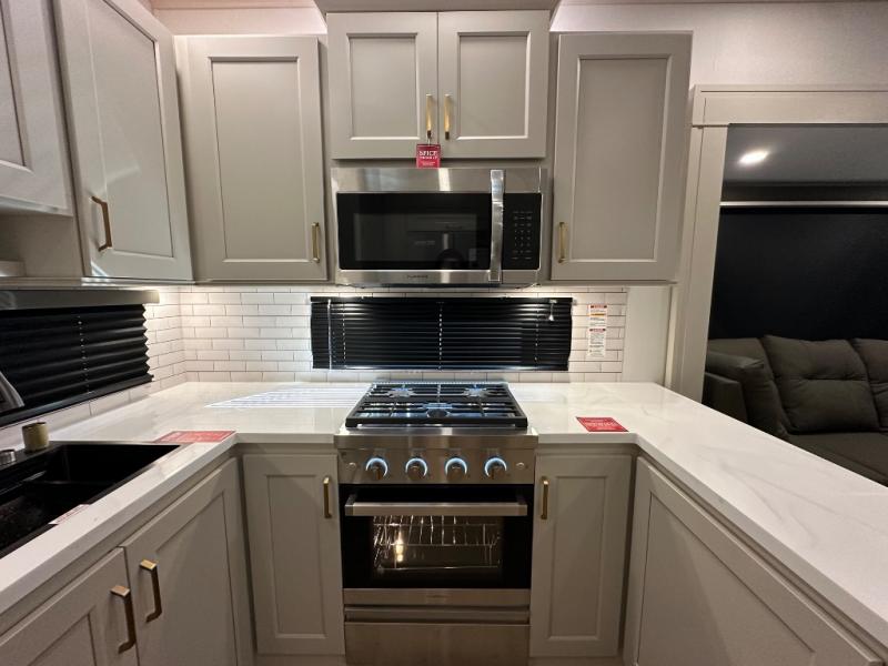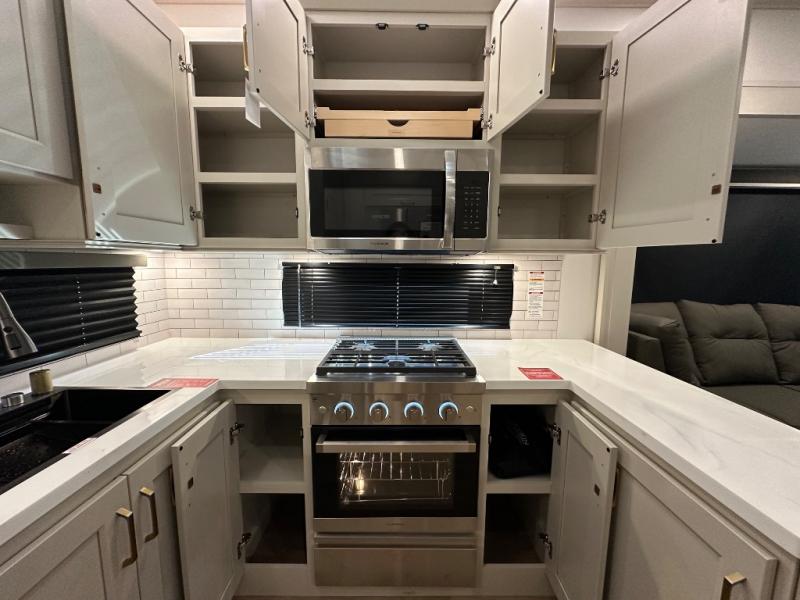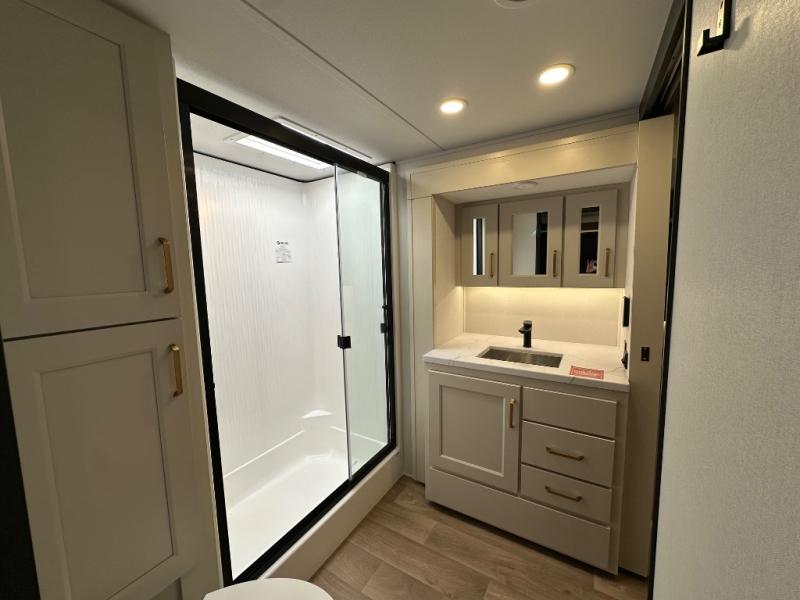 Any Grand Design Influence fifth wheel features five-sided aluminum cage construction with a walk-on roof and a fully enclosed underbelly with heated tanks and storage for all weather camping. For peace of mind, the MORryde CRE3000 Suspension system will provide safe and smooth towing, and the 101" widebody construction offers all the room you need and that is before multiple slides are fully engaged. You will appreciate the Keyed-Alike locks, slam-latch baggage doors with magnetic door catches, exterior security light, and SolidStep entry steps. On the inside, Congoleum flooring, premium roller shades for privacy, a hallway handrail for safety, and nightstands with USB ports to keep all of your electronics fully charged. You will also love the On Demand tankless water heater when showering, plus the added heat and ambiance from an electric fireplace, and so much more!