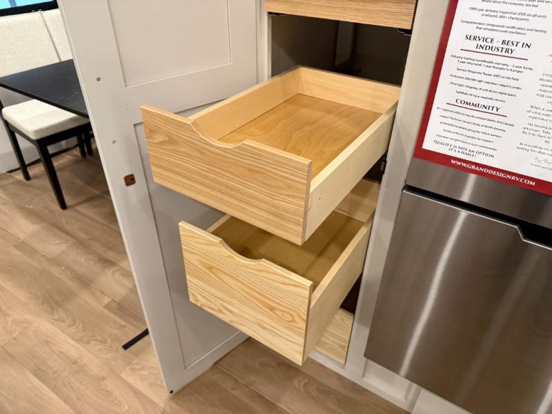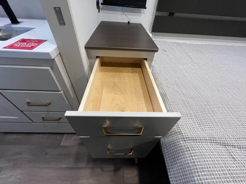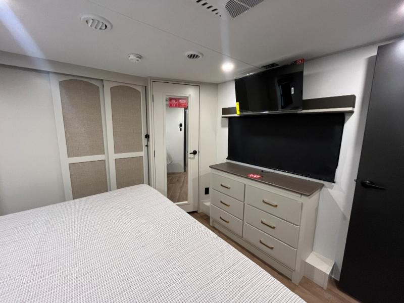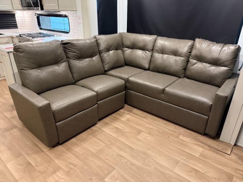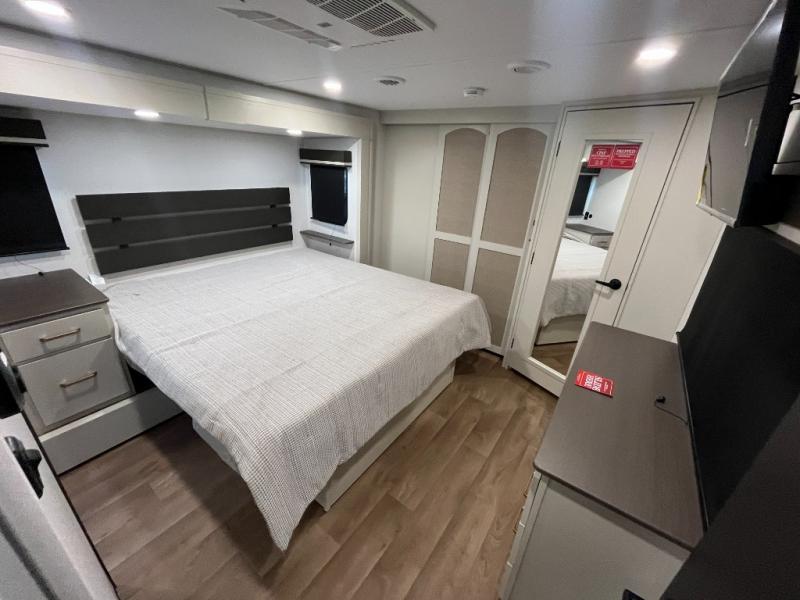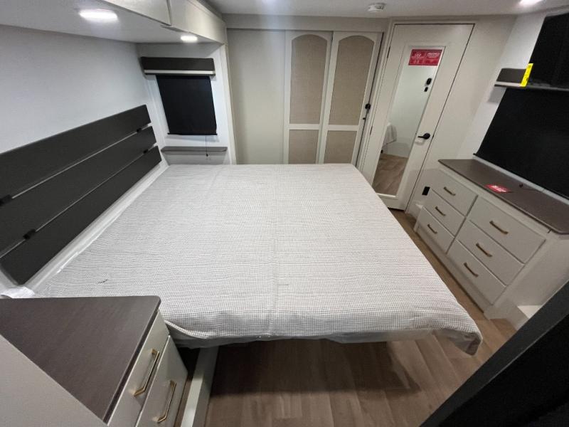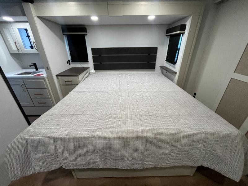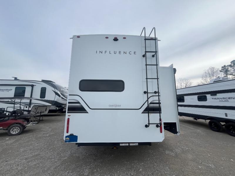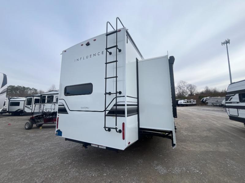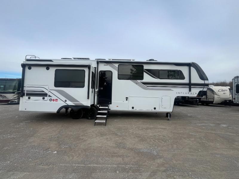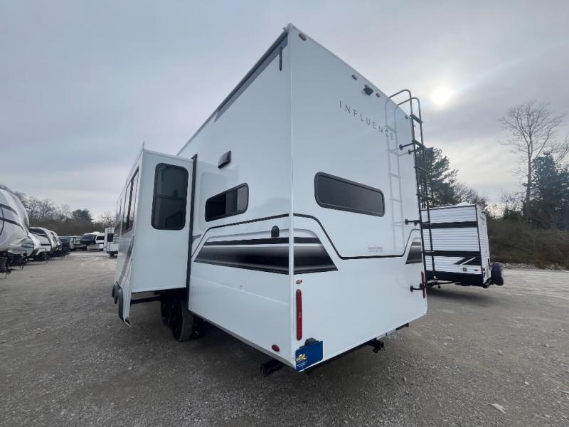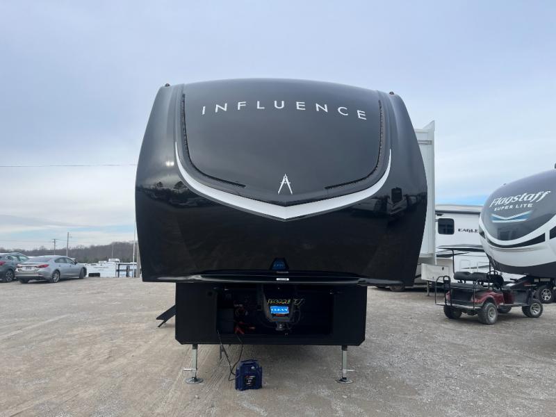 Any Grand Design Influence fifth wheel features five-sided aluminum cage construction with a walk-on roof and a fully enclosed underbelly with heated tanks and storage for all weather camping. For peace of mind, the MORryde CRE3000 Suspension system will provide safe and smooth towing, and the 101" widebody construction offers all the room you need and that is before multiple slides are fully engaged. You will appreciate the Keyed-Alike locks, slam-latch baggage doors with magnetic door catches, exterior security light, and SolidStep entry steps. On the inside, Congoleum flooring, premium roller shades for privacy, a hallway handrail for safety, and nightstands with USB ports to keep all of your electronics fully charged. You will also love the On Demand tankless water heater when showering, plus the added heat and ambiance from an electric fireplace, and so much more!