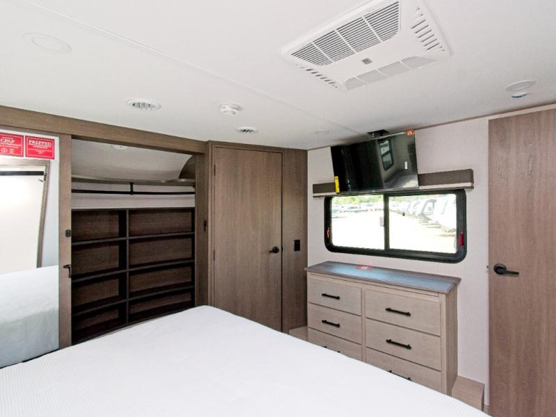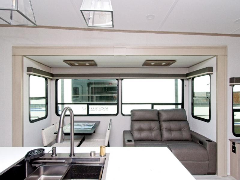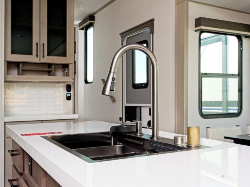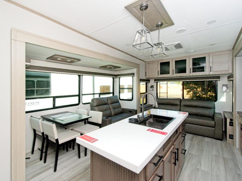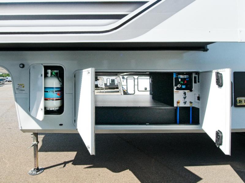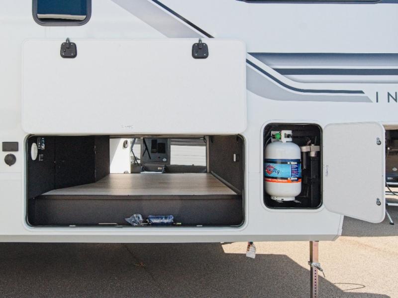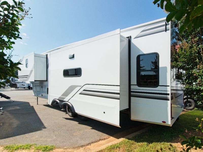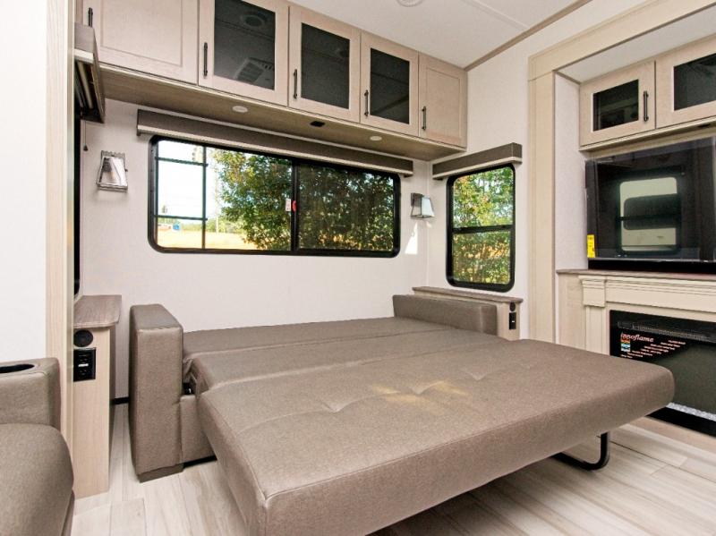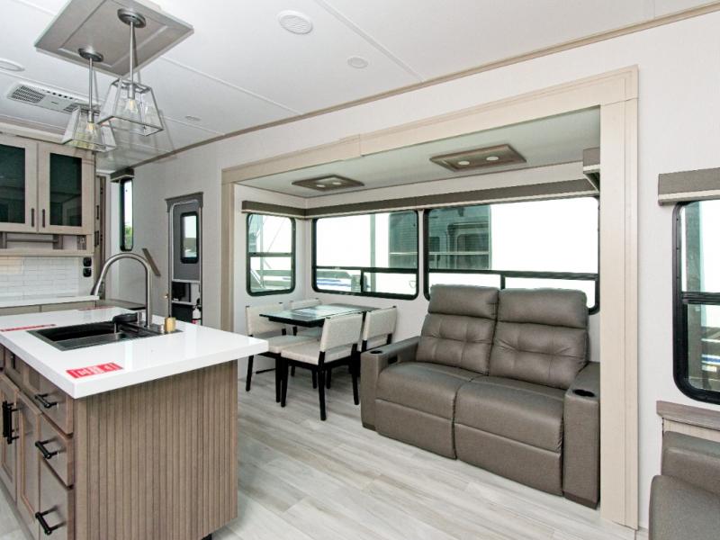 Constructed with five-sided aluminum cage framing, a fully enclosed and heated underbelly, and a walk-on roof, the Influence 3503GK is ready for year-round travel. The MORryde CRE3000 Suspension system ensures a smooth, safe ride, while the 101" widebody design maximizes interior space.