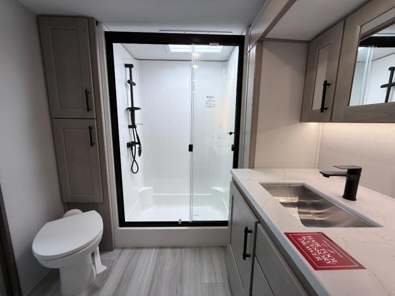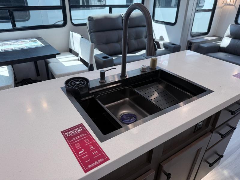 The Grand Design Influence 3503GK combines premium craftsmanship with residential luxury. From its triple A/C setup to the spacious king suite and gourmet kitchen, every detail is built for comfort and performance. Outfitted with upgraded axles, ABS brakes, and the Solar+ package, this fifth wheel is made for extended adventures in any season.