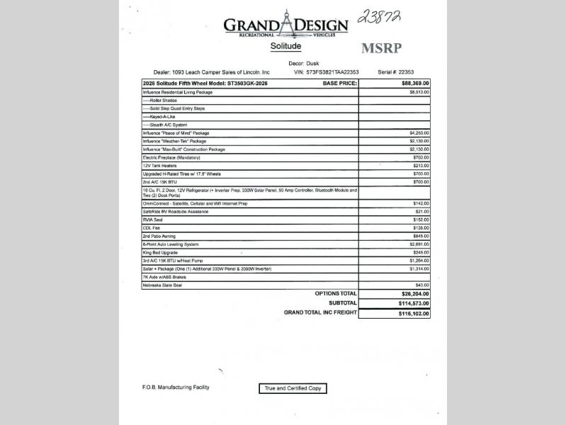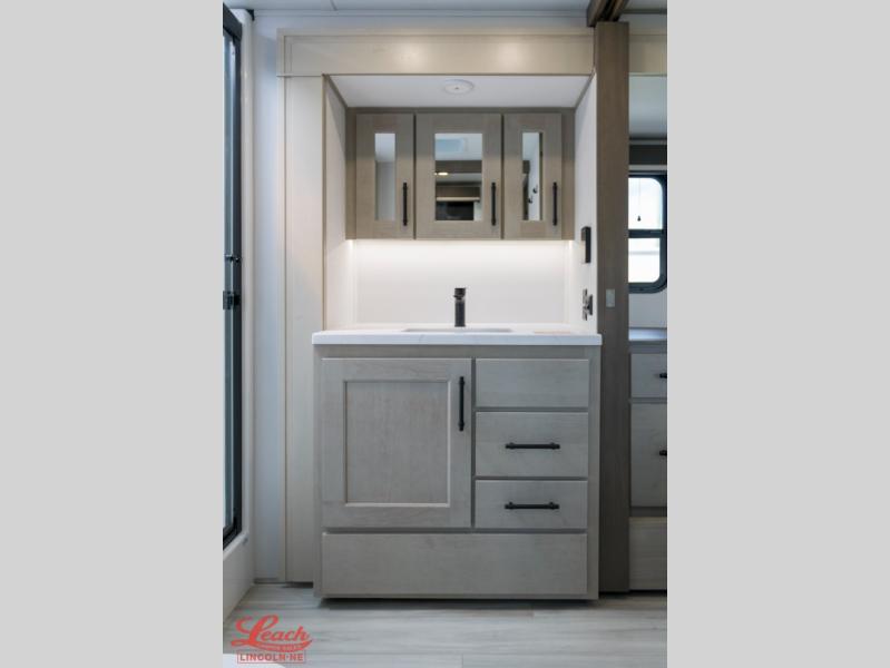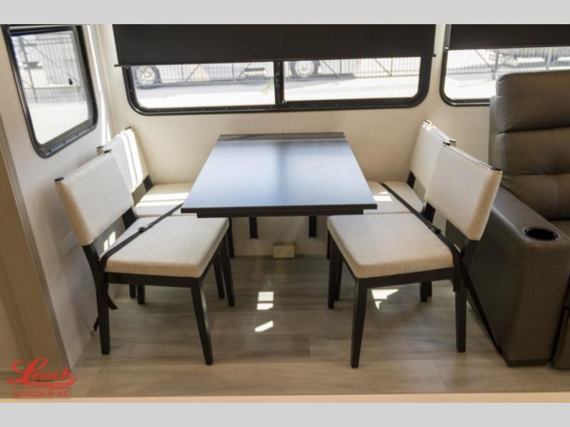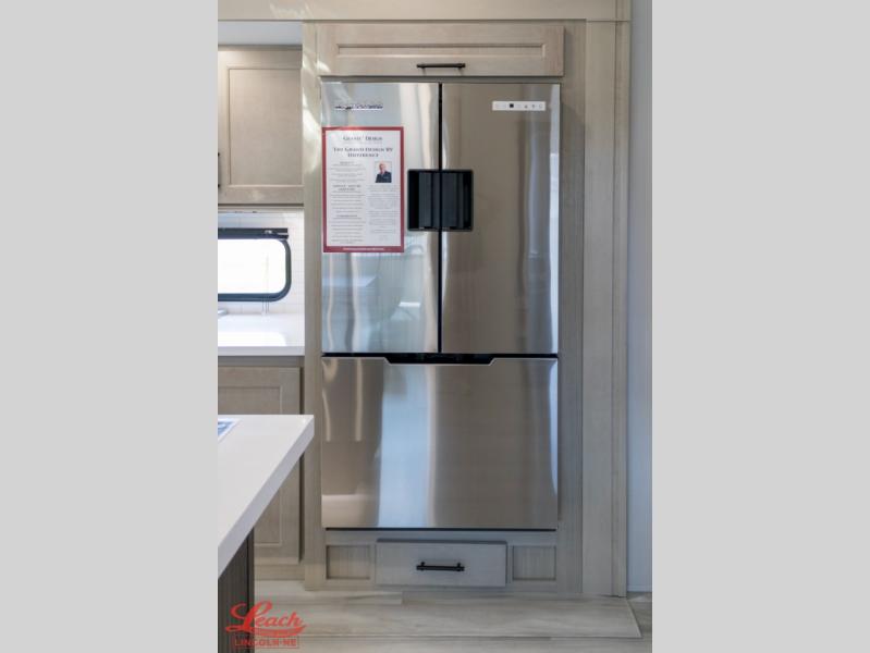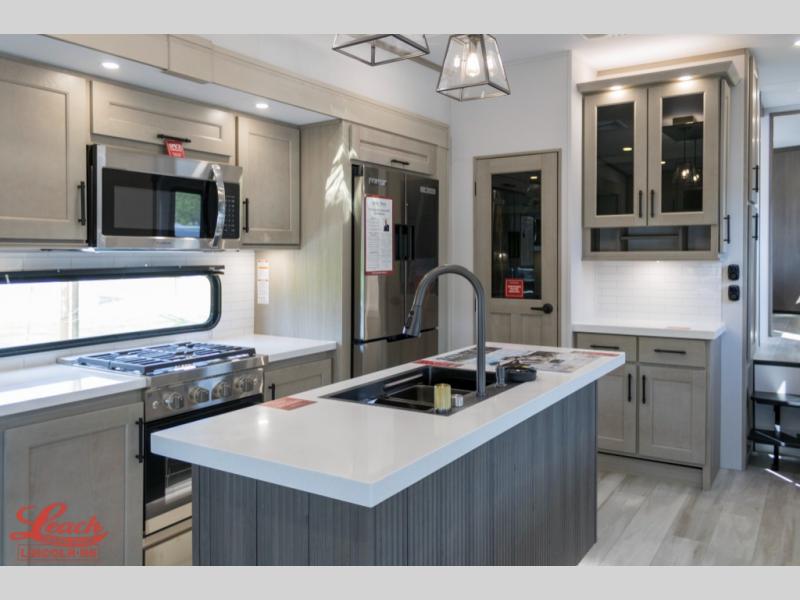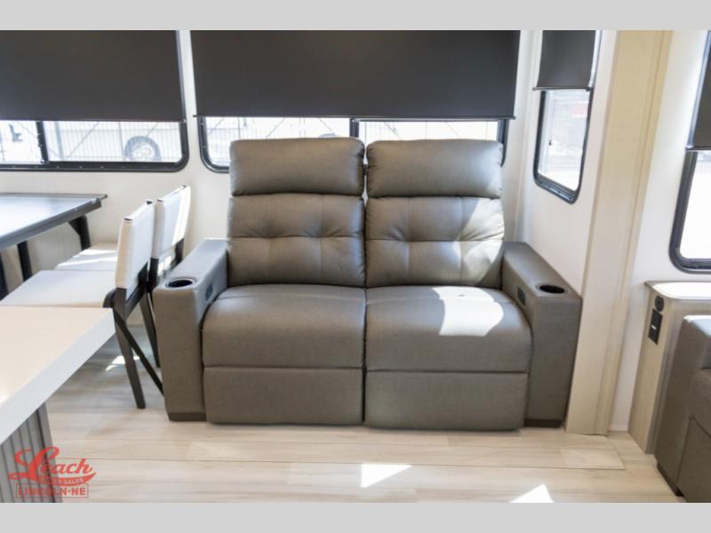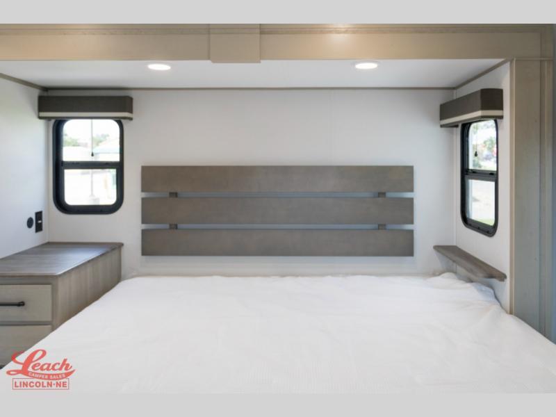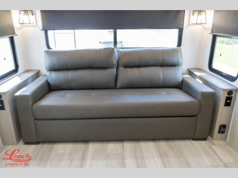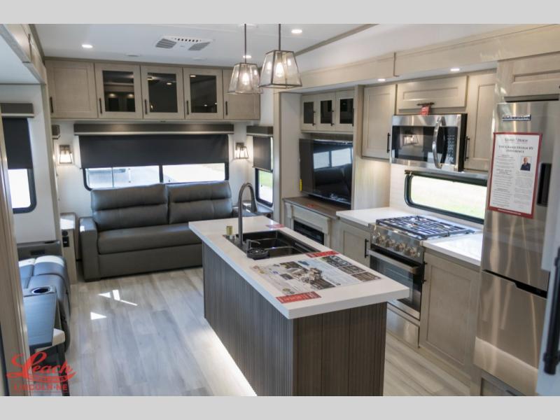 Any Grand Design Influence fifth wheel features five-sided aluminum cage construction with a walk-on roof and a fully enclosed underbelly with heated tanks and storage for all weather camping. For peace of mind, the MORryde CRE3000 Suspension system will provide safe and smooth towing, and the 101" widebody construction offers all the room you need and that is before multiple slides are fully engaged. You will appreciate the Keyed-Alike locks, slam-latch baggage doors with magnetic door catches, exterior security light, and SolidStep entry steps. On the inside, Congoleum flooring, premium roller shades for privacy, a hallway handrail for safety, and nightstands with USB ports to keep all of your electronics fully charged. You will also love the On Demand tankless water heater when showering, plus the added heat and ambiance from an electric fireplace, and so much more!