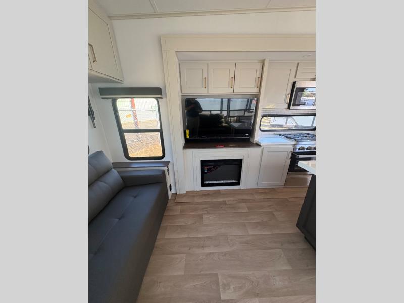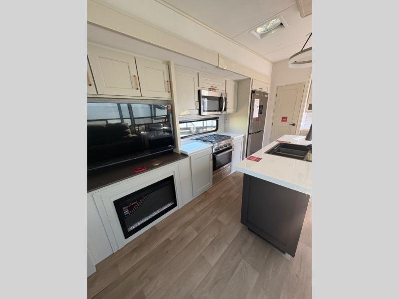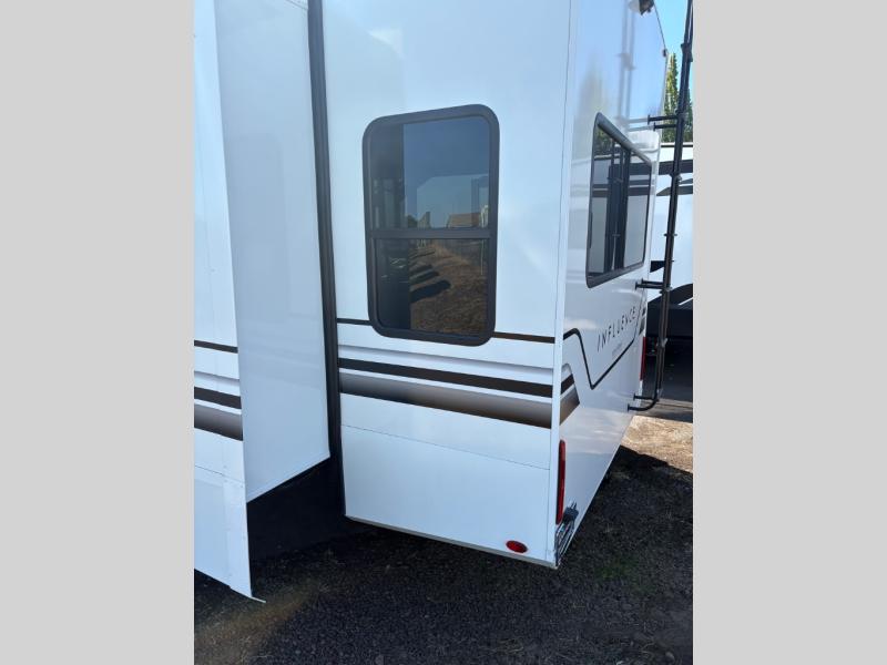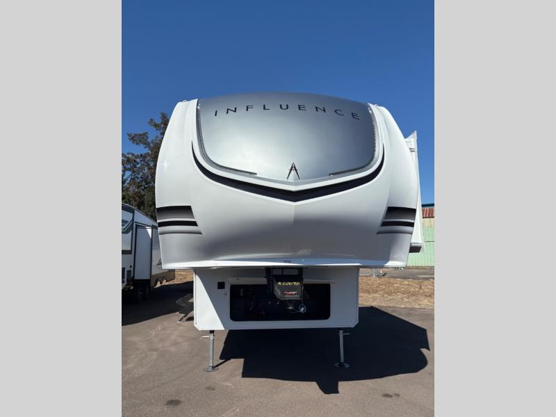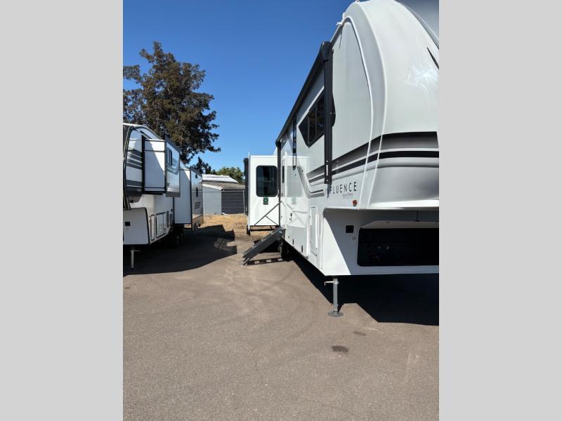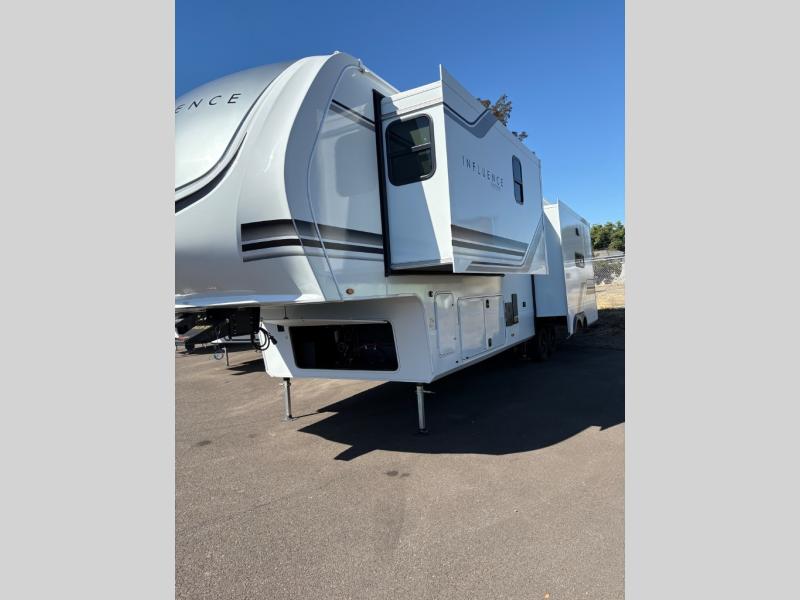 Any Grand Design Influence fifth wheel features five-sided aluminum cage construction with a walk-on roof and a fully enclosed underbelly with heated tanks and storage for all weather camping. For peace of mind, the MORryde CRE3000 Suspension system will provide safe and smooth towing, and the 101" widebody construction offers all the room you need and that is before multiple slides are fully engaged. You will appreciate the Keyed-Alike locks, slam-latch baggage doors with magnetic door catches, exterior security light, and SolidStep entry steps. On the inside, Congoleum flooring, premium roller shades for privacy, a hallway handrail for safety, and nightstands with USB ports to keep all of your electronics fully charged. You will also love the On Demand tankless water heater when showering, plus the added heat and ambiance from an electric fireplace, and so much more!