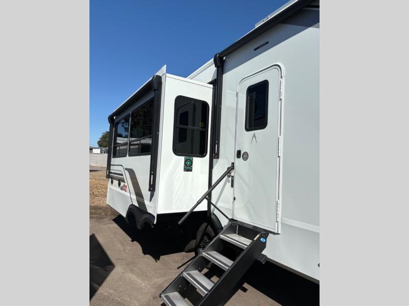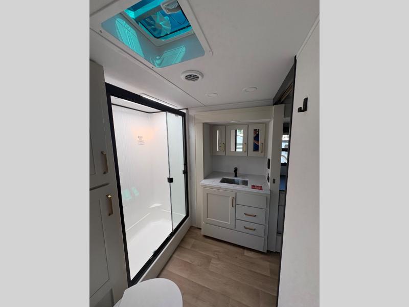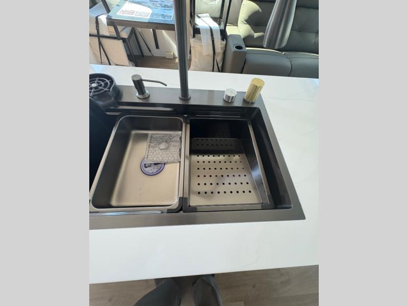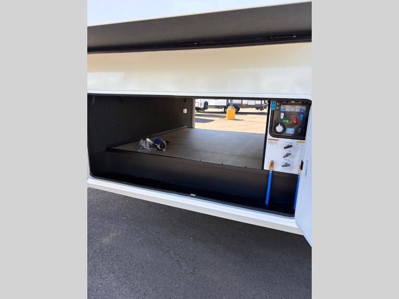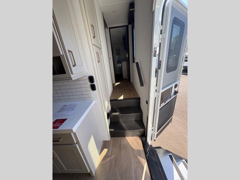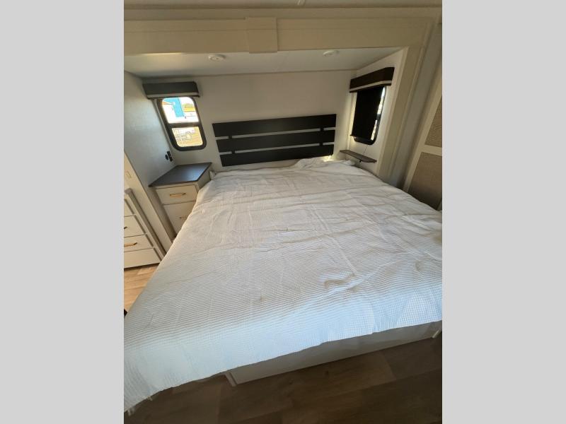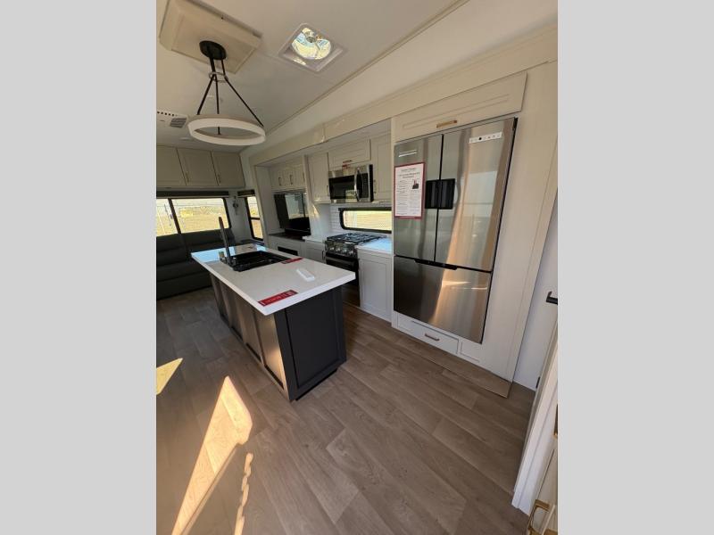 Any Grand Design Influence fifth wheel features five-sided aluminum cage construction with a walk-on roof and a fully enclosed underbelly with heated tanks and storage for all weather camping. For peace of mind, the MORryde CRE3000 Suspension system will provide safe and smooth towing, and the 101" widebody construction offers all the room you need and that is before multiple slides are fully engaged. You will appreciate the Keyed-Alike locks, slam-latch baggage doors with magnetic door catches, exterior security light, and SolidStep entry steps. On the inside, Congoleum flooring, premium roller shades for privacy, a hallway handrail for safety, and nightstands with USB ports to keep all of your electronics fully charged. You will also love the On Demand tankless water heater when showering, plus the added heat and ambiance from an electric fireplace, and so much more!