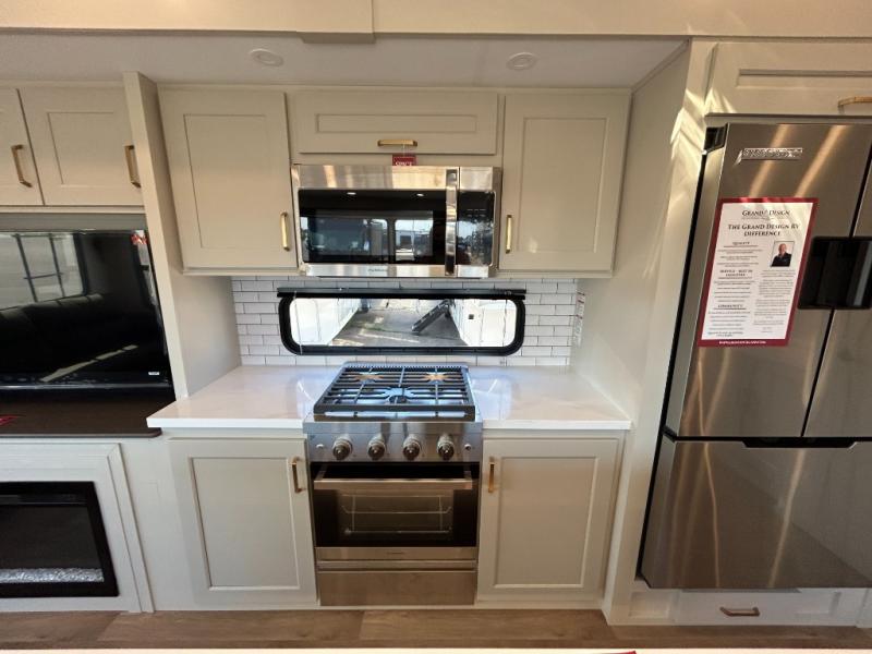Any Grand Design Influence fifth wheel features five-sided aluminum cage construction with a walk-on roof and a fully enclosed underbelly with heated tanks and storage for all weather camping. For peace of mind, the MORryde CRE3000 Suspension system will provide safe and smooth towing, and the 101" widebody construction offers all the room you need and that is before multiple slides are fully engaged. You will appreciate the Keyed-Alike locks, slam-latch baggage doors with magnetic door catches, exterior security light, and SolidStep entry steps. On the inside, Congoleum flooring, premium roller shades for privacy, a hallway handrail for safety, and nightstands with USB ports to keep all of your electronics fully charged. You will also love the On Demand tankless water heater when showering, plus the added heat and ambiance from an electric fireplace, and so much more!