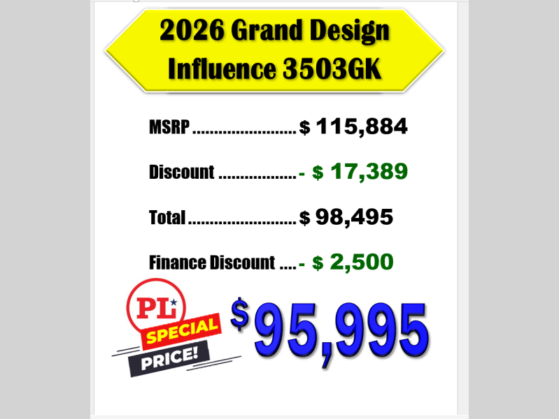 New 2026 Grand Design Influence 3503GK Fifth Wheel