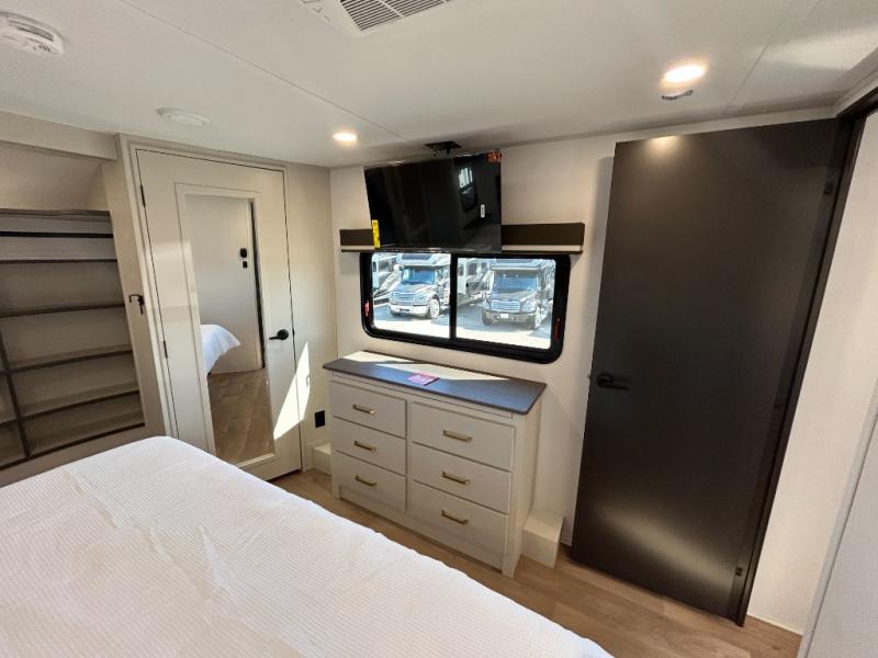 Any Grand Design Influence fifth wheel features five-sided aluminum cage construction with a walk-on roof and a fully enclosed underbelly with heated tanks and storage for all weather camping. For peace of mind, the MORryde CRE3000 Suspension system will provide safe and smooth towing, and the 101" widebody construction offers all the room you need and that is before multiple slides are fully engaged. You will appreciate the Keyed-Alike locks, slam-latch baggage doors with magnetic door catches, exterior security light, and SolidStep entry steps. On the inside, Congoleum flooring, premium roller shades for privacy, a hallway handrail for safety, and nightstands with USB ports to keep all of your electronics fully charged. You will also love the On Demand tankless water heater when showering, plus the added heat and ambiance from an electric fireplace, and so much more!
