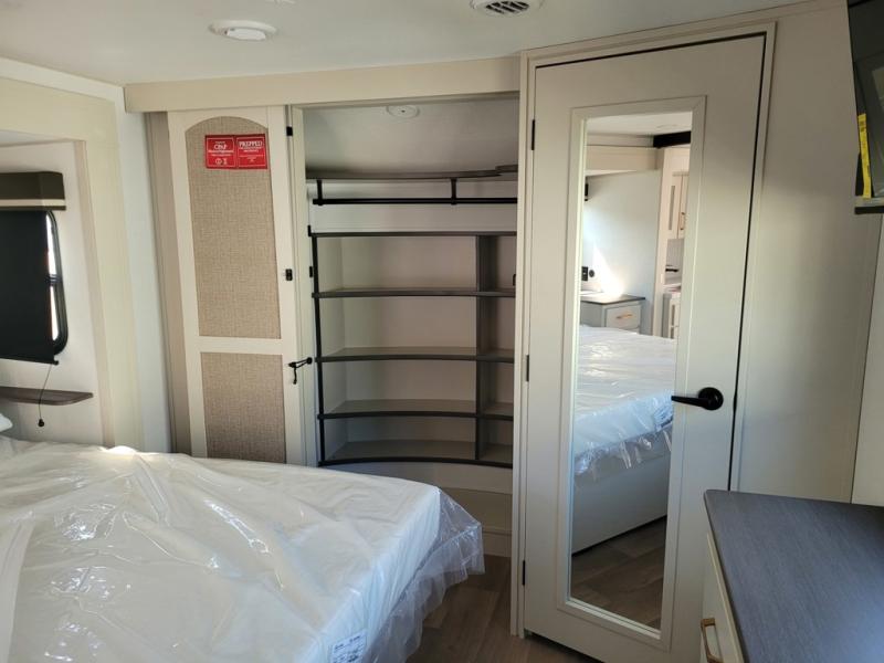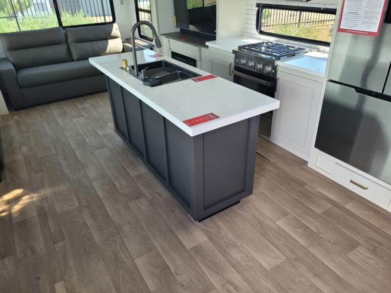 Any Grand Design Influence fifth wheel features five-sided aluminum cage construction with a walk-on roof and a fully enclosed underbelly with heated tanks and storage for all weather camping. For peace of mind, the MORryde CRE3000 Suspension system will provide safe and smooth towing, and the 101" widebody construction offers all the room you need and that is before multiple slides are fully engaged. You will appreciate the Keyed-Alike locks, slam-latch baggage doors with magnetic door catches, exterior security light, and SolidStep entry steps. On the inside, Congoleum flooring, premium roller shades for privacy, a hallway handrail for safety, and nightstands with USB ports to keep all of your electronics fully charged. You will also love the On Demand tankless water heater when showering, plus the added heat and ambiance from an electric fireplace, and so much more!