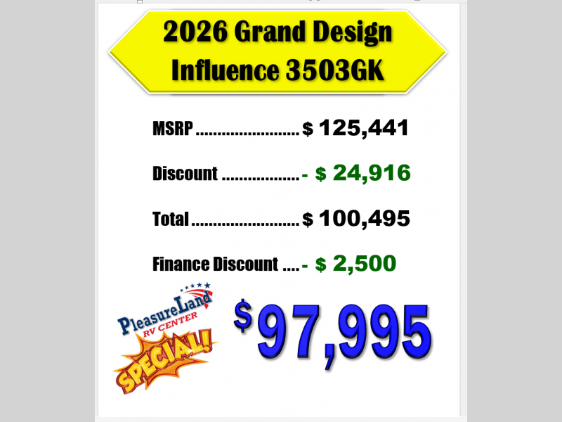 New 2026 Grand Design Influence 3503GK Fifth Wheel