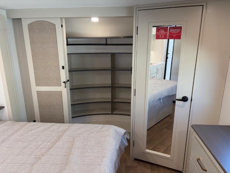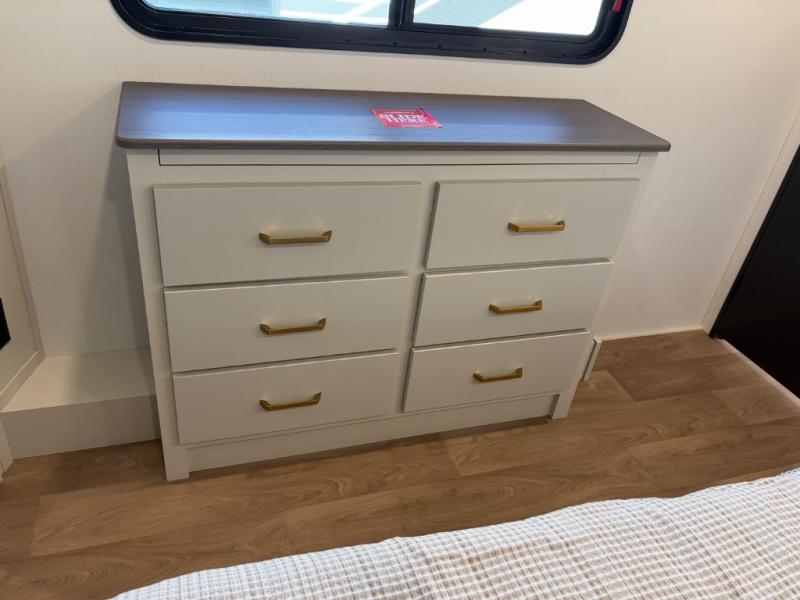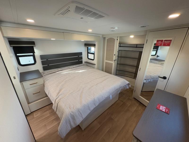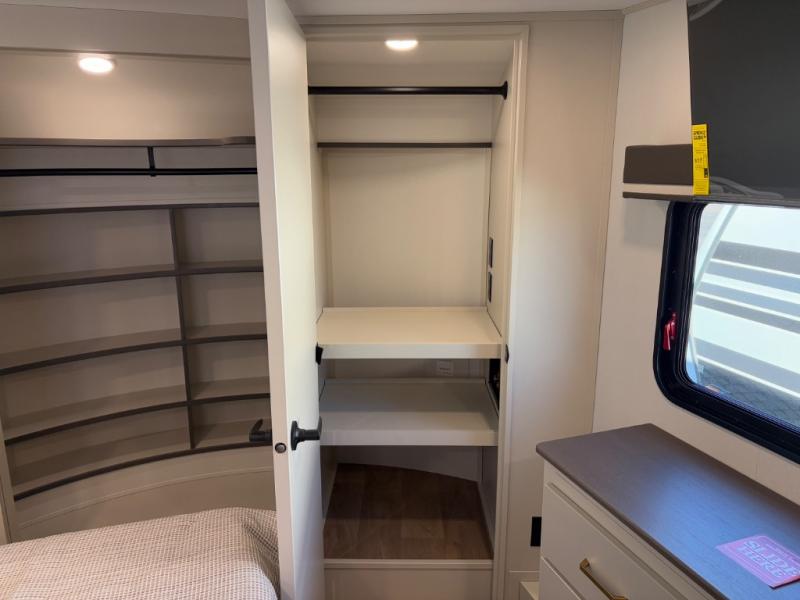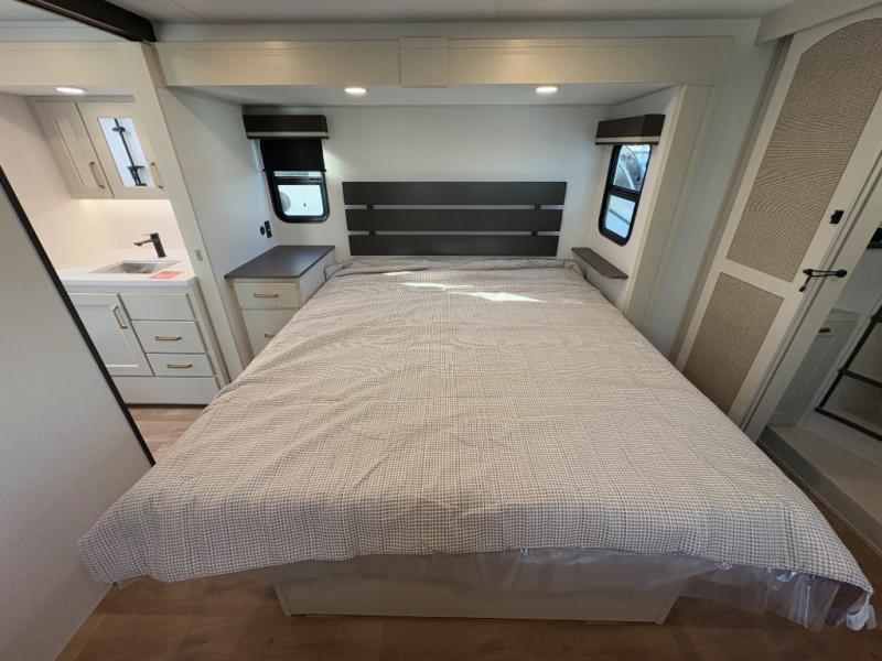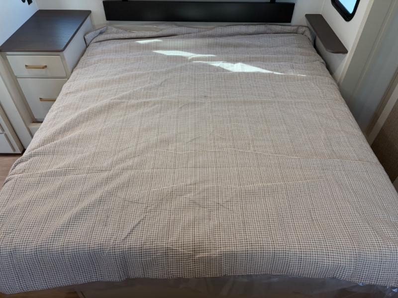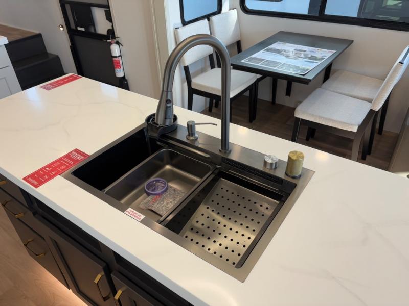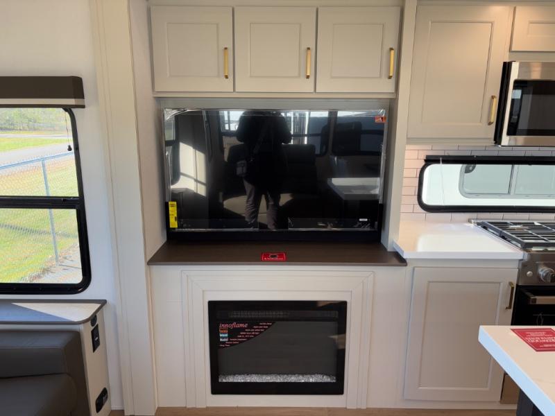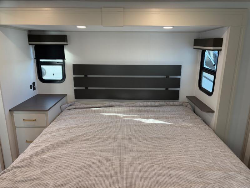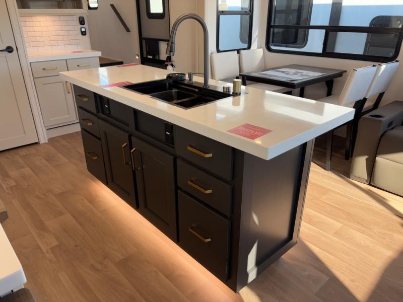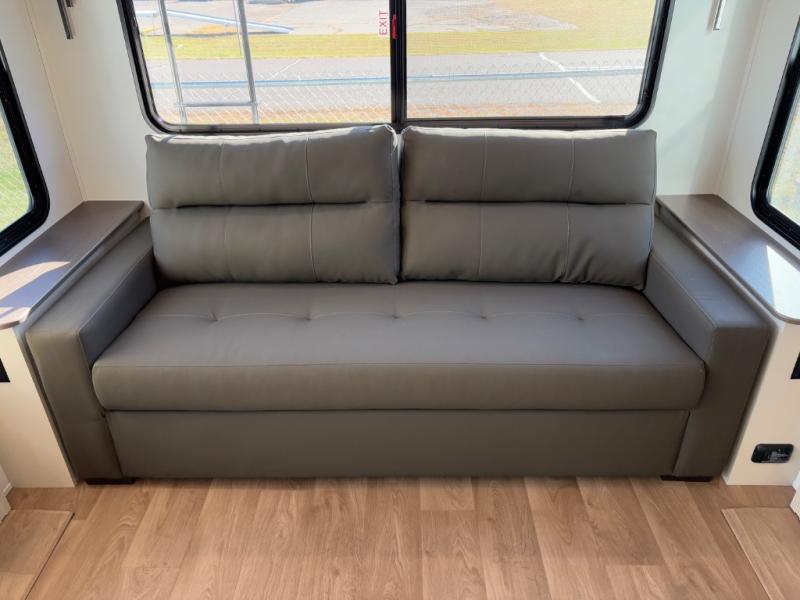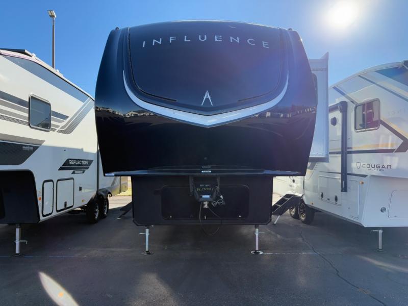 Any Grand Design Influence fifth wheel features five-sided aluminum cage construction with a walk-on roof and a fully enclosed underbelly with heated tanks and storage for all weather camping. For peace of mind, the MORryde CRE3000 Suspension system will provide safe and smooth towing, and the 101" widebody construction offers all the room you need and that is before multiple slides are fully engaged. You will appreciate the Keyed-Alike locks, slam-latch baggage doors with magnetic door catches, exterior security light, and SolidStep entry steps. On the inside, Congoleum flooring, premium roller shades for privacy, a hallway handrail for safety, and nightstands with USB ports to keep all of your electronics fully charged. You will also love the On Demand tankless water heater when showering, plus the added heat and ambiance from an electric fireplace, and so much more!