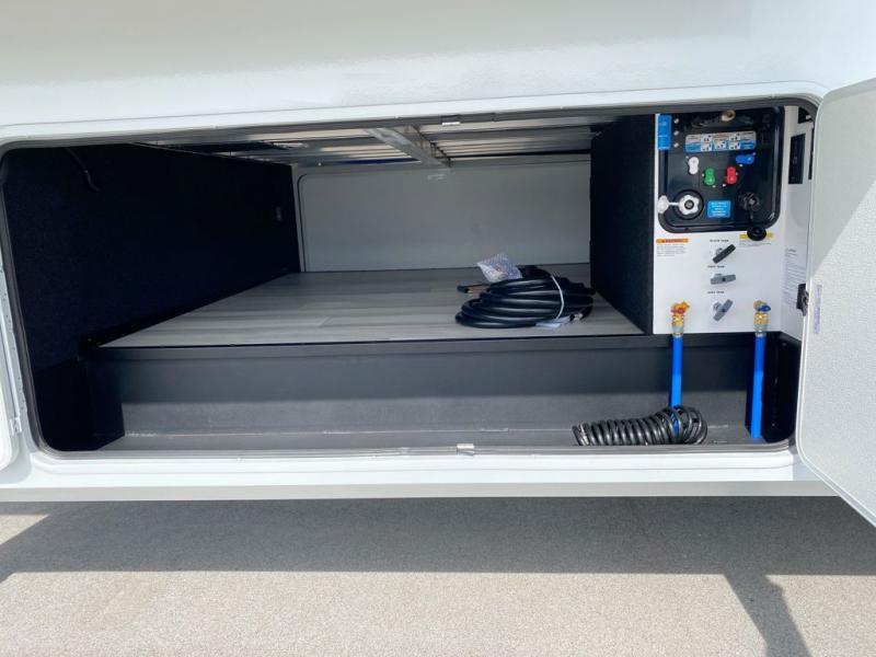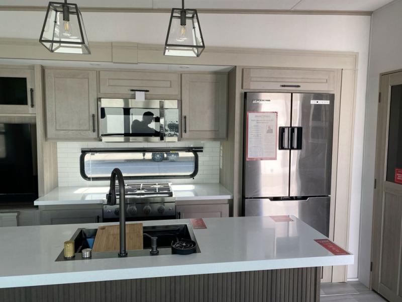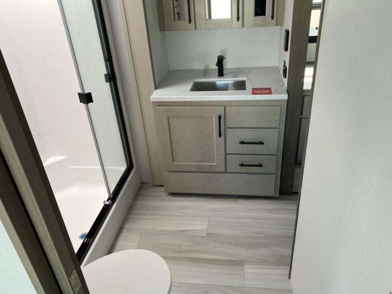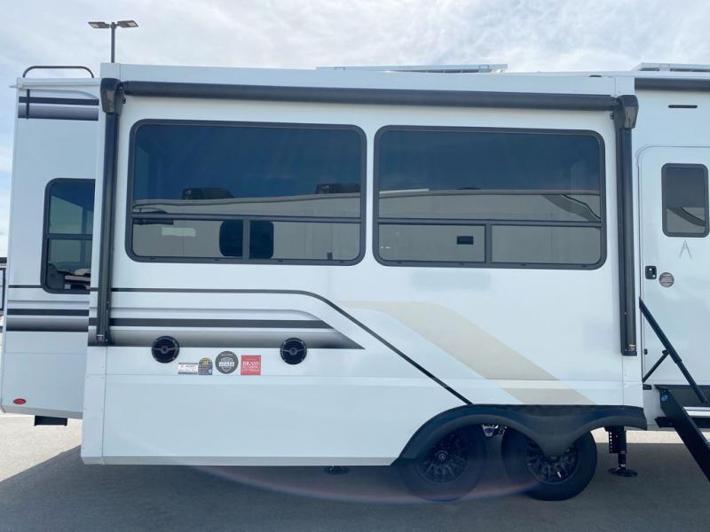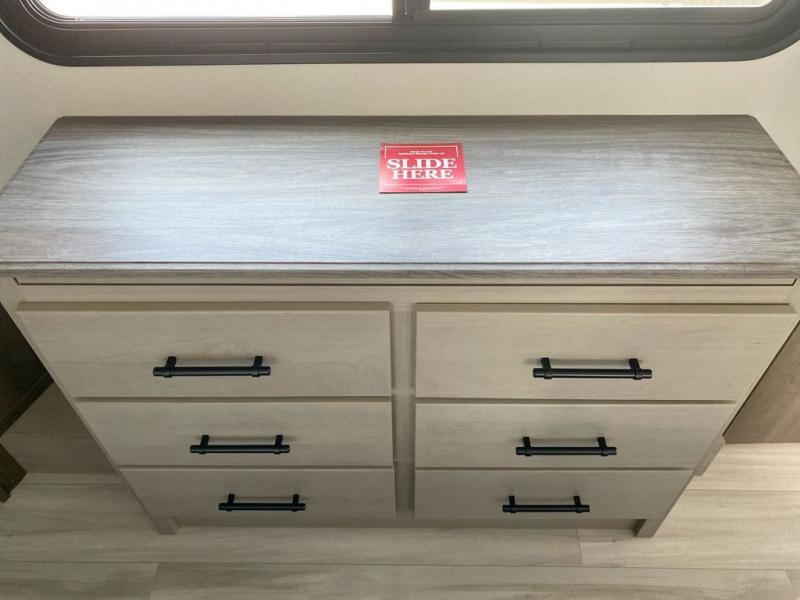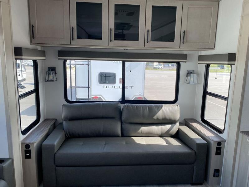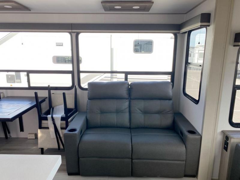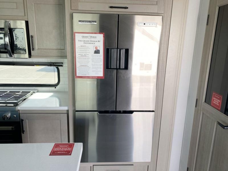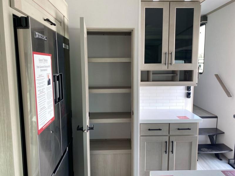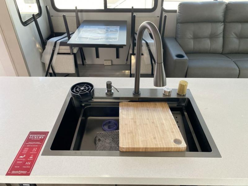 Any Grand Design Influence fifth wheel features five-sided aluminum cage construction with a walk-on roof and a fully enclosed underbelly with heated tanks and storage for all weather camping. For peace of mind, the MORryde CRE3000 Suspension system will provide safe and smooth towing, and the 101" widebody construction offers all the room you need and that is before multiple slides are fully engaged. You will appreciate the Keyed-Alike locks, slam-latch baggage doors with magnetic door catches, exterior security light, and SolidStep entry steps. On the inside, Congoleum flooring, premium roller shades for privacy, a hallway handrail for safety, and nightstands with USB ports to keep all of your electronics fully charged. You will also love the On Demand tankless water heater when showering, plus the added heat and ambiance from an electric fireplace, and so much more!