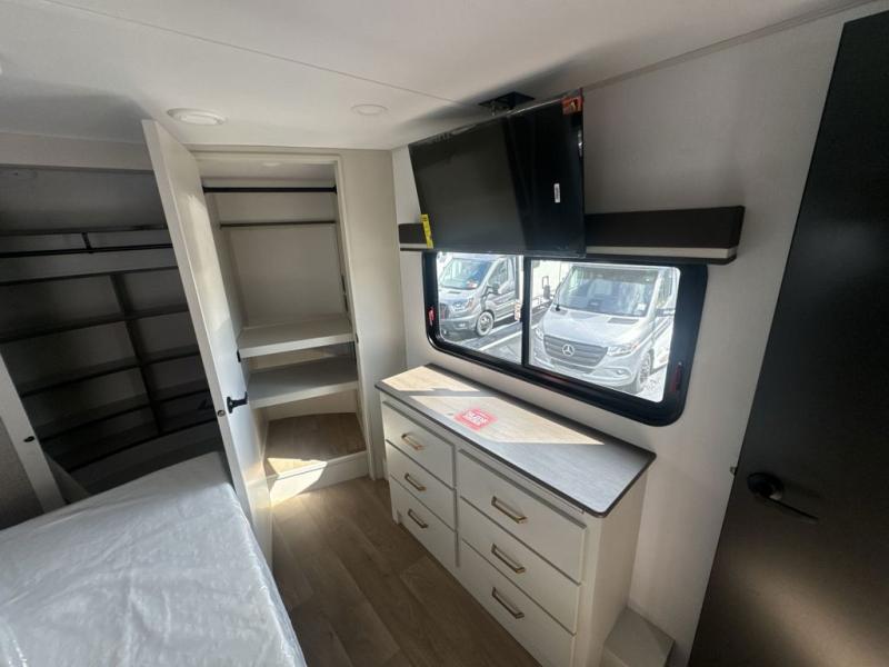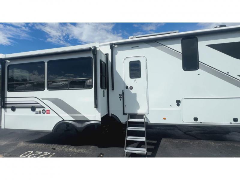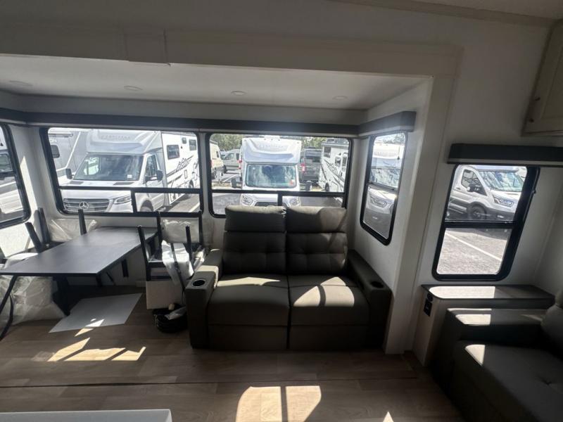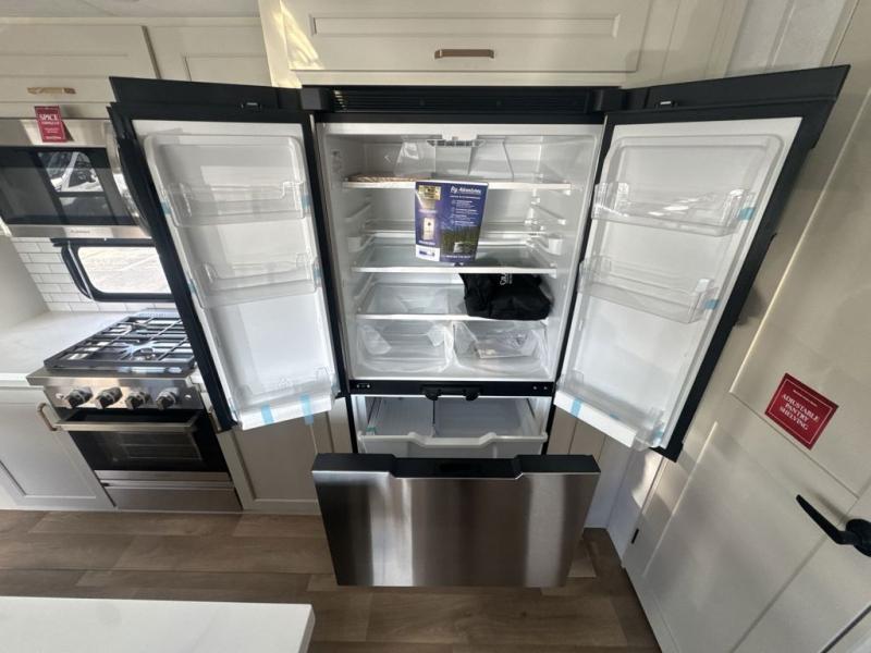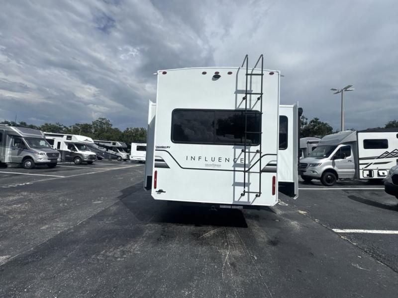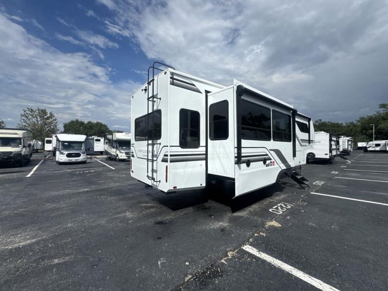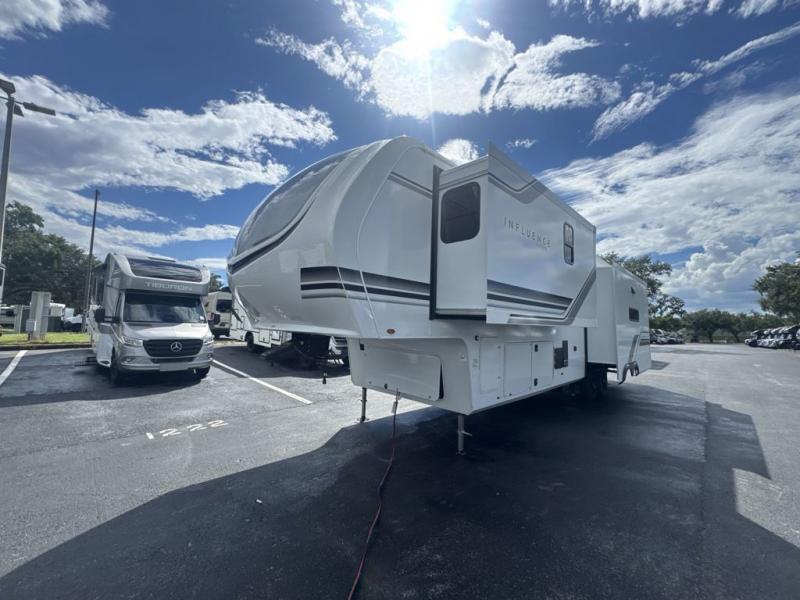 Any Grand Design Influence fifth wheel features five-sided aluminum cage construction with a walk-on roof and a fully enclosed underbelly with heated tanks and storage for all weather camping. For peace of mind, the MORryde CRE3000 Suspension system will provide safe and smooth towing, and the 101" widebody construction offers all the room you need and that is before multiple slides are fully engaged. You will appreciate the Keyed-Alike locks, slam-latch baggage doors with magnetic door catches, exterior security light, and SolidStep entry steps. On the inside, Congoleum flooring, premium roller shades for privacy, a hallway handrail for safety, and nightstands with USB ports to keep all of your electronics fully charged. You will also love the On Demand tankless water heater when showering, plus the added heat and ambiance from an electric fireplace, and so much more!