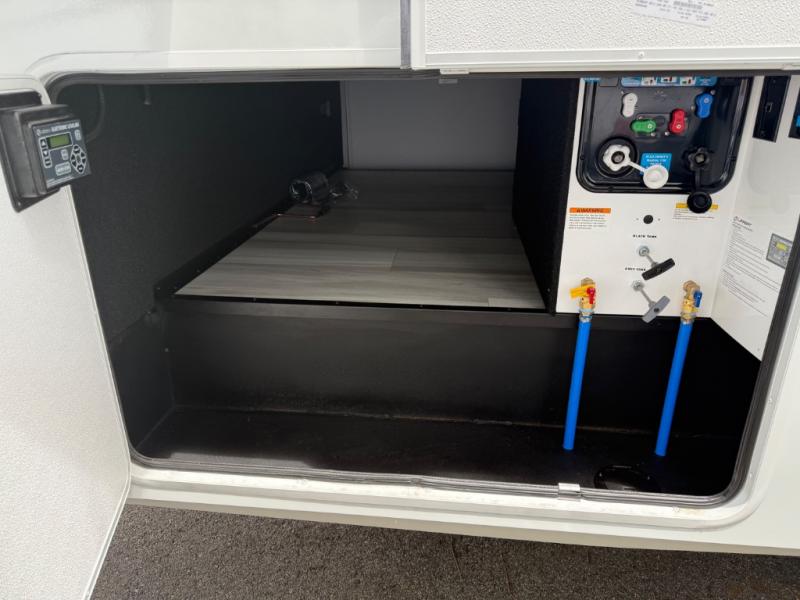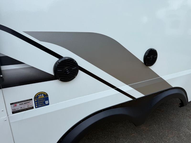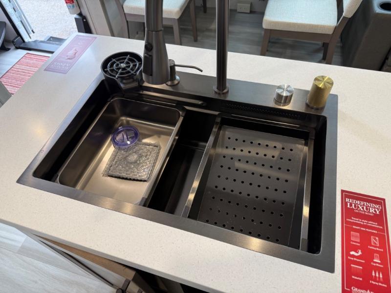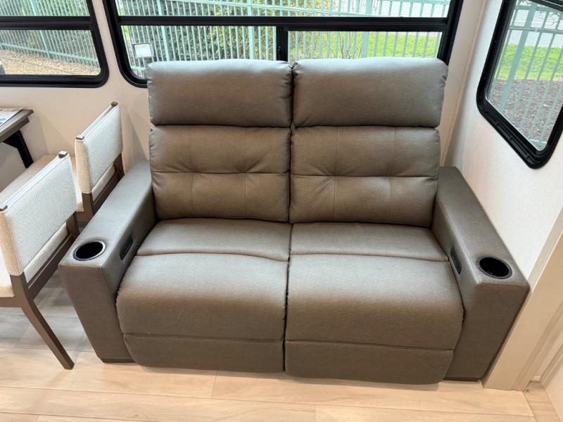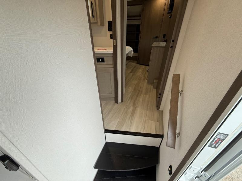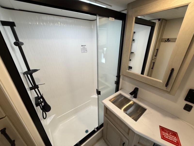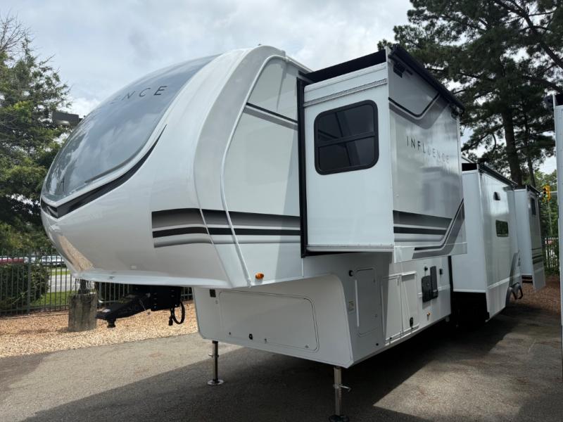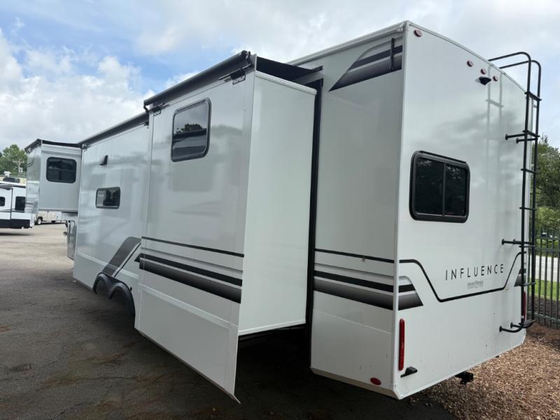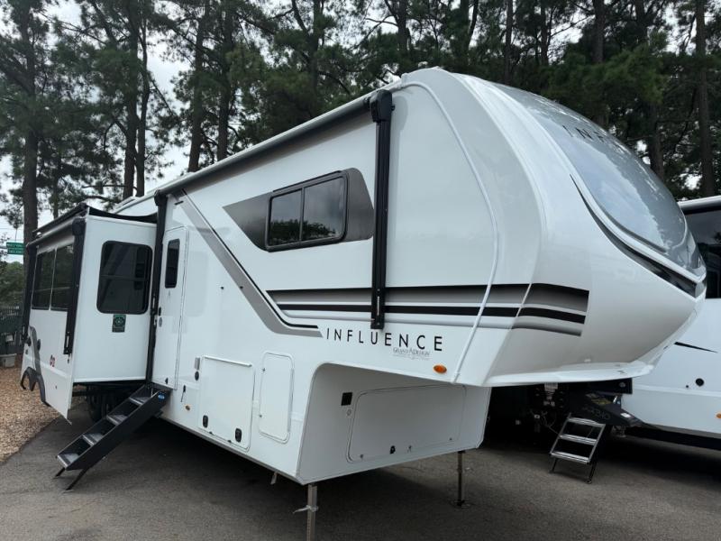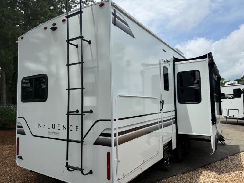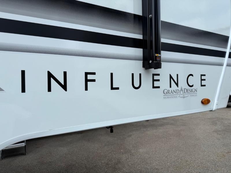 Any Grand Design Influence fifth wheel features five-sided aluminum cage construction with a walk-on roof and a fully enclosed underbelly with heated tanks and storage for all weather camping. For peace of mind, the MORryde CRE3000 Suspension system will provide safe and smooth towing, and the 101" widebody construction offers all the room you need and that is before multiple slides are fully engaged. You will appreciate the Keyed-Alike locks, slam-latch baggage doors with magnetic door catches, exterior security light, and SolidStep entry steps. On the inside, Congoleum flooring, premium roller shades for privacy, a hallway handrail for safety, and nightstands with USB ports to keep all of your electronics fully charged. You will also love the On Demand tankless water heater when showering, plus the added heat and ambiance from an electric fireplace, and so much more!