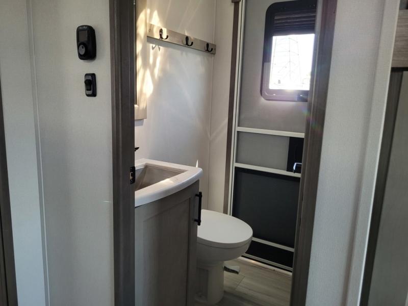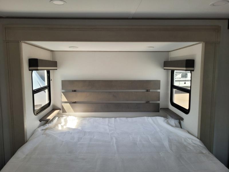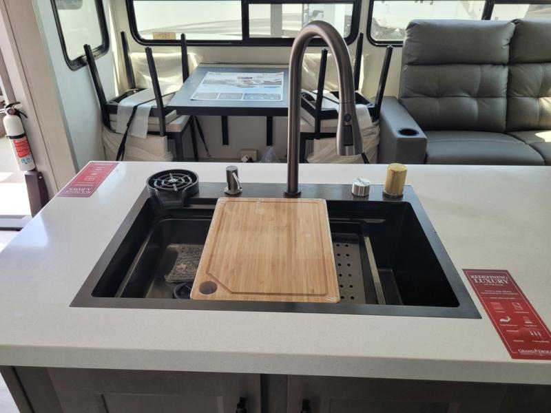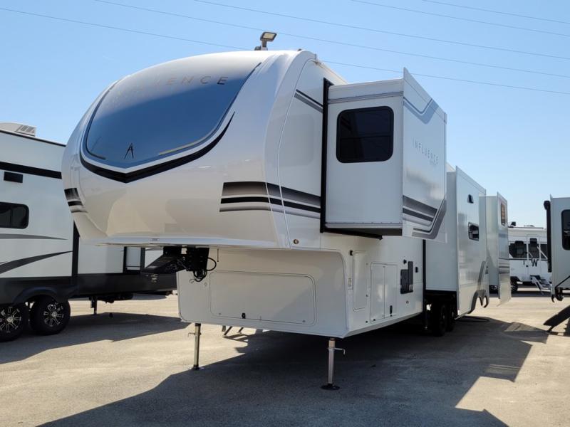 Any Grand Design Influence fifth wheel features five-sided aluminum cage construction with a walk-on roof and a fully enclosed underbelly with heated tanks and storage for all weather camping. For peace of mind, the MORryde CRE3000 Suspension system will provide safe and smooth towing, and the 101" widebody construction offers all the room you need and that is before multiple slides are fully engaged. You will appreciate the Keyed-Alike locks, slam-latch baggage doors with magnetic door catches, exterior security light, and SolidStep entry steps. On the inside, Congoleum flooring, premium roller shades for privacy, a hallway handrail for safety, and nightstands with USB ports to keep all of your electronics fully charged. You will also love the On Demand tankless water heater when showering, plus the added heat and ambiance from an electric fireplace, and so much more!