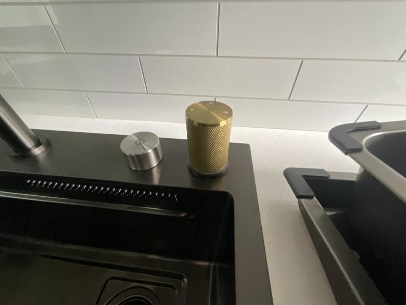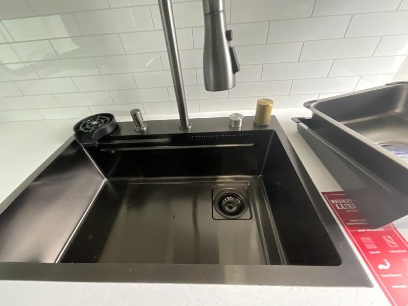 Fully equipped chef-inspired kitchen with solid-surface countertops