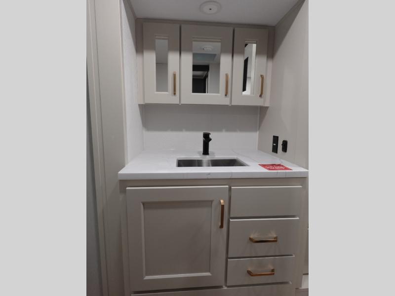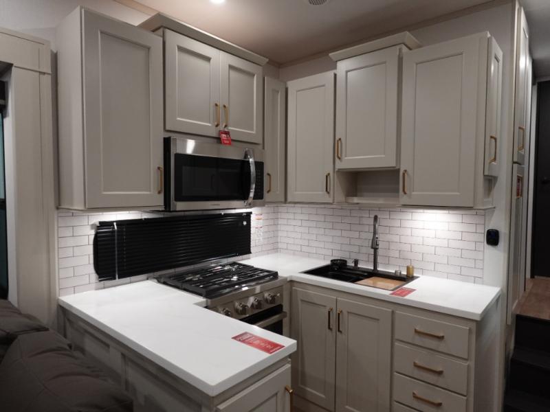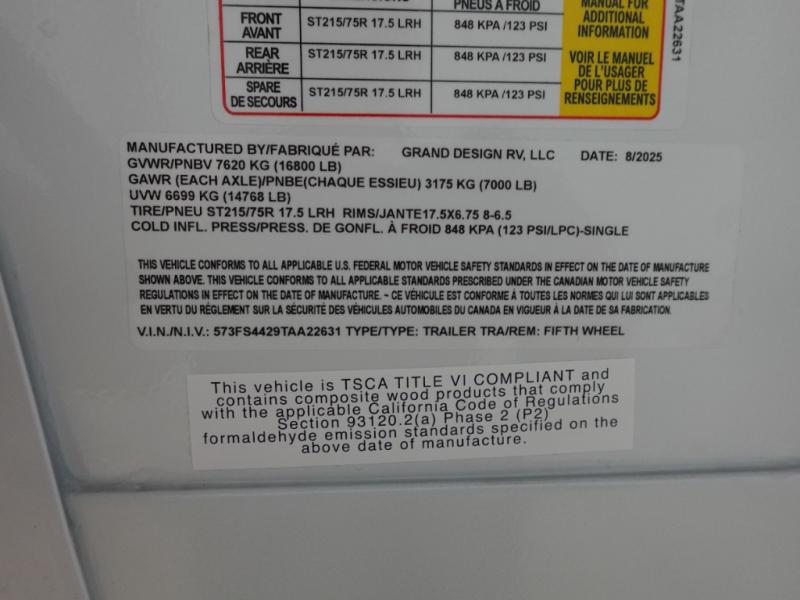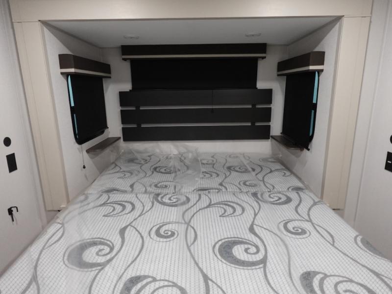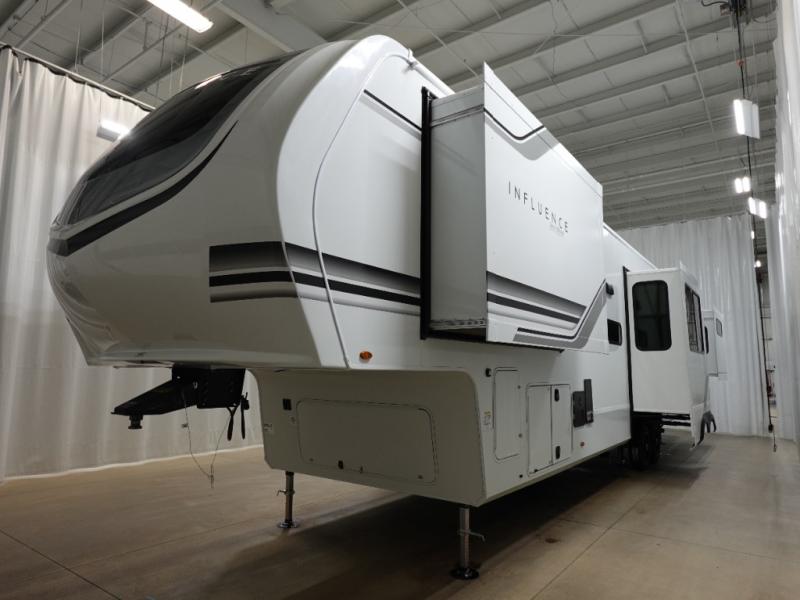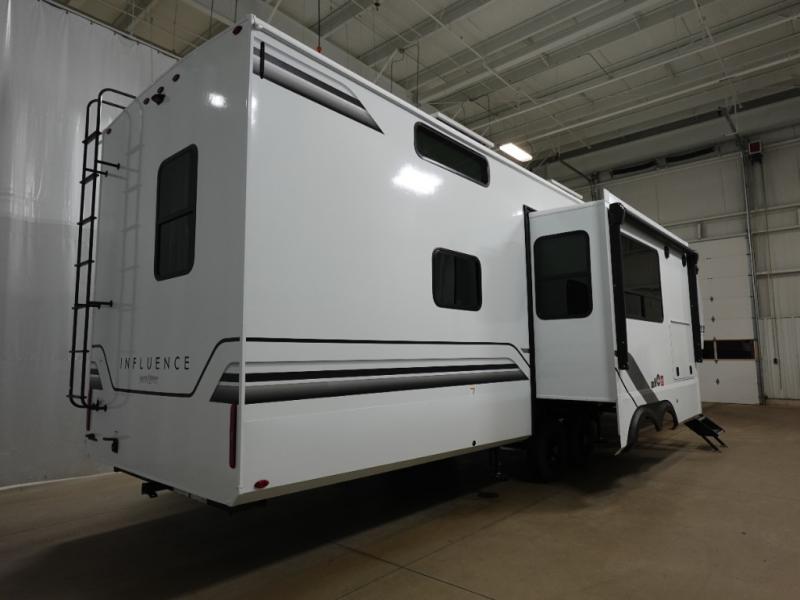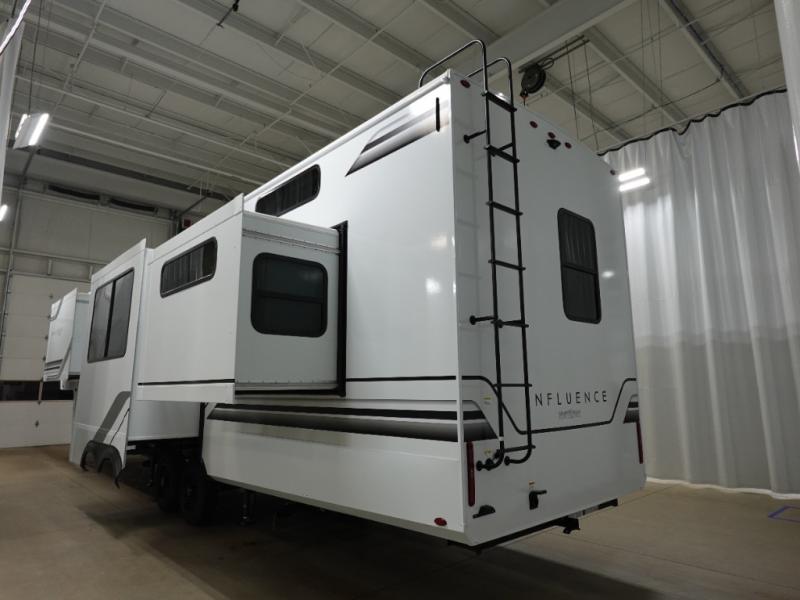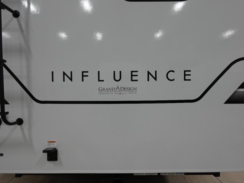 Any Grand Design Influence fifth wheel features five-sided aluminum cage construction with a walk-on roof and a fully enclosed underbelly with heated tanks and storage for all weather camping. For peace of mind, the MORryde CRE3000 Suspension system will provide safe and smooth towing, and the 101" widebody construction offers all the room you need and that is before multiple slides are fully engaged. You will appreciate the Keyed-Alike locks, slam-latch baggage doors with magnetic door catches, exterior security light, and SolidStep entry steps. On the inside, Congoleum flooring, premium roller shades for privacy, a hallway handrail for safety, and nightstands with USB ports to keep all of your electronics fully charged. You will also love the On Demand tankless water heater when showering, plus the added heat and ambiance from an electric fireplace, and so much more!