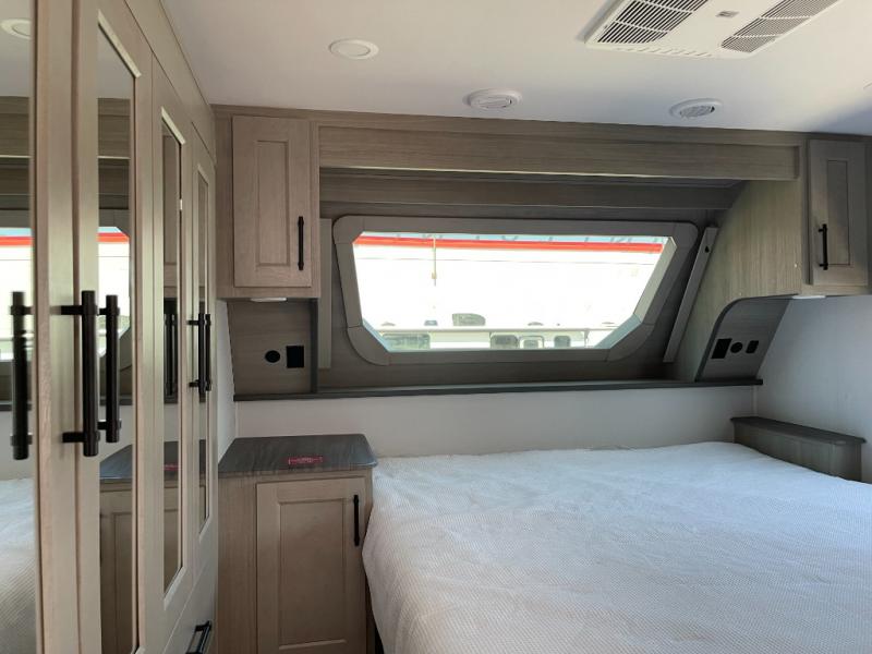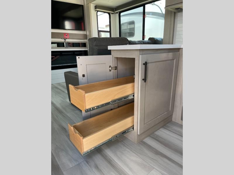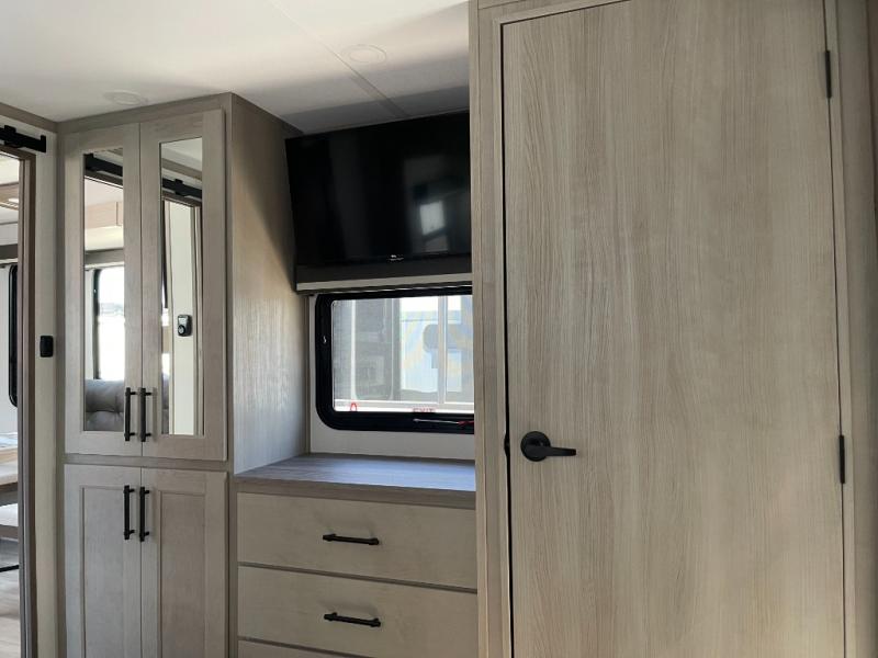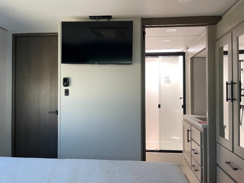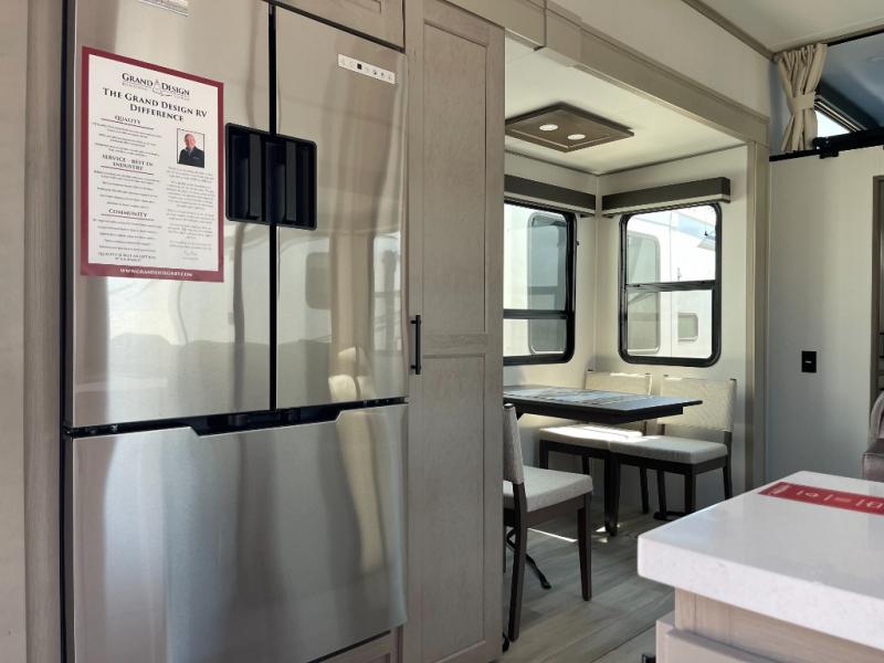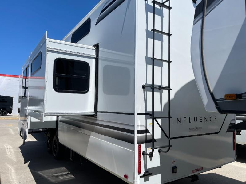 Any Grand Design Influence fifth wheel features five-sided aluminum cage construction with a walk-on roof and a fully enclosed underbelly with heated tanks and storage for all weather camping. For peace of mind, the MORryde CRE3000 Suspension system will provide safe and smooth towing, and the 101" widebody construction offers all the room you need and that is before multiple slides are fully engaged. You will appreciate the Keyed-Alike locks, slam-latch baggage doors with magnetic door catches, exterior security light, and SolidStep entry steps. On the inside, Congoleum flooring, premium roller shades for privacy, a hallway handrail for safety, and nightstands with USB ports to keep all of your electronics fully charged. You will also love the On Demand tankless water heater when showering, plus the added heat and ambiance from an electric fireplace, and so much more!