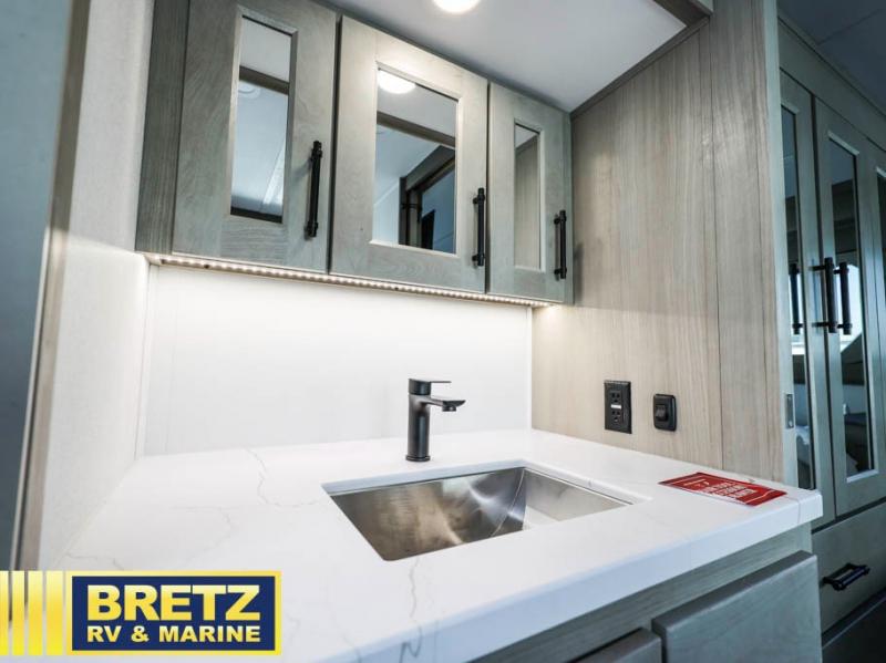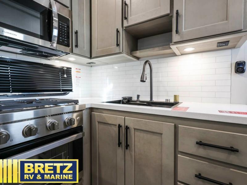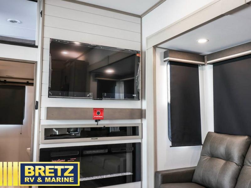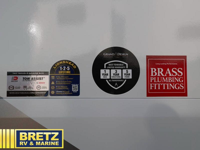 Any Grand Design Influence fifth wheel features five-sided aluminum cage construction with a walk-on roof and a fully enclosed underbelly with heated tanks and storage for all weather camping. For peace of mind, the MORryde CRE3000 Suspension system will provide safe and smooth towing, and the 101" widebody construction offers all the room you need and that is before multiple slides are fully engaged. You will appreciate the Keyed-Alike locks, slam-latch baggage doors with magnetic door catches, exterior security light, and SolidStep entry steps. On the inside, Congoleum flooring, premium roller shades for privacy, a hallway handrail for safety, and nightstands with USB ports to keep all of your electronics fully charged. You will also love the On Demand tankless water heater when showering, plus the added heat and ambiance from an electric fireplace, and so much more!