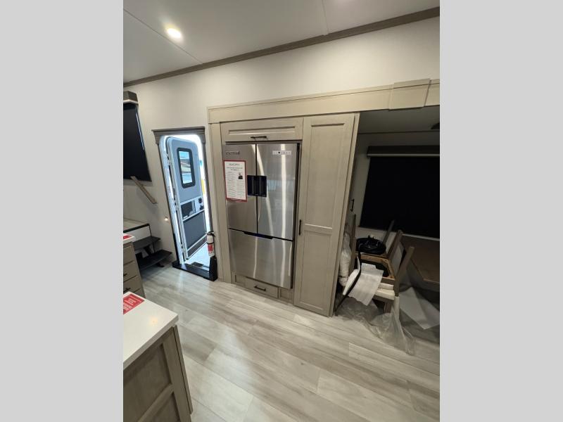 Any Grand Design Influence fifth wheel features five-sided aluminum cage construction with a walk-on roof and a fully enclosed underbelly with heated tanks and storage for all weather camping. For peace of mind, the MORryde CRE3000 Suspension system will provide safe and smooth towing, and the 101" widebody construction offers all the room you need and that is before multiple slides are fully engaged. You will appreciate the Keyed-Alike locks, slam-latch baggage doors with magnetic door catches, exterior security light, and SolidStep entry steps. On the inside, Congoleum flooring, premium roller shades for privacy, a hallway handrail for safety, and nightstands with USB ports to keep all of your electronics fully charged. You will also love the On Demand tankless water heater when showering, plus the added heat and ambiance from an electric fireplace, and so much more!
