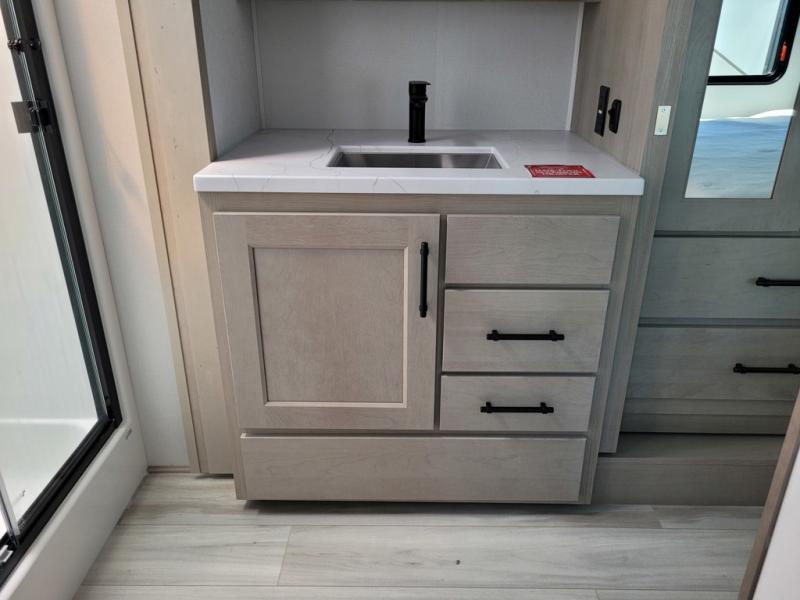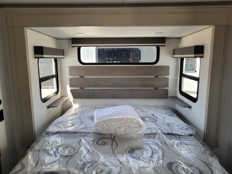 Any Grand Design Influence fifth wheel features five-sided aluminum cage construction with a walk-on roof and a fully enclosed underbelly with heated tanks and storage for all weather camping. For peace of mind, the MORryde CRE3000 Suspension system will provide safe and smooth towing, and the 101" widebody construction offers all the room you need and that is before multiple slides are fully engaged. You will appreciate the Keyed-Alike locks, slam-latch baggage doors with magnetic door catches, exterior security light, and SolidStep entry steps. On the inside, Congoleum flooring, premium roller shades for privacy, a hallway handrail for safety, and nightstands with USB ports to keep all of your electronics fully charged. You will also love the On Demand tankless water heater when showering, plus the added heat and ambiance from an electric fireplace, and so much more!