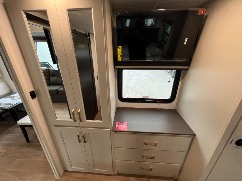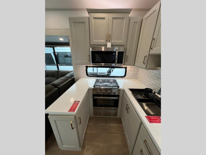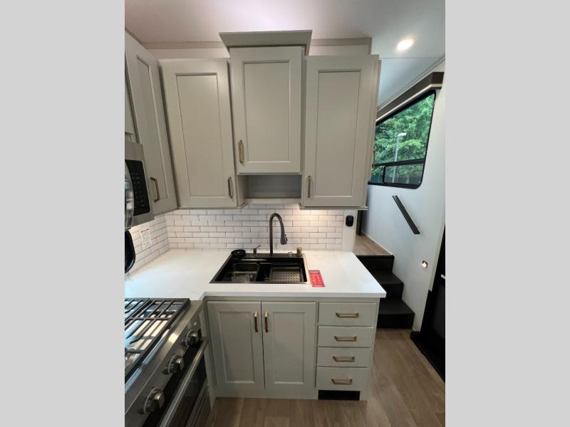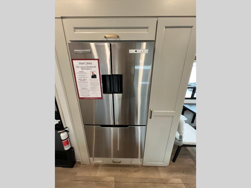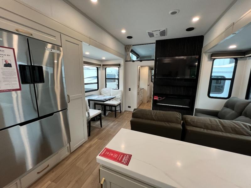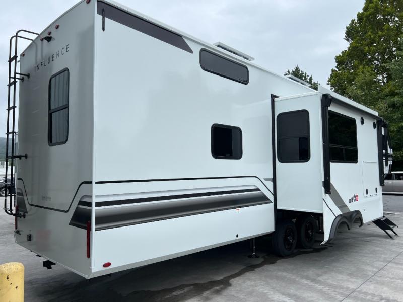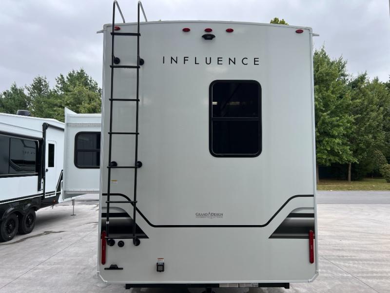 Any Grand Design Influence fifth wheel features five-sided aluminum cage construction with a walk-on roof and a fully enclosed underbelly with heated tanks and storage for all weather camping. For peace of mind, the MORryde CRE3000 Suspension system will provide safe and smooth towing, and the 101" widebody construction offers all the room you need and that is before multiple slides are fully engaged. You will appreciate the Keyed-Alike locks, slam-latch baggage doors with magnetic door catches, exterior security light, and SolidStep entry steps. On the inside, Congoleum flooring, premium roller shades for privacy, a hallway handrail for safety, and nightstands with USB ports to keep all of your electronics fully charged. You will also love the On Demand tankless water heater when showering, plus the added heat and ambiance from an electric fireplace, and so much more!