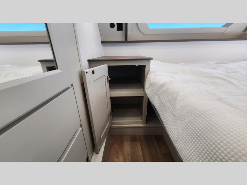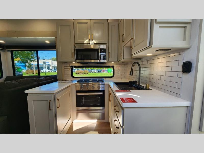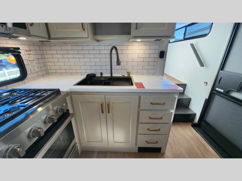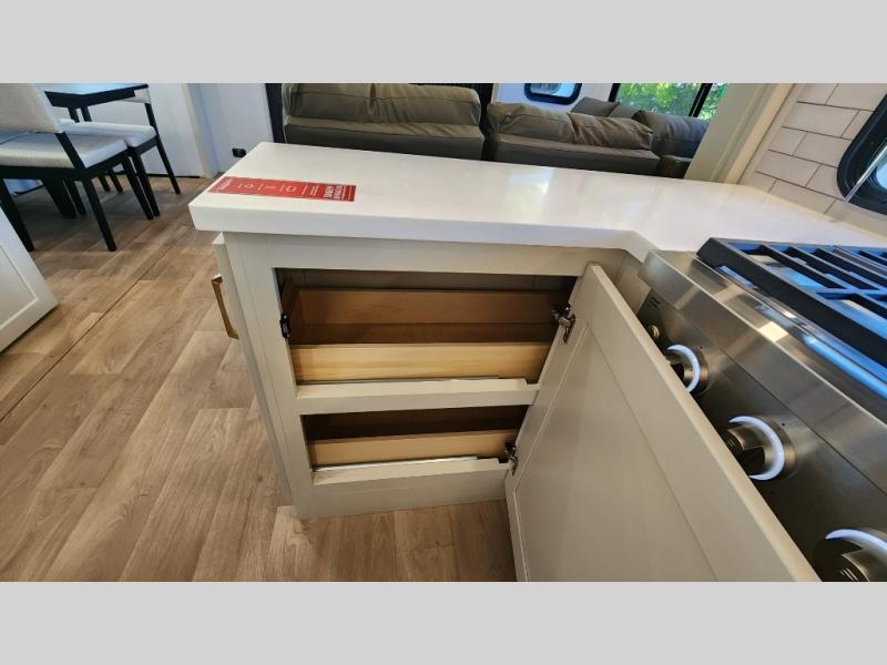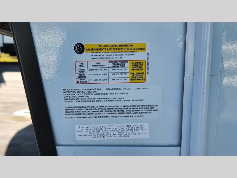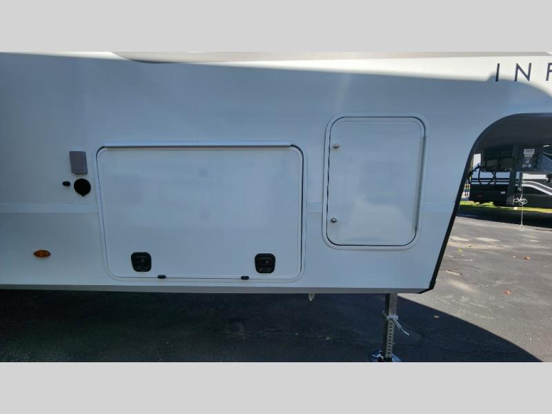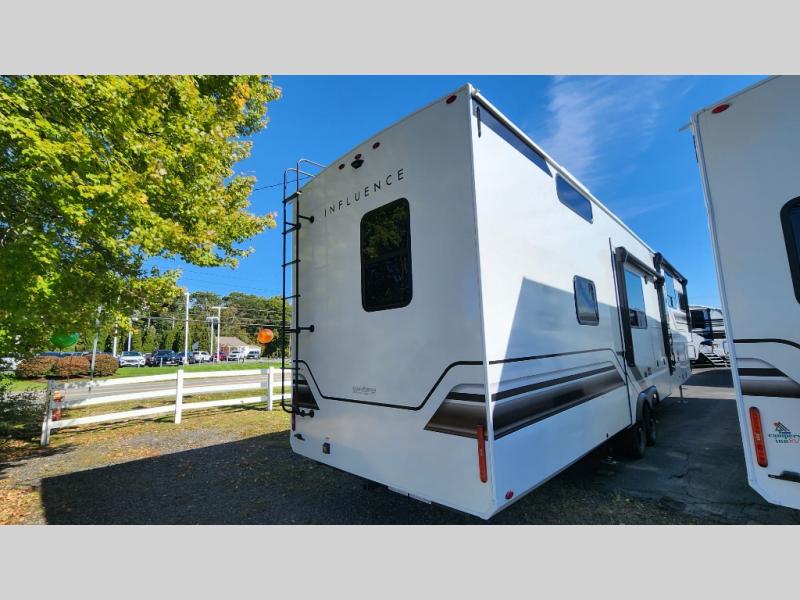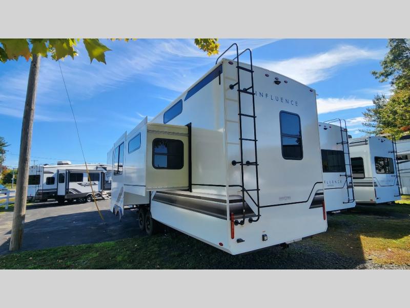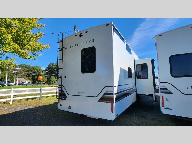 Any Grand Design Influence fifth wheel features five-sided aluminum cage construction with a walk-on roof and a fully enclosed underbelly with heated tanks and storage for all weather camping. For peace of mind, the MORryde CRE3000 Suspension system will provide safe and smooth towing, and the 101" widebody construction offers all the room you need and that is before multiple slides are fully engaged. You will appreciate the Keyed-Alike locks, slam-latch baggage doors with magnetic door catches, exterior security light, and SolidStep entry steps. On the inside, Congoleum flooring, premium roller shades for privacy, a hallway handrail for safety, and nightstands with USB ports to keep all of your electronics fully charged. You will also love the On Demand tankless water heater when showering, plus the added heat and ambiance from an electric fireplace, and so much more!