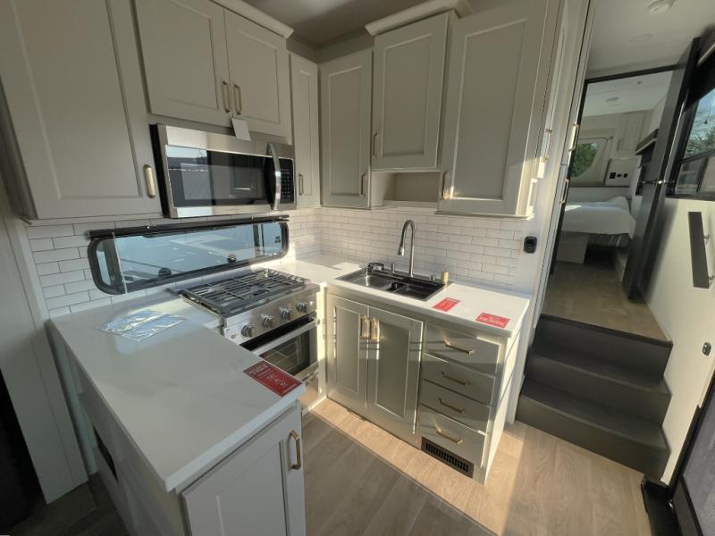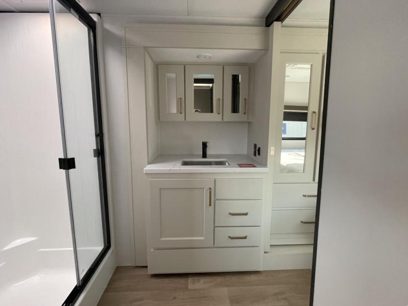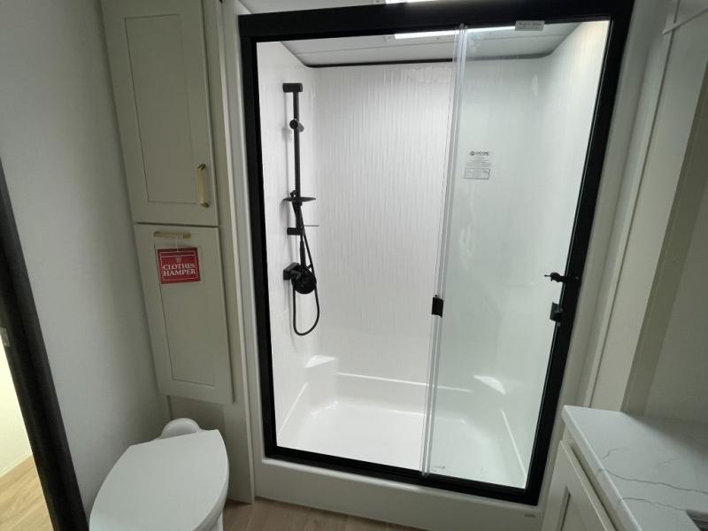 Enjoy smoother, safer travel with the MORryde CRE3000 suspension system, and appreciate the thoughtful details like Keyed-Alike locks, SolidStep entry steps, slam-latch baggage doors, and nightstands with built-in USB ports. Add in a tankless water heater for endless hot showers and premium roller shades for privacy, and you’ve got a fifth wheel that checks every box.