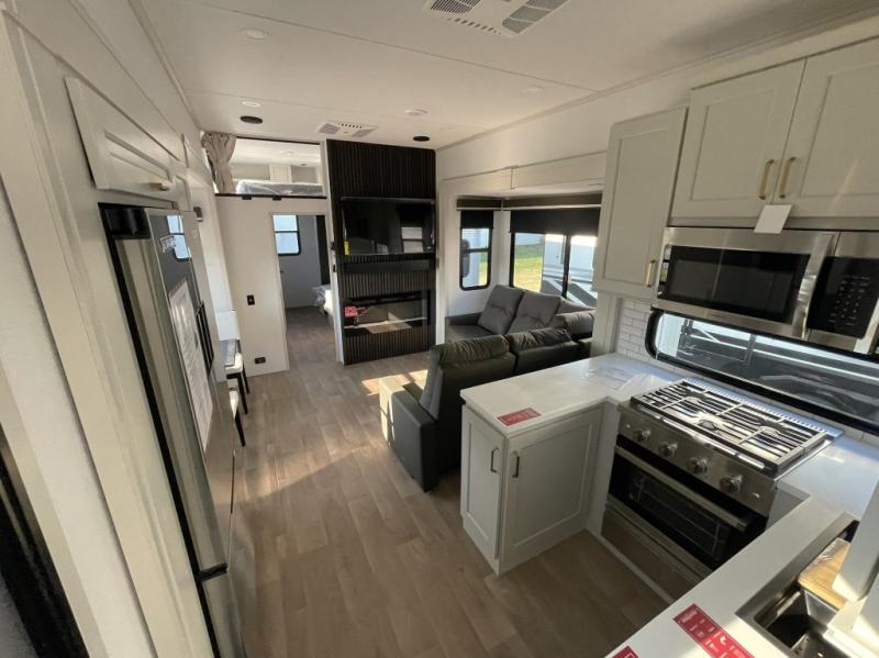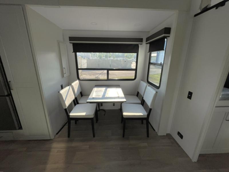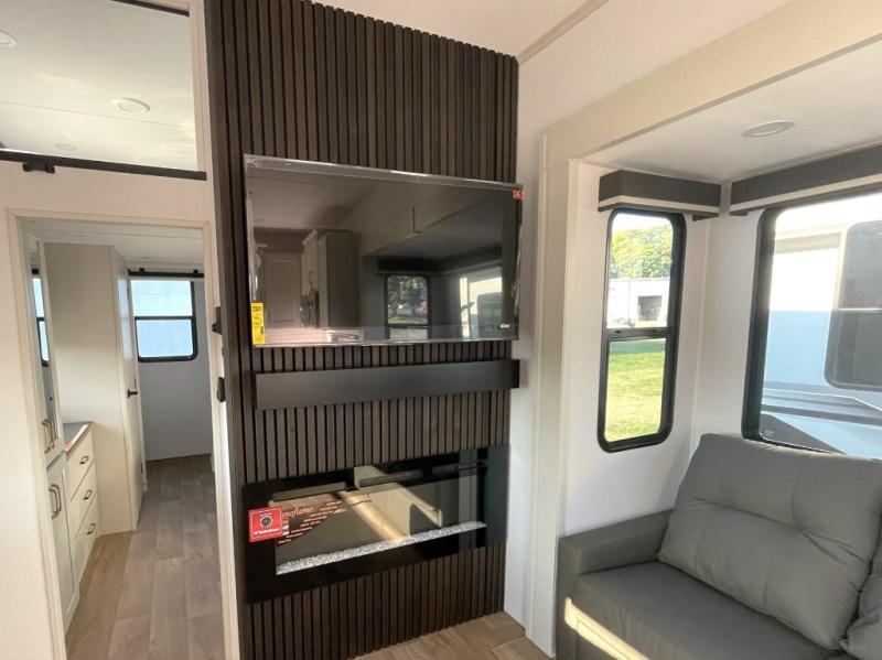 This isn't just an RV — it’s a rolling home. Enjoy the cozy electric fireplace, a free-standing dinette for formal dining or family meals, and an L-shaped reclining sofa that's perfect for movie nights. All surrounded by widebody construction and dual opposing slides for an incredibly open and inviting living space.
