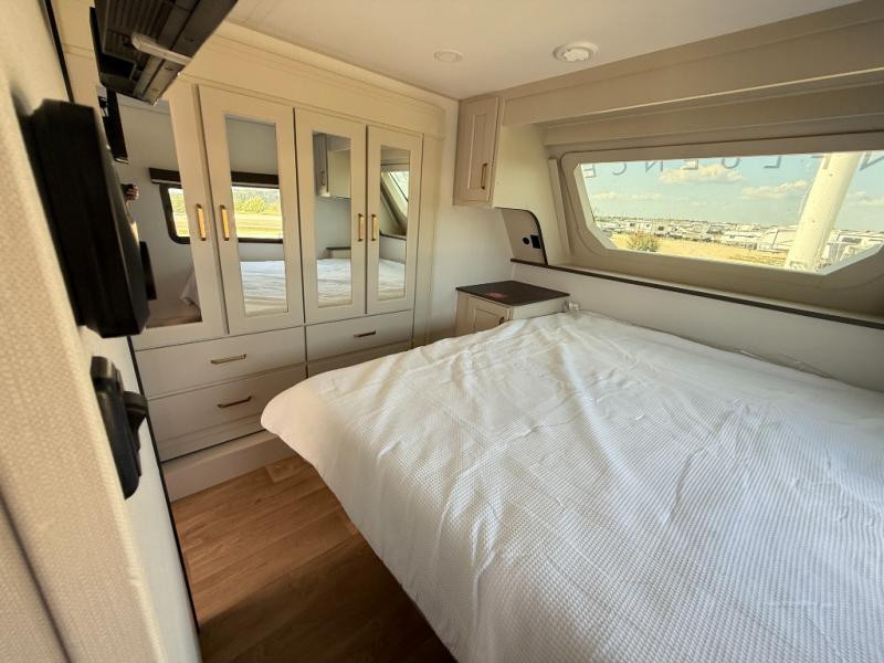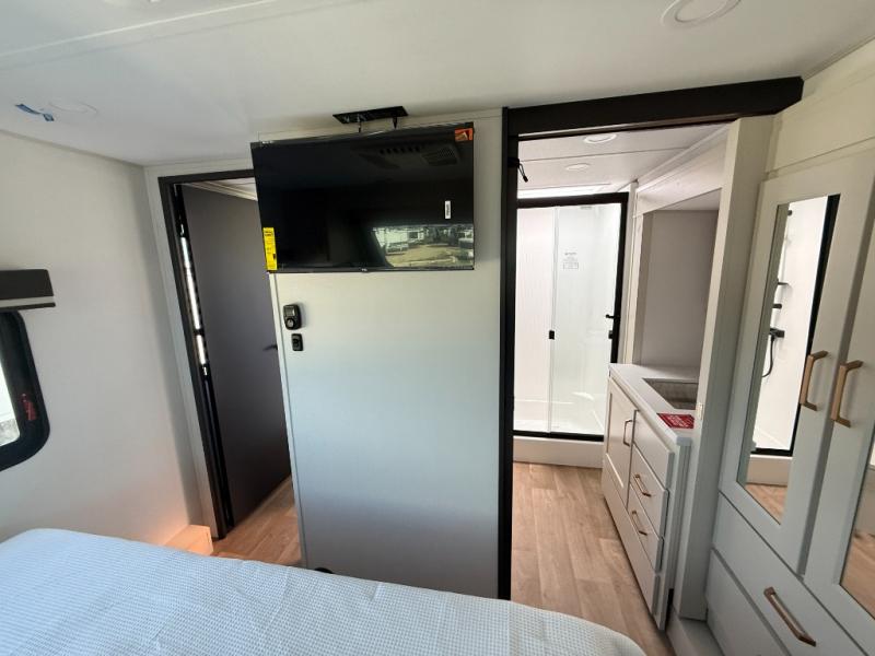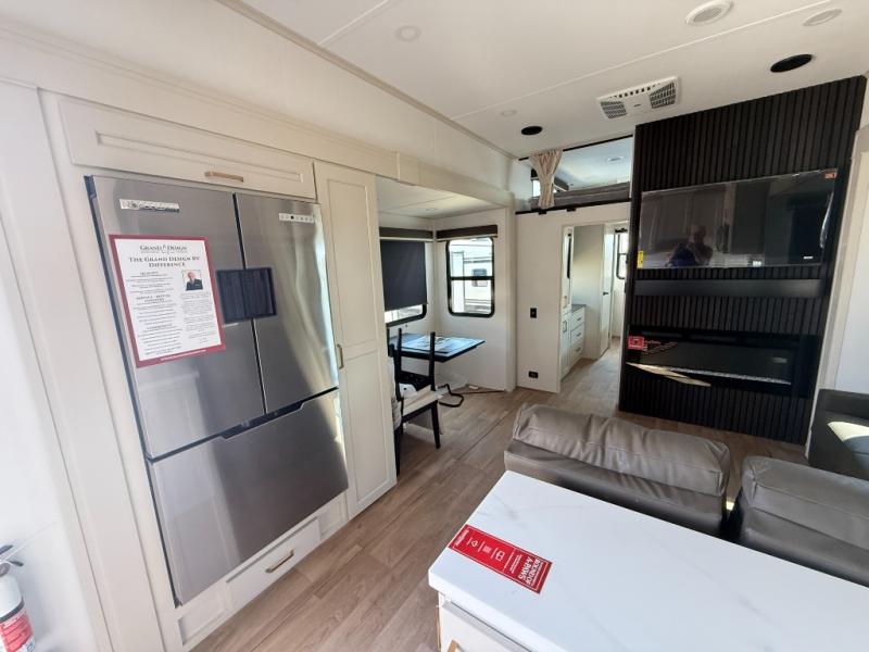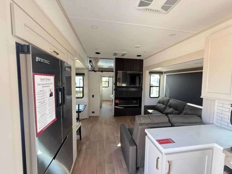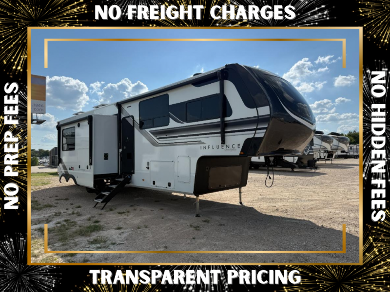 Any Grand Design Influence fifth wheel features five-sided aluminum cage construction with a walk-on roof and a fully enclosed underbelly with heated tanks and storage for all weather camping. For peace of mind, the MORryde CRE3000 Suspension system will provide safe and smooth towing, and the 101" widebody construction offers all the room you need and that is before multiple slides are fully engaged. You will appreciate the Keyed-Alike locks, slam-latch baggage doors with magnetic door catches, exterior security light, and SolidStep entry steps. On the inside, Congoleum flooring, premium roller shades for privacy, a hallway handrail for safety, and nightstands with USB ports to keep all of your electronics fully charged. You will also love the On Demand tankless water heater when showering, plus the added heat and ambiance from an electric fireplace, and so much more!