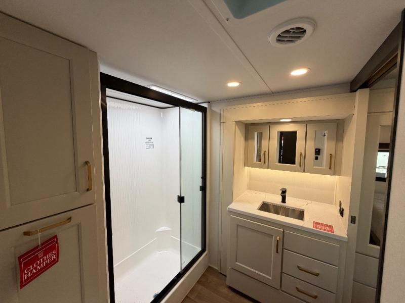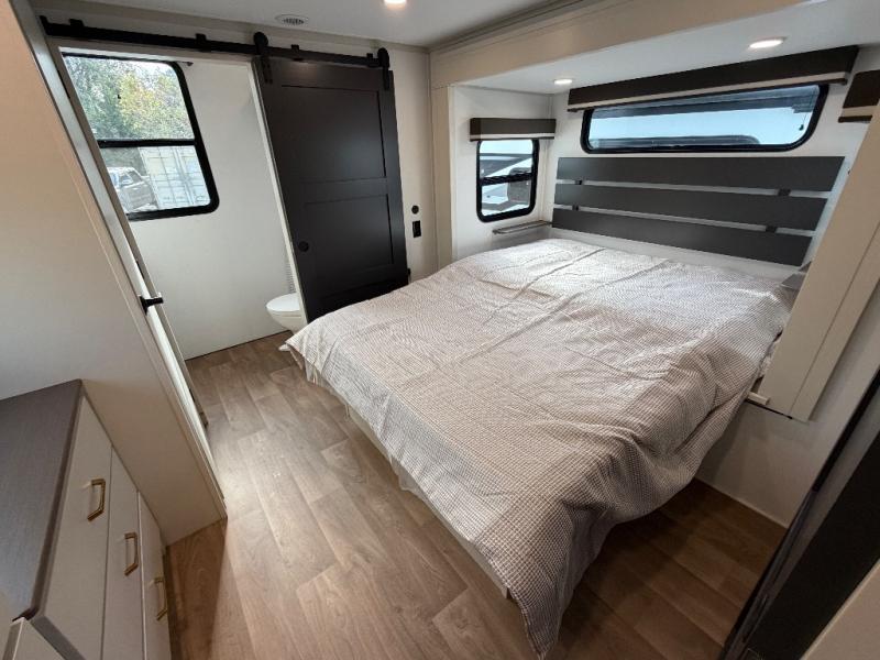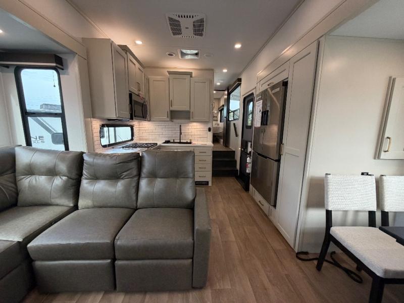 A luxury two-bedroom, two-bath fifth wheel upgraded with three A/Cs, a king bed, Solar+ Package, and MORryde 8K Independent Suspension 2.0 with disc brakes. Perfect for families, full-timers, or anyone who wants residential comfort and superior towing performance.