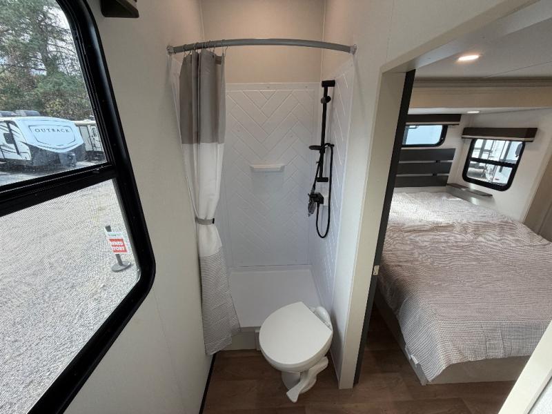 The Influence 3804DS is ideal for families or full-time RVers who want residential comfort, spacious dual suites, and top-tier towing upgrades. With three A/Cs, a king bed, Solar+, and MORryde Independent Suspension, this unit delivers unmatched comfort and performance.