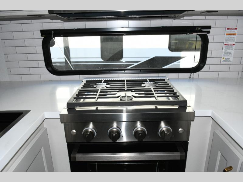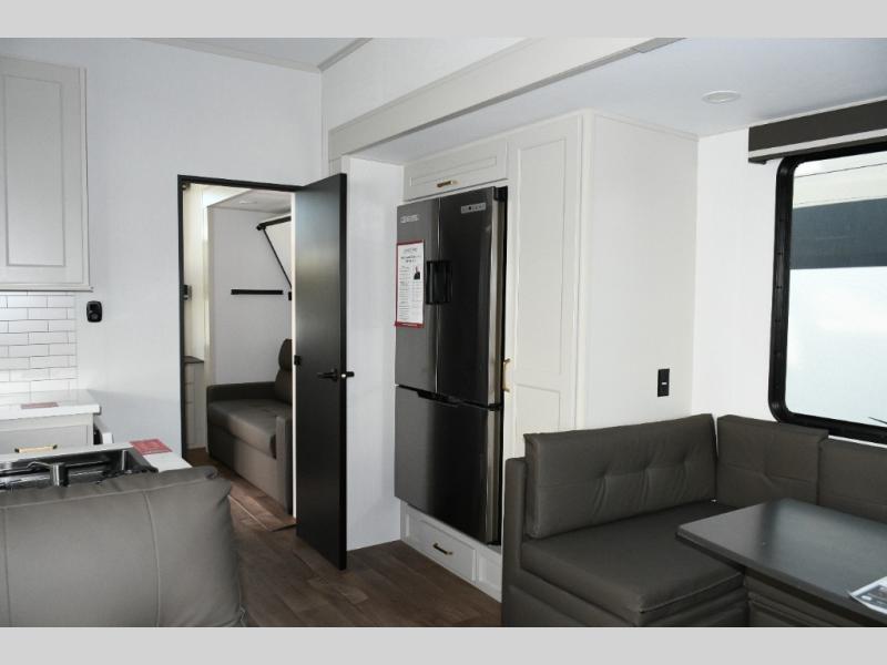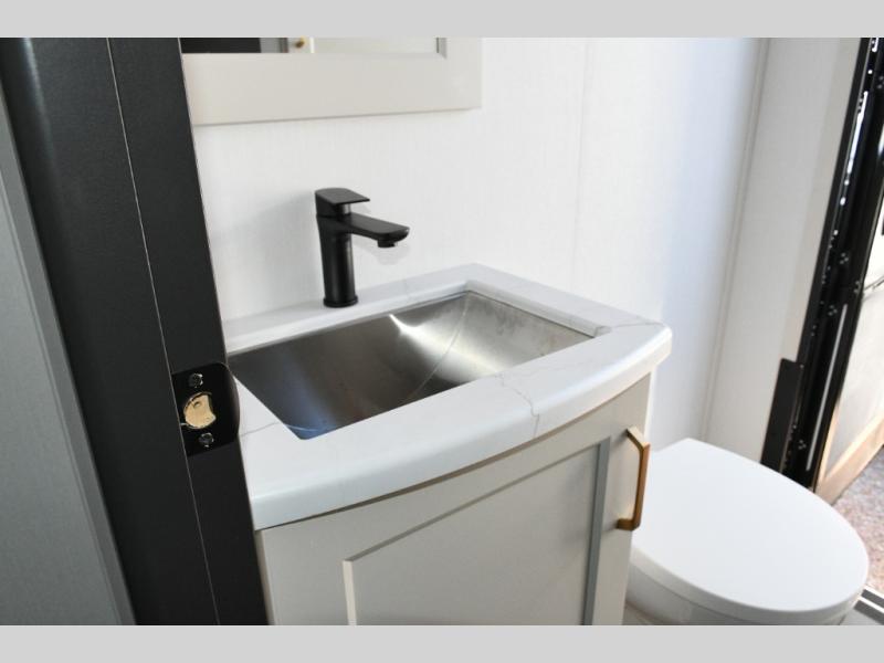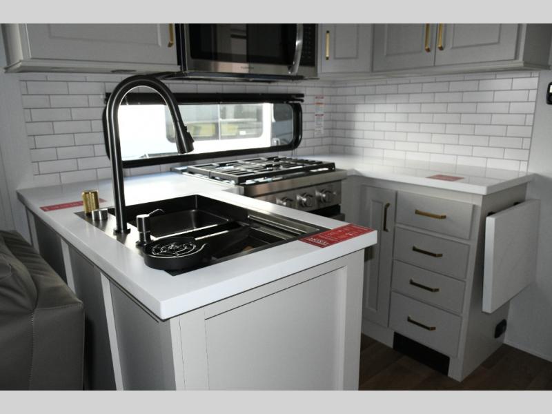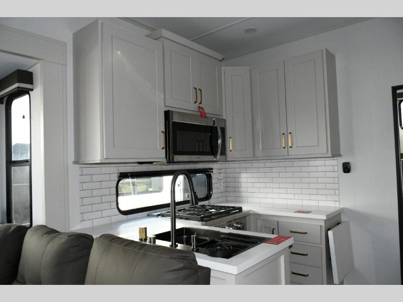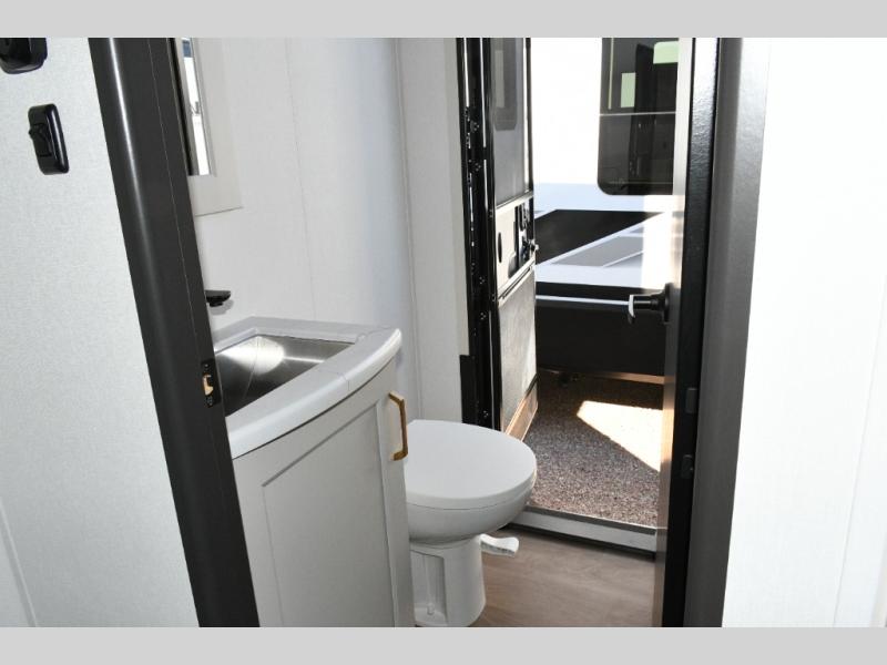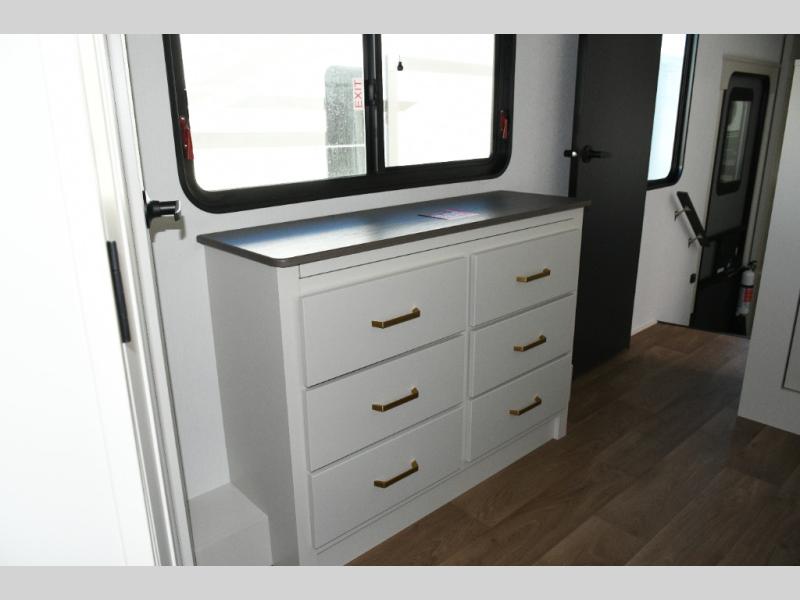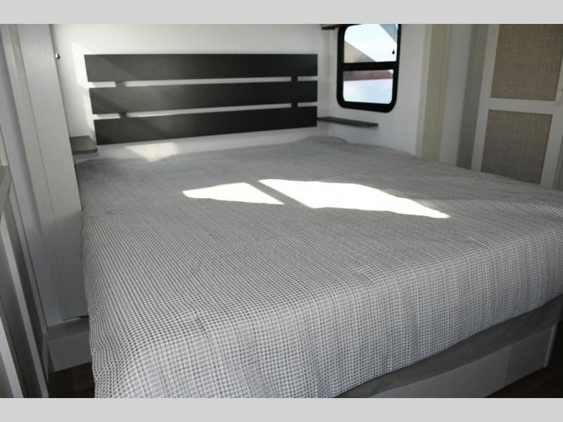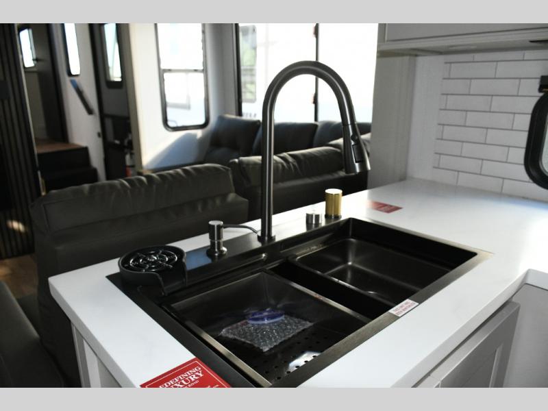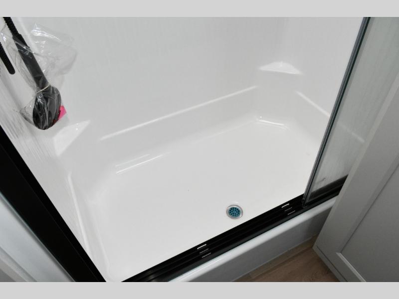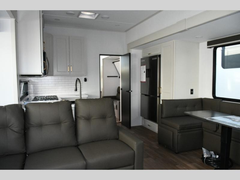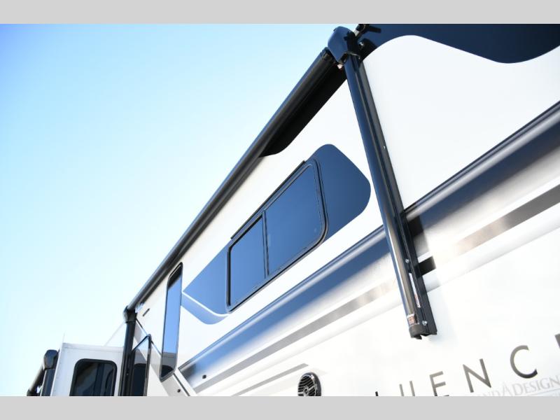 Every Grand Design Influence is constructed with five-sided aluminum cage framing, a walkable roof, and a fully enclosed underbelly with heated tanks and storage for four-season camping. MORryde CRE3000 suspension ensures smooth towing, while the 101" widebody design adds extra living space without compromising maneuverability.