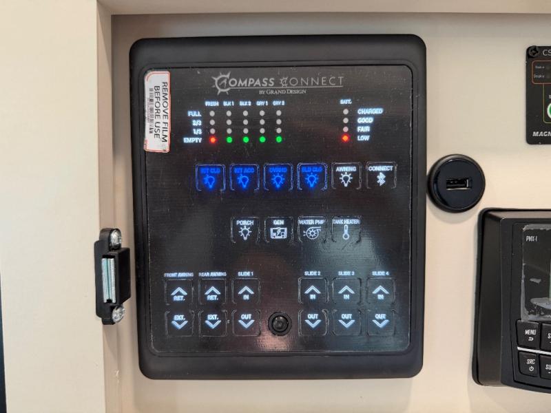 Any Grand Design Influence fifth wheel features five-sided aluminum cage construction with a walk-on roof and a fully enclosed underbelly with heated tanks and storage for all weather camping. For peace of mind, the MORryde CRE3000 Suspension system will provide safe and smooth towing, and the 101" widebody construction offers all the room you need and that is before multiple slides are fully engaged. You will appreciate the Keyed-Alike locks, slam-latch baggage doors with magnetic door catches, exterior security light, and SolidStep entry steps. On the inside, Congoleum flooring, premium roller shades for privacy, a hallway handrail for safety, and nightstands with USB ports to keep all of your electronics fully charged. You will also love the on demand tankless water heater when showering, plus the added heat and ambiance from an electric fireplace, and so much more!