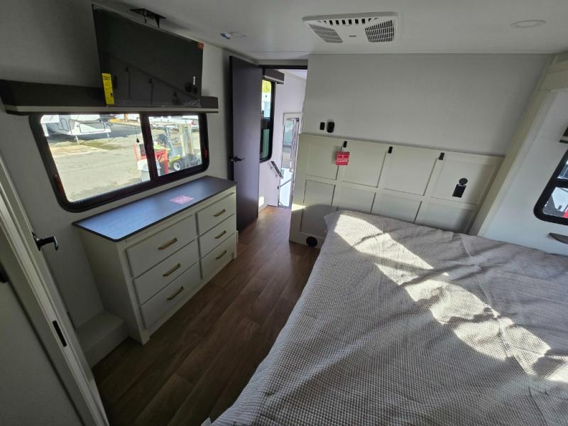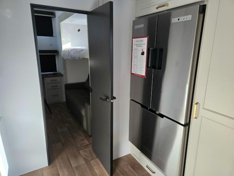 Any Grand Design Influence fifth wheel features five-sided aluminum cage construction with a walk-on roof and a fully enclosed underbelly with heated tanks and storage for all weather camping. For peace of mind, the MORryde CRE3000 Suspension system will provide safe and smooth towing, and the 101" widebody construction offers all the room you need and that is before multiple slides are fully engaged. You will appreciate the Keyed-Alike locks, slam-latch baggage doors with magnetic door catches, exterior security light, and SolidStep entry steps. On the inside, Congoleum flooring, premium roller shades for privacy, a hallway handrail for safety, and nightstands with USB ports to keep all of your electronics fully charged. You will also love the on demand tankless water heater when showering, plus the added heat and ambiance from an electric fireplace, and so much more!