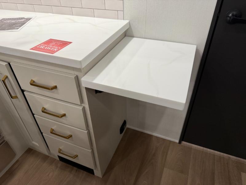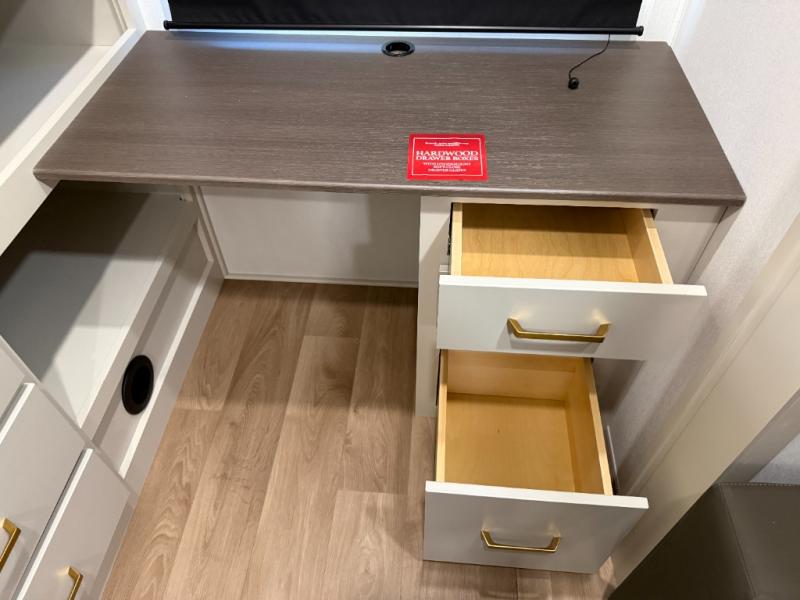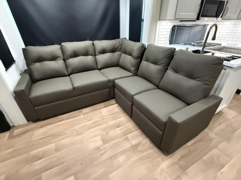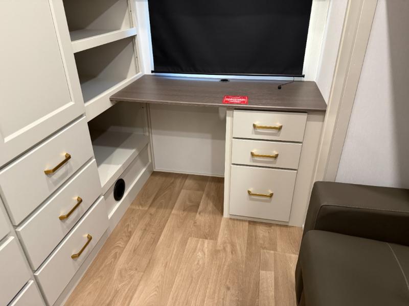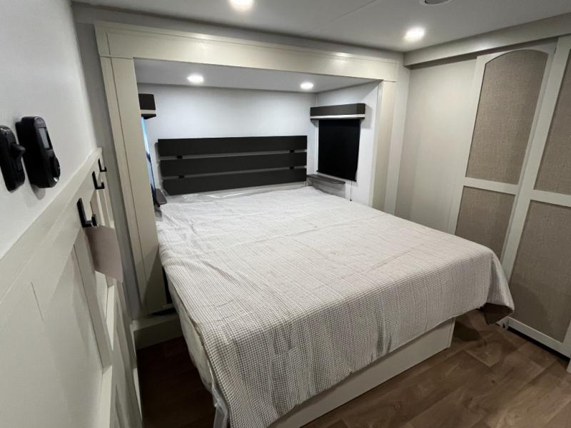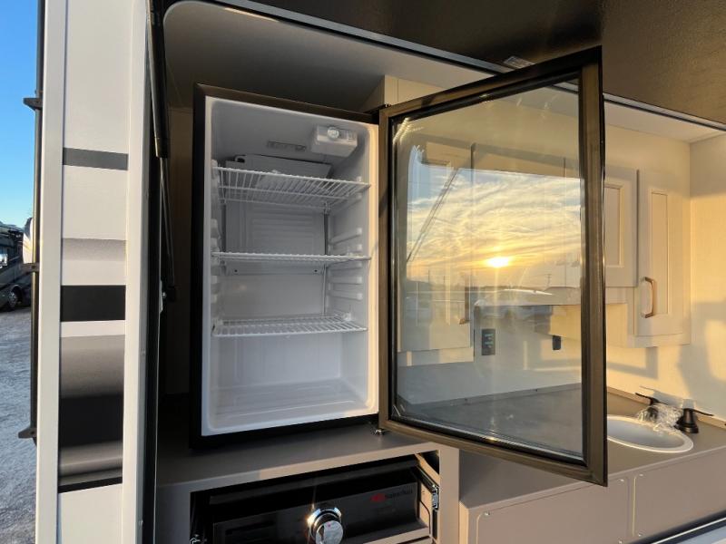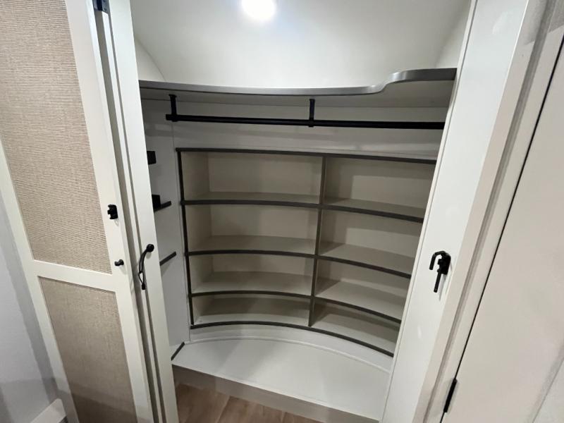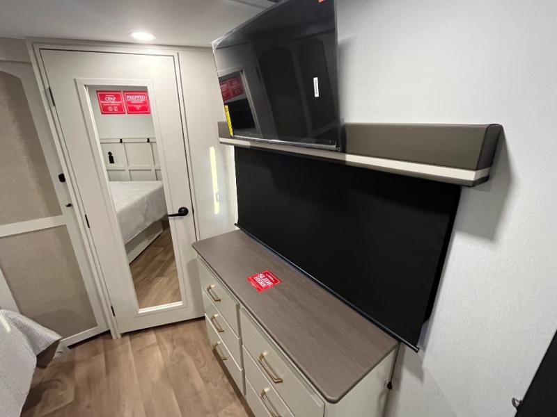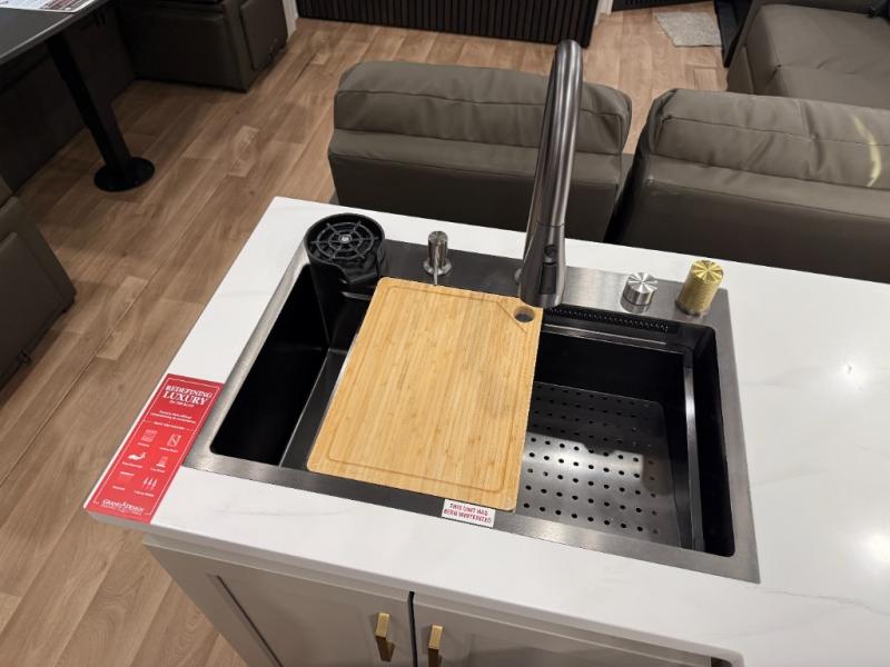 Any Grand Design Influence fifth wheel features five-sided aluminum cage construction with a walk-on roof and a fully enclosed underbelly with heated tanks and storage for all weather camping. For peace of mind, the MORryde CRE3000 Suspension system will provide safe and smooth towing, and the 101" widebody construction offers all the room you need and that is before multiple slides are fully engaged. You will appreciate the Keyed-Alike locks, slam-latch baggage doors with magnetic door catches, exterior security light, and SolidStep entry steps. On the inside, Congoleum flooring, premium roller shades for privacy, a hallway handrail for safety, and nightstands with USB ports to keep all of your electronics fully charged. You will also love the on demand tankless water heater when showering, plus the added heat and ambiance from an electric fireplace, and so much more!
