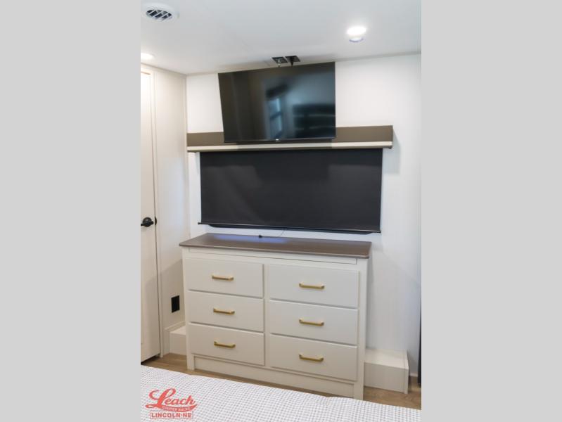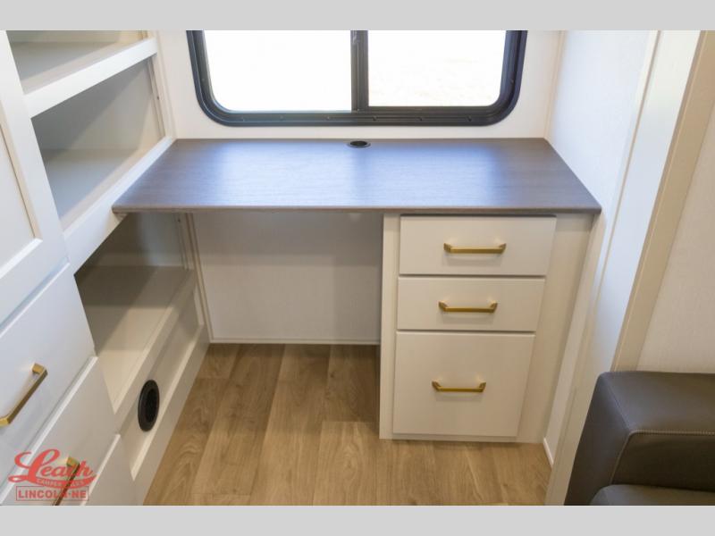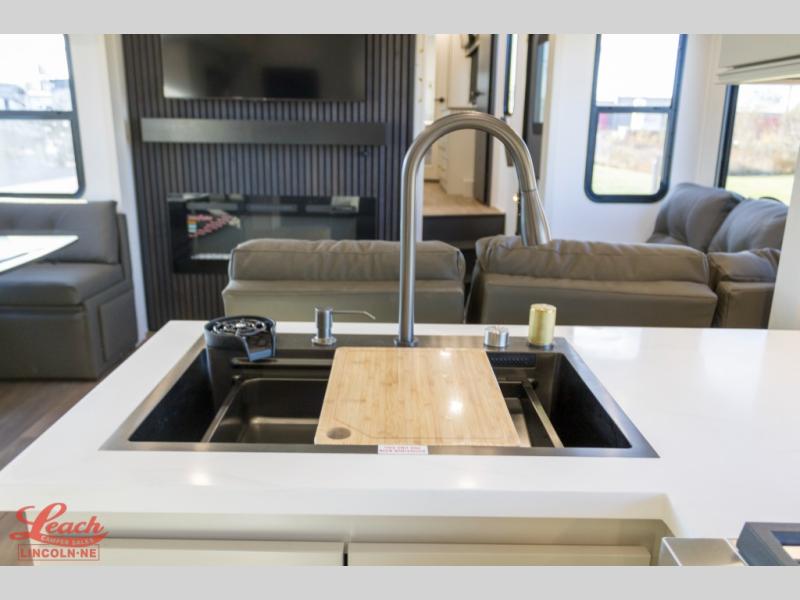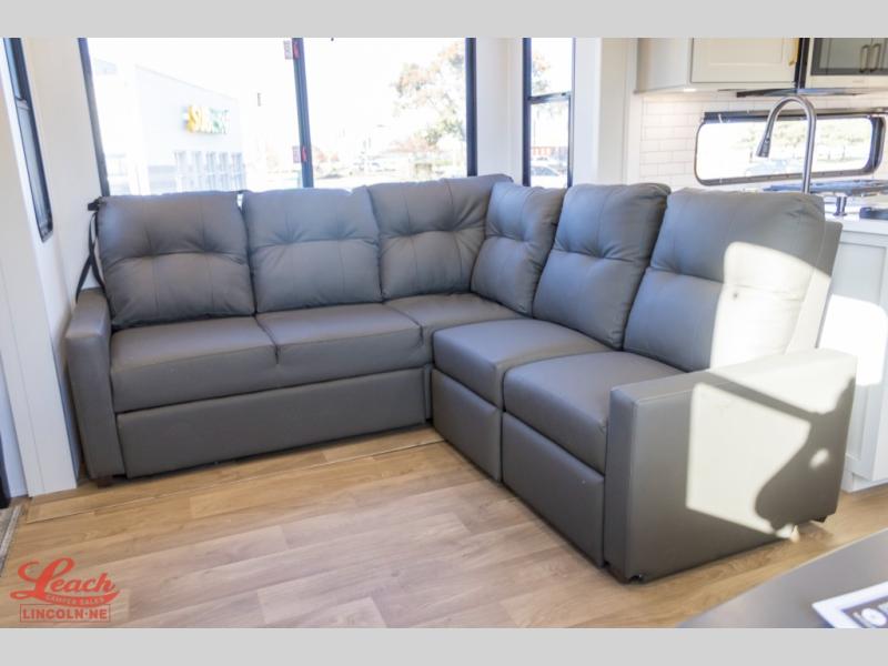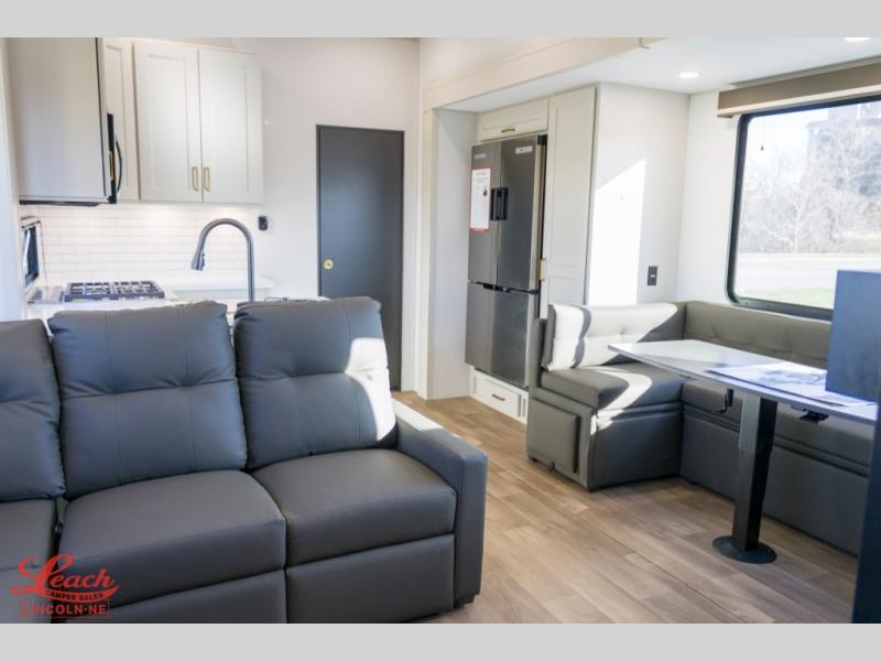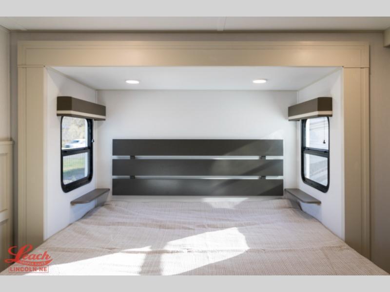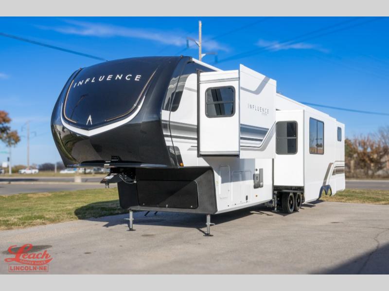 Any Grand Design Influence fifth wheel features five-sided aluminum cage construction with a walk-on roof and a fully enclosed underbelly with heated tanks and storage for all weather camping. For peace of mind, the MORryde CRE3000 Suspension system will provide safe and smooth towing, and the 101" widebody construction offers all the room you need and that is before multiple slides are fully engaged. You will appreciate the Keyed-Alike locks, slam-latch baggage doors with magnetic door catches, exterior security light, and SolidStep entry steps. On the inside, Congoleum flooring, premium roller shades for privacy, a hallway handrail for safety, and nightstands with USB ports to keep all of your electronics fully charged. You will also love the on demand tankless water heater when showering, plus the added heat and ambiance from an electric fireplace, and so much more!