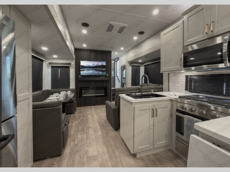 Any Grand Design Influence fifth wheel features five-sided aluminum cage construction with a walk-on roof and a fully enclosed underbelly with heated tanks and storage for all weather camping. For peace of mind, the MORryde CRE3000 Suspension system will provide safe and smooth towing, and the 101" widebody construction offers all the room you need and that is before multiple slides are fully engaged. You will appreciate the Keyed-Alike locks, slam-latch baggage doors with magnetic door catches, exterior security light, and SolidStep entry steps. On the inside, Congoleum flooring, premium roller shades for privacy, a hallway handrail for safety, and nightstands with USB ports to keep all of your electronics fully charged. You will also love the on demand tankless water heater when showering, plus the added heat and ambiance from an electric fireplace, and so much more!
