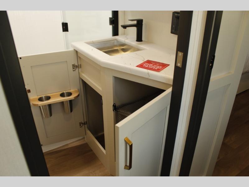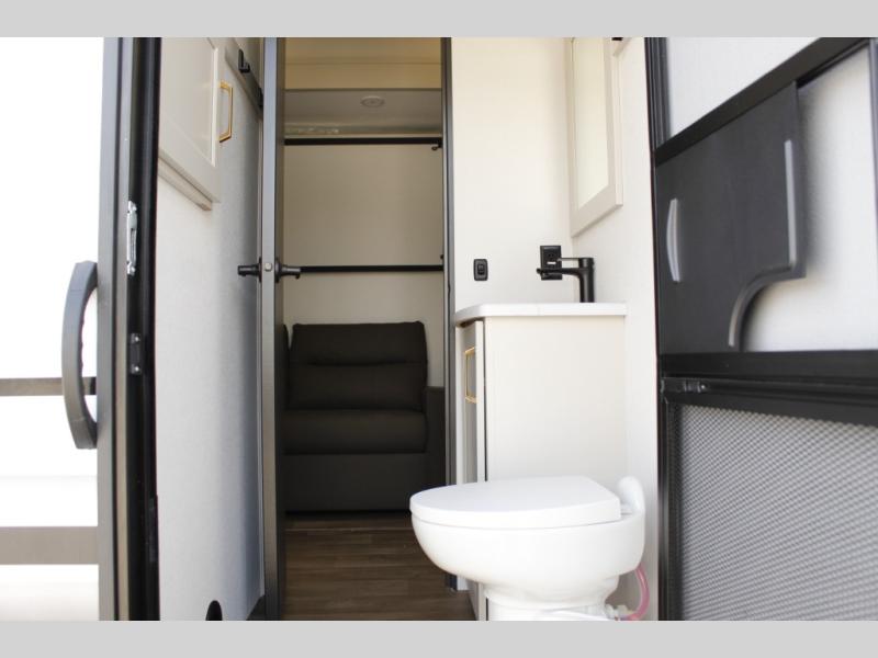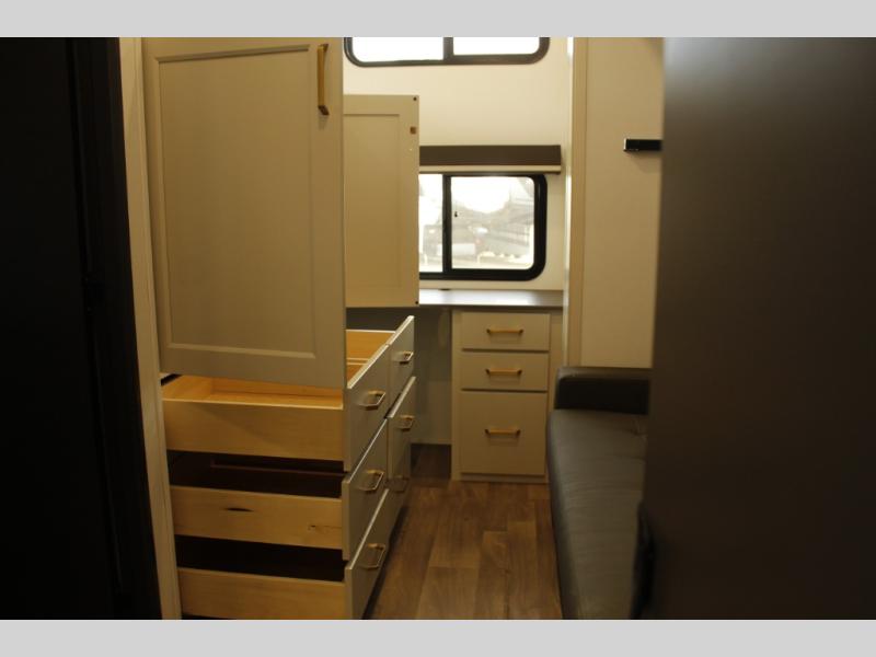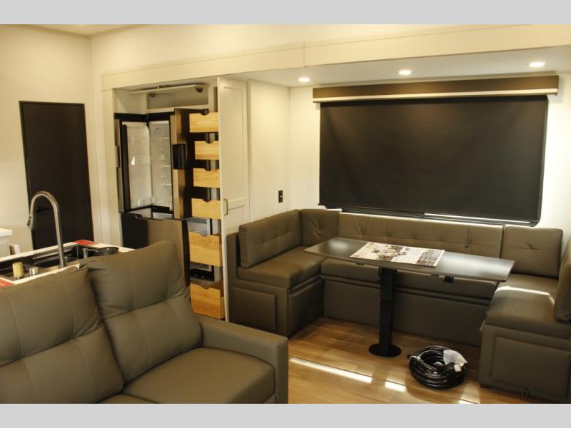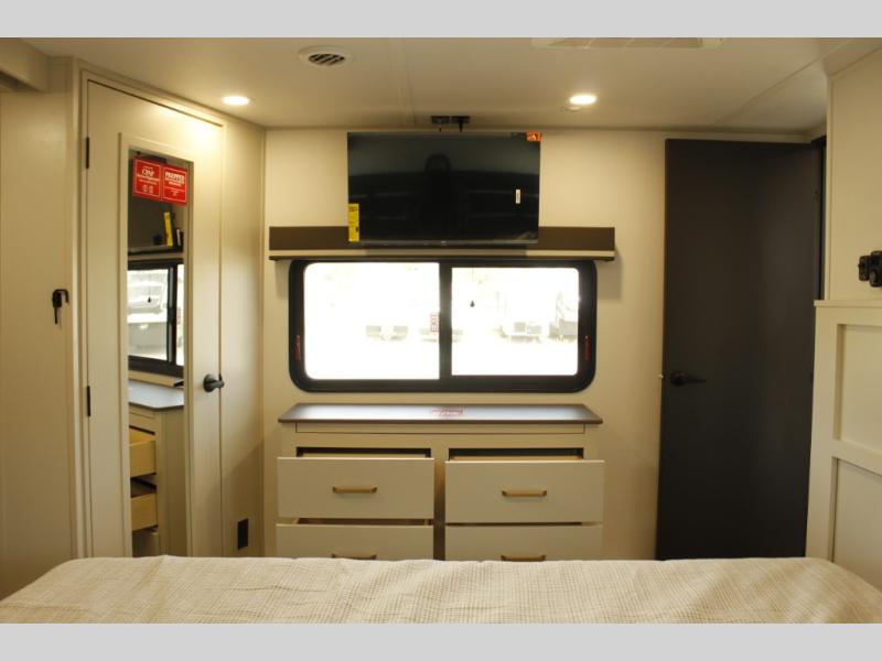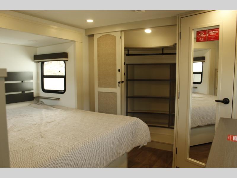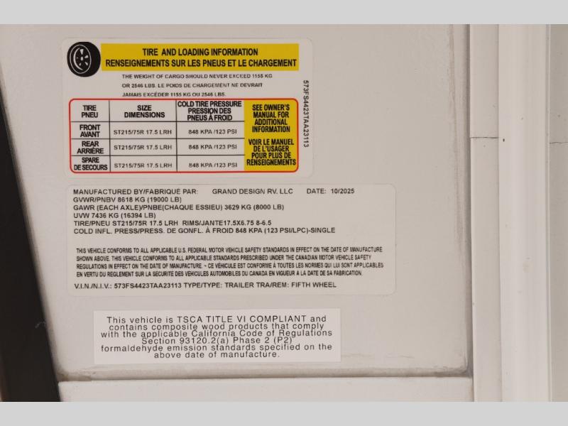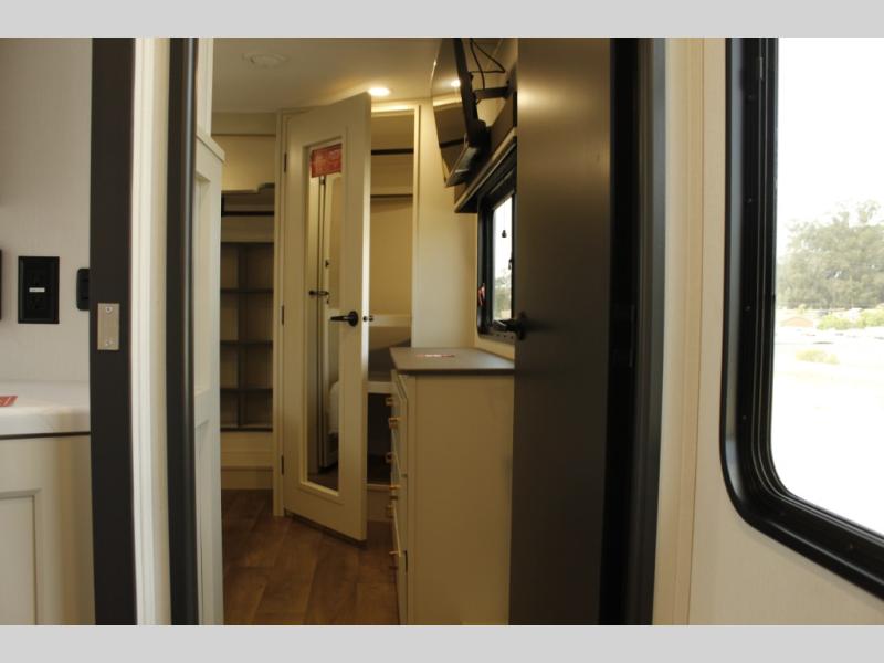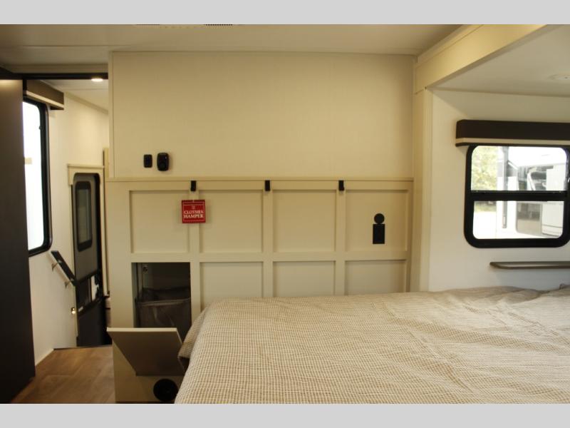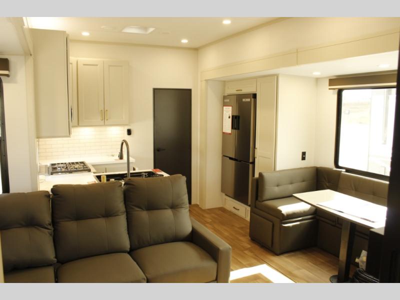 Any Grand Design Influence fifth wheel features five-sided aluminum cage construction with a walk-on roof and a fully enclosed underbelly with heated tanks and storage for all weather camping. For peace of mind, the MORryde CRE3000 Suspension system will provide safe and smooth towing, and the 101" widebody construction offers all the room you need and that is before multiple slides are fully engaged. You will appreciate the Keyed-Alike locks, slam-latch baggage doors with magnetic door catches, exterior security light, and SolidStep entry steps. On the inside, Congoleum flooring, premium roller shades for privacy, a hallway handrail for safety, and nightstands with USB ports to keep all of your electronics fully charged. You will also love the on demand tankless water heater when showering, plus the added heat and ambiance from an electric fireplace, and so much more!