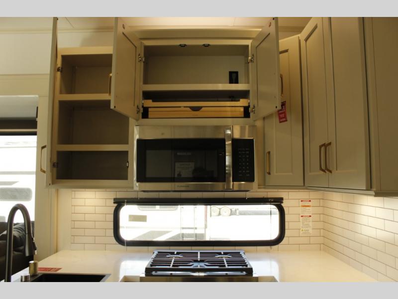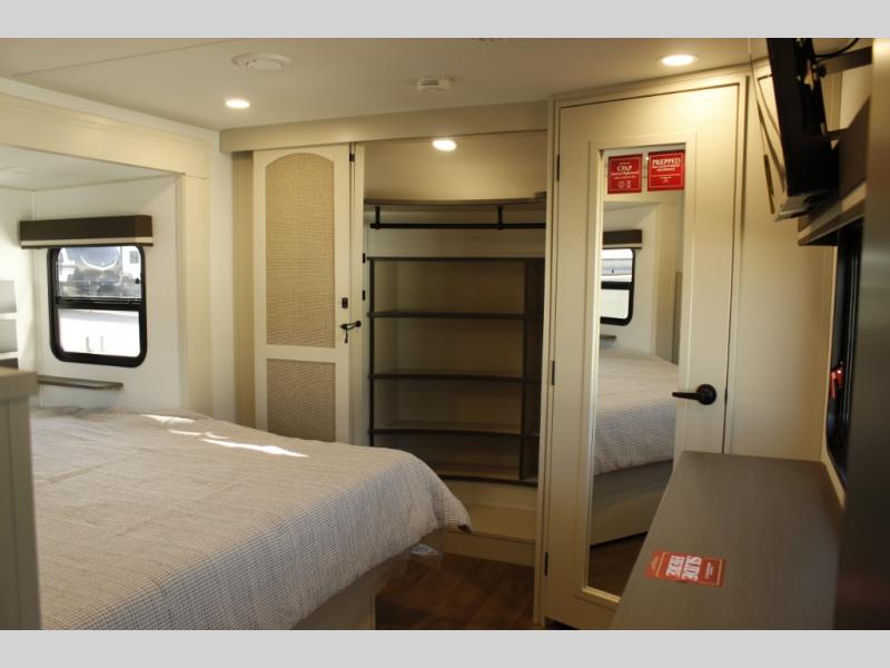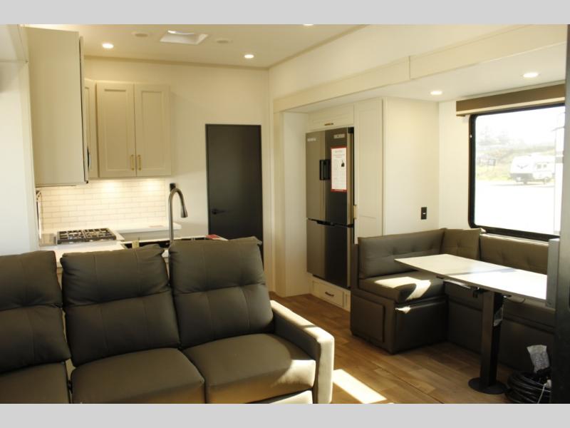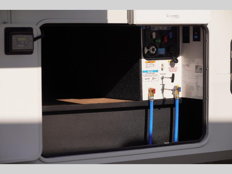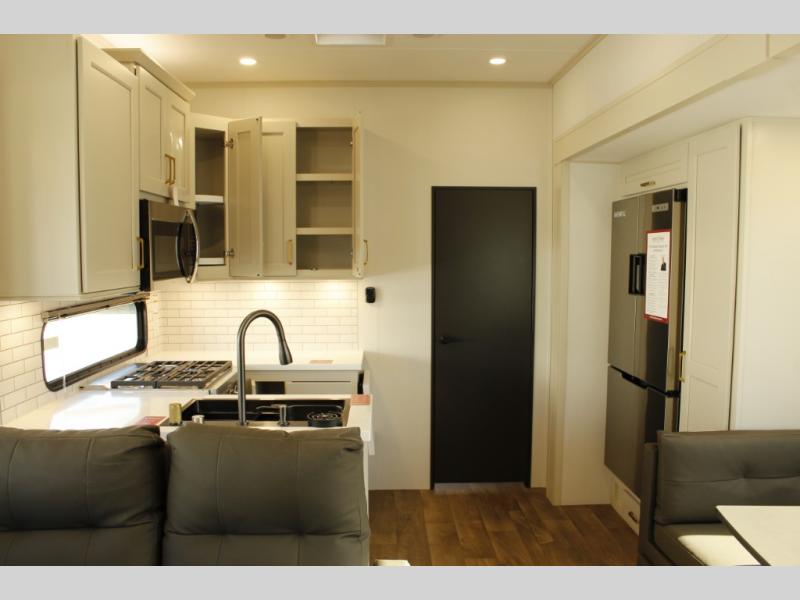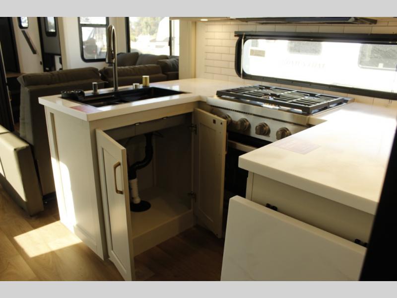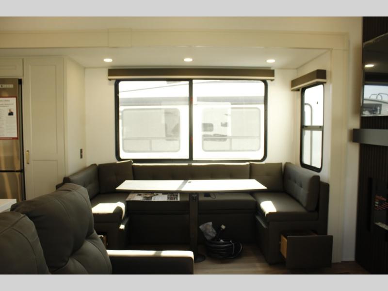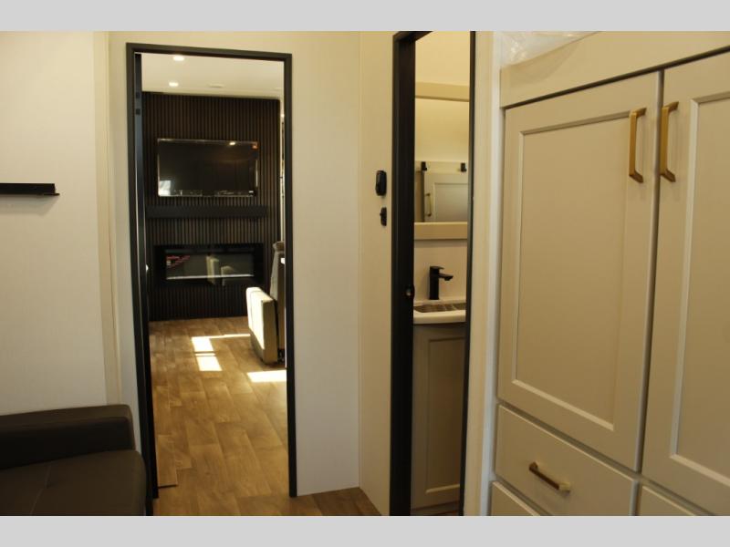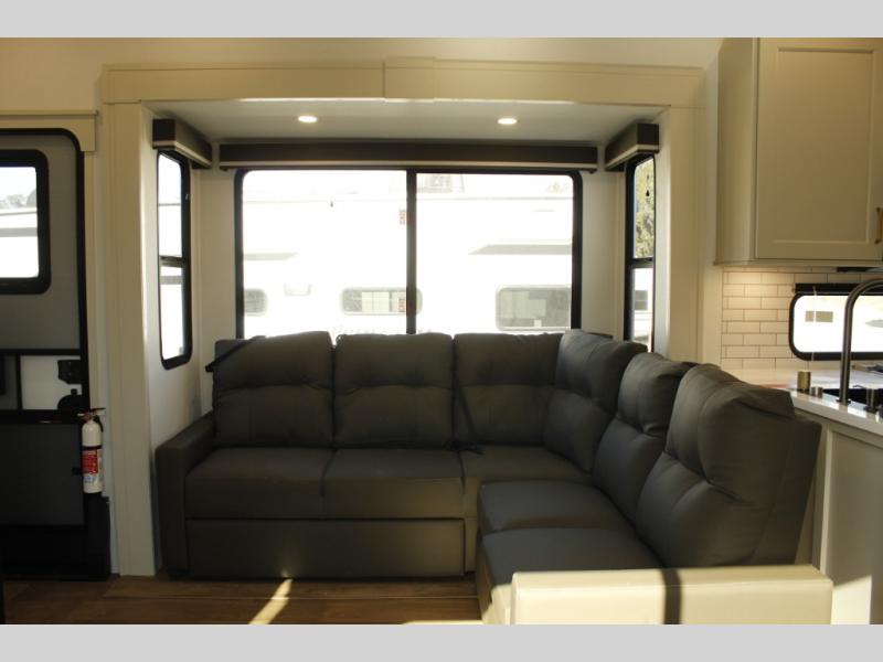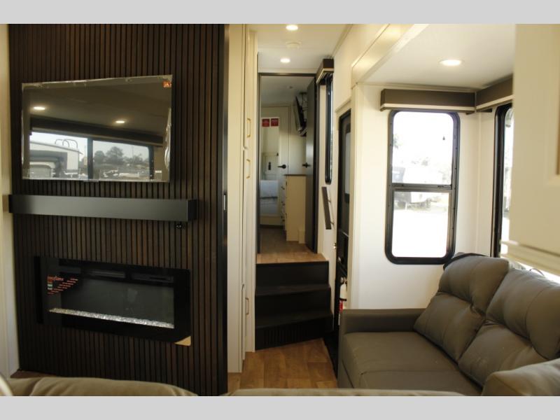 Any Grand Design Influence fifth wheel features five-sided aluminum cage construction with a walk-on roof and a fully enclosed underbelly with heated tanks and storage for all weather camping. For peace of mind, the MORryde CRE3000 Suspension system will provide safe and smooth towing, and the 101" widebody construction offers all the room you need and that is before multiple slides are fully engaged. You will appreciate the Keyed-Alike locks, slam-latch baggage doors with magnetic door catches, exterior security light, and SolidStep entry steps. On the inside, Congoleum flooring, premium roller shades for privacy, a hallway handrail for safety, and nightstands with USB ports to keep all of your electronics fully charged. You will also love the on demand tankless water heater when showering, plus the added heat and ambiance from an electric fireplace, and so much more!
