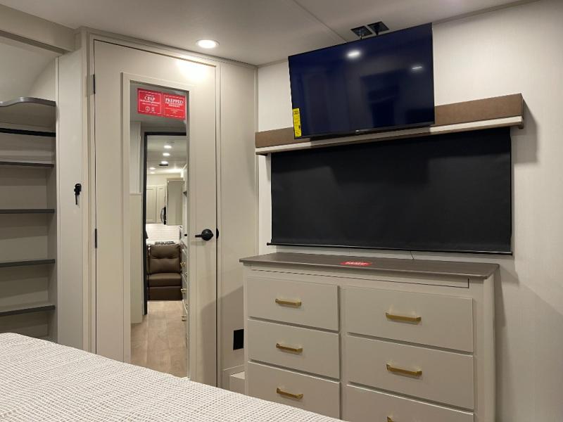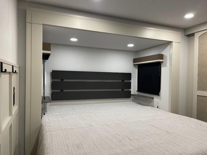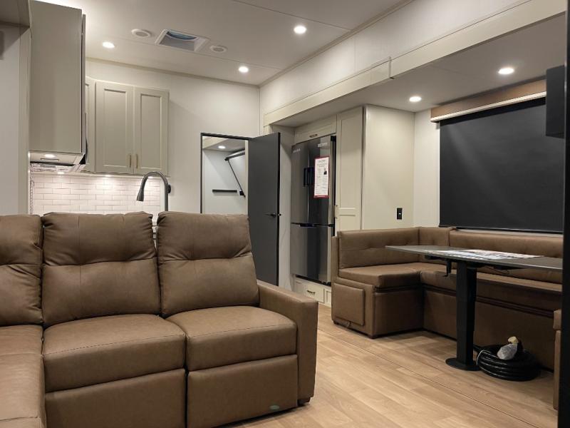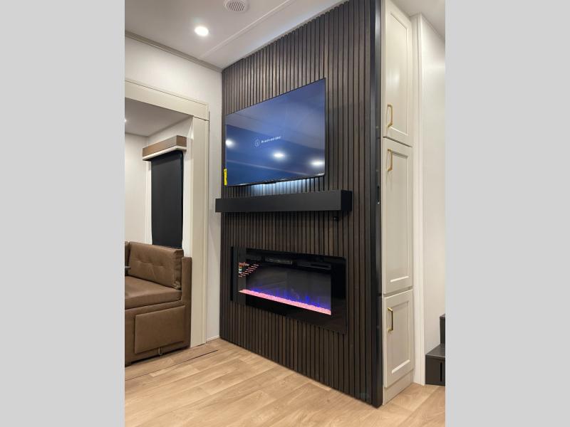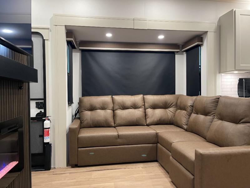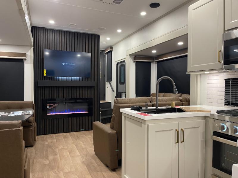 Any Grand Design Influence fifth wheel features five-sided aluminum cage construction with a walk-on roof and a fully enclosed underbelly with heated tanks and storage for all weather camping. For peace of mind, the MORryde CRE3000 Suspension system will provide safe and smooth towing, and the 101" widebody construction offers all the room you need and that is before multiple slides are fully engaged. You will appreciate the Keyed-Alike locks, slam-latch baggage doors with magnetic door catches, exterior security light, and SolidStep entry steps. On the inside, Congoleum flooring, premium roller shades for privacy, a hallway handrail for safety, and nightstands with USB ports to keep all of your electronics fully charged. You will also love the on demand tankless water heater when showering, plus the added heat and ambiance from an electric fireplace, and so much more!